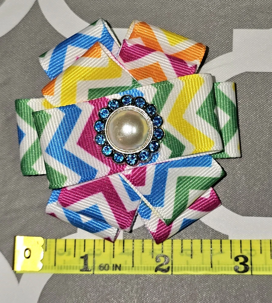 2.5" Gilr's Chevron Rainbow Ribbon Flower Hair Piece Girl's Hair Clip MultiColor