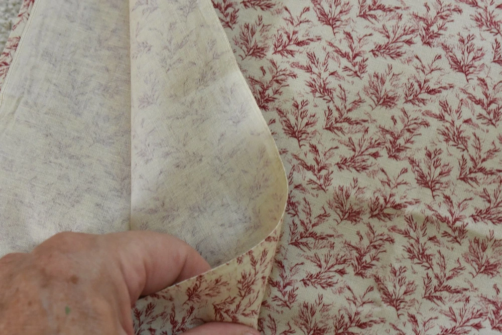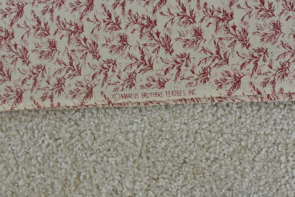 Suitable For: Apparel, Quilting Intended Use: Quilting, Apparel Modified Item: No Material: 100% Cotton Fiber Content: Cotton Non-Domestic Product: No Color: Dark-Red on Tan Custom Bundle: No Brand: Marcus Pattern: Evergreen Branches Length/Amount: Less than 1 yd Features: Antique/Vintage