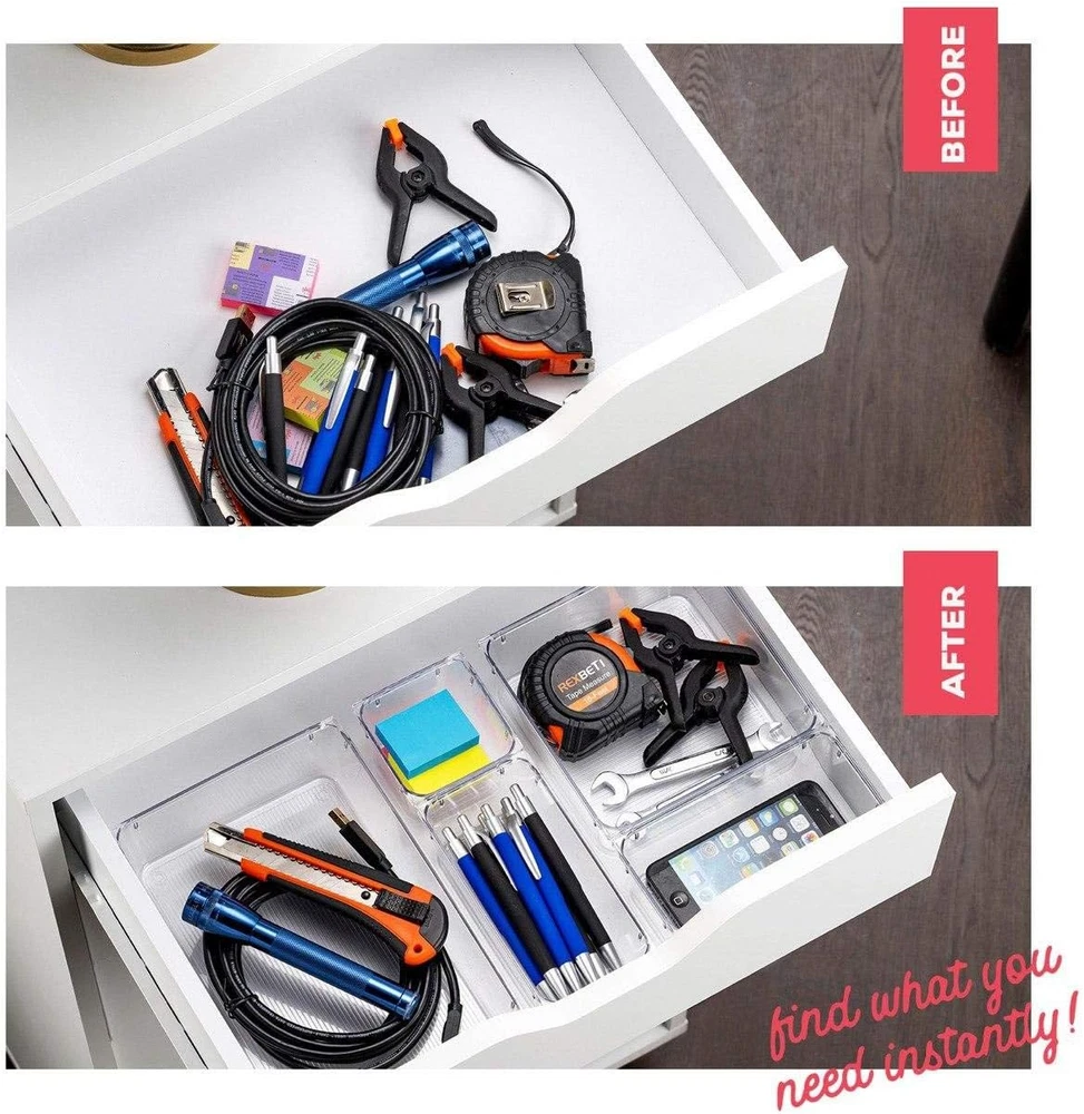 Store New Arrivals Add to Favorite View Feedback Contact Fast deliveries to the customer's home Quality customer service John Make the customers happy! 25 PCS Clear Plastic Drawer Organizers Set, 4-Size Versatile Bathroom and Vanity Drawer Organizer Trays, Storage Bins for Makeup, Bedroom, Kitchen Gadgets Utensils and Office Accessories Description Keep your Desks Drawers Dressers or Vanity neatly organized with these Multipurpose Clear Plastic organizer storage Trays. Practical design to help maximize your space. Use them side by side to keep items organized and easy to find. Ideal for kitchen drawers, vanity drawers, desk drawers, dresser drawers, pantry drawers. Great for closets, bedrooms, bathrooms, laundry rooms, craft rooms, mudrooms, offices, play rooms, garages, or any room of your home / apartment / condo / dorm room / RV or camper Great for storing organizing cosmetics, makeup tools, hair accessories, jewelry, office supplies, craft supplies, utensils, etc. Made of durable high quality BPA Free shatter-resistant plastic. Keep your Desks, Drawers, Dressers or Vanity neatly organized with these Multipurpose Clear Plastic organizer storage Trays. Practical design to help maximize your space. Use them side by side to keep items organized and easy to find. Ideal for kitchen drawers, vanity drawers, desk drawers, dresser drawers, pantry drawers. Great for closets, bedrooms, bathrooms, laundry rooms, craft rooms, mudrooms, offices, play rooms, garages, or any room of your home / apartment / condo / dorm room / RV or camper Great for storing organizing cosmetics, makeup tools, hair accessories, jewelry, office supplies, craft supplies, utensils, etc. Made of durable high quality BPA Free shatter-resistant plastic. Item model number SDOS16 Part Number SDOS16 Batteries Required? No Finish Polished Item Package Quantity 1 Color Clear Finish Type Polished Product Dimensions 0.39 x 13.39 x 29.53 inches Material Plastic Mounting Type Tabletop Mount Item Weight 350 Grams Specific Uses For Product Cosmetics Item Weight 12.3 ounces Batteries Included? No Special Features Lightweight Size 25 Piece Special Feature Lightweight Number of Compartments 25 Unit Count 25.0 Count Number Of Pieces 25 ABOUT US We offer the best prices around on high quality products. Our E-store includes media such as books, movies, music and games while offering electronics, toys, sporting apparel, clothing, tools, general home, garden items and more. SHIPPING We are always working hard to ensure your package arrives as soon as possible. Please understand that some factors like weather, high postal traffic, and the performance of shipping companies are outside of our control. We offer free shipping to the lower 48 states and ship within 2 business days of payment, usually sooner. We do not accept P.O. Boxes. Please provide a physical address. For shipping outside of the continental USA, we only use eBay's Global Shipping Program. The item is shipped to KY and then sent to the rest of the world. International customers are responsible for all duties and taxes. Continue to 'check out' to calculate costs for shipping the item to your country. Messages regarding eBay's Global Shipping Program MUST be directed at eBay EXCLUSIVELY. RETURNS We offer a 30-Day Return Policy on items in which you are not completely satisfied with. You have the option of a full-refund or an exchange of the item. No returns are available on items shipped outside of the USA PAYMENT We accept PayPal. CONTACT US This page content is yet to come Please ad us to your favorite seller and visit again later Thank You CUSTOMER SATISFACTION We try our very best to make sure every customer is completely satisfied. If there's a problem, message us! We're happy to help. WE ACCEPT