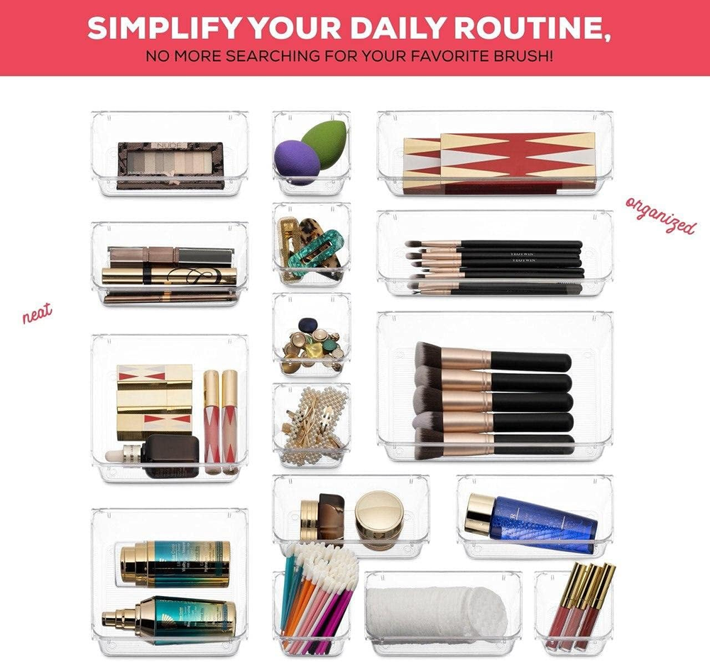 25 PCS Clear Plastic Drawer Organizers Set, 4-Size Versatile Bathroom and Vanity