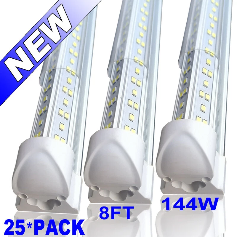 FAST DELIVERY - Ship from New Jersey or Los Angeles Warehouse via FedEx , 3-7 Days Delivered Your Door . SCIENTIFIC DESIGN - 8Ft LED Shop Lights Fixture is Made of 6500K Cold White SMD2835 LED Chip ,Plastic Clear Cover , Aluminum Bracket Housing ,and AC85-277V Constant Current Driver . It can work in -68F to 120F Temperature Conditions EASY INSTALLATION - The Integrated Tube Fixture Can be Install on Wall or Ceiling ,Easily Replace Traditional Fluorescent Tube Bulb . Plug and Play , Free Accessories (Power Cords, Connector , Extension Cords , Clip and Screw ) Come with Tube Lights Together WIDE APPLICATION - Linkable 8Ft Bulbs Widely Used in Garage Ceiling , Barbershop , Schools, Hospitals Basement , Factory Warehouses , Supermarkets Cooler Door , Offices, Shops,Hotels, etc 25 Pack Led Shop Light 8 Foot 144W 8ft LED Tube Light T8 Integrate 4 Row Fixture FAST DELIVERY - Ship from New Jersey or Los Angeles Warehouse via FedEx , 3-7 Days Delivered Your Door . SCIENTIFIC DESIGN - 8Ft LED Shop Lights Fixture is Made of 6500K Cold White SMD2835 LED Chip ,Plastic Clear Cover , Aluminum Bracket Housing ,and AC85-277V Constant Current Driver . It can work in -68F to 120F Temperature Conditions EASY INSTALLATION - The Integrated Tube Fixture Can be Install on Wall or Ceiling ,Easily Replace Traditional Fluorescent Tube Bulb . Plug and Play , Free Accessories (Power Cords, Connector , Extension Cords , Clip and Screw ) Come with Tube Lights Together WIDE APPLICATION - Linkable 8Ft Bulbs Widely Used in Garage Ceiling , Barbershop , Schools, Hospitals Basement , Factory Warehouses , Supermarkets Cooler Door , Offices, Shops,Hotels, etc