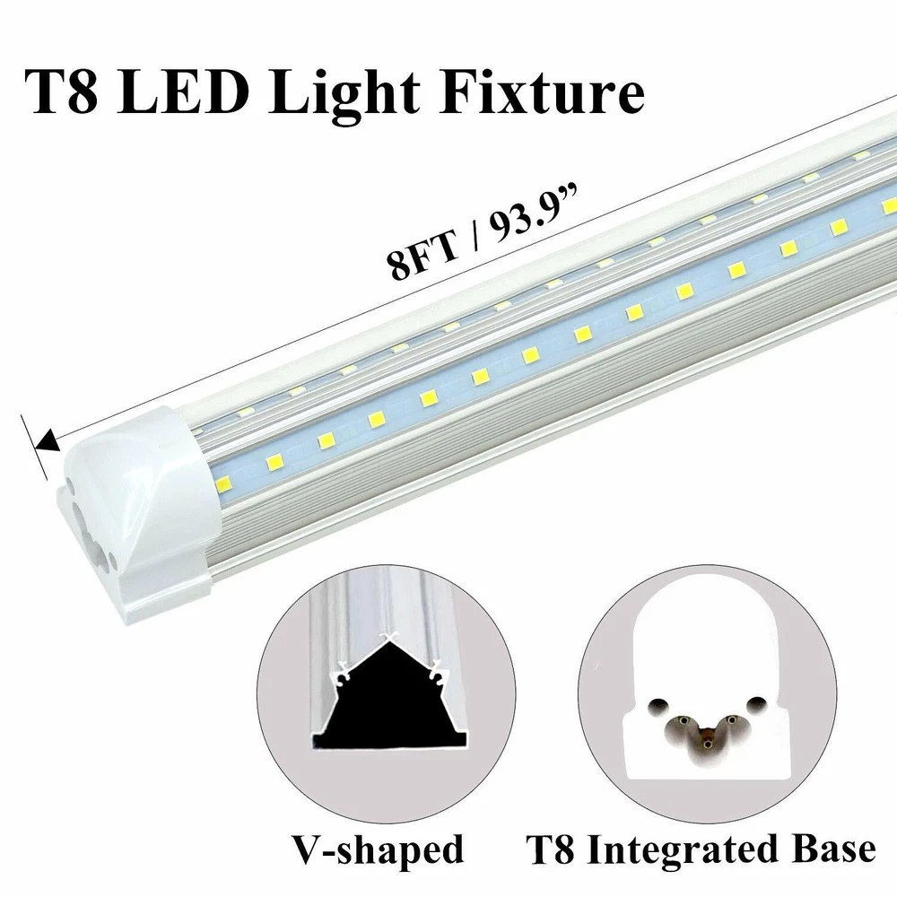 25 Pack T8 8FT LED Tube Light Bulbs 72W 6500K 8 Foot LED Shop Light Fixture Item Description: ● ENERGY SAVING - Reduce your energy usage and save up to 60% on your electricity bill when you use 72W 9360lumens LED tube lights as 150W fluorescent replacements. ● LONG LASTING - JESLED LED tubes have an outstanding life rating of 50,000+ hours and are composed of durable epoxy resin and aluminum alloy. These tubes can last 20+ years, eliminating the need to frequently replace your ceiling lighting. ● BRIGHTER & SAFER - JESLED LED tubes are brighter and safer: illuminate your space with 9360 lumens, and rest assured knowing our LED tubes are shatterproof and emit no UV or IR radiation. ● EASY to INSTALL - This integrated fixture, plug-and-play. You can install it anywhere on the wall and the ceiling conveniently ● LINKABLE - This 8FT LED Light Fixture can be connected up to one by one with seamless connectors and cords. Please don't put more than 6 pieces in one row. ● WARRANTY - JESLED’s hassle-free UNLIMITED 3 Year Warranty is unrivaled in the commercial lighting industry and covers all of our LED tubes. Contact our technical customer service team 24/7! 👉 If you have any questions(Such as shipping damage, shipping delays, product problems, etc), please email us. We will solve the problem for you as soon as possible, to give you a satisfactory way to solve the problem.Thank you for your understanding and patience! Features: Brand: JESLED Length: 8 FT(93.9'') Power: 72W Lumen: 9360 Lumens LEDs: 384PCS SMD 2835 Epistar LED Chips Beam Angle: 270 degrees Input Voltage: AC 100~305V 50/60Hz Color Temperature: 6000K- 6500K Cool White Working temperature: -22°F ~ +131°F Storage temperature: -31°F ~ +176°F Color Rendering Index(CRI): 85 IP Rating: IP54 Power Factor: >0.95 Driver Efficiency: >90% Life Span: 50000 Hours Lamp Net Weight: 2 lbs Material: High Strength Aluminum + Plastic Warranty: 3 years Package included: 25 x 8FT Integrated Double Row LED Tube Lights 25 x Installing cord(10 inches) 50 x Mount clips 50 x Screws 25 x Small Connectors 20 x Connector cords(7.8 inches) 25 x End caps 1 x User manual USING WARNING: Please do not conncet more than 6 lights in one power supply. Applicable: Cooler Door, Halls, warehouses, parking lots, workshops, stores, supermarkets, showrooms, etc. Manufacturer direct sales: JESLED - offers 3 years unlimited warranty means we’ve got you covered! Contact us for an easy and fast replacement. JESLED , devoted to led lighting products manufacturing and developing since 2009, we focused on develop and produce T5/T8/T9 led tube, led corn bulb, led wall pack, led string light, etc. All products are widely used in commercial, industrial, residential lighting. We are able to customize LED light fixtures for you, with high quality and excellent service, we are greatly appreciated in a variety of different markets throughout the world. Payment Delivery details Terms of sales About us Contact us Payment We accept PayPal, Apple Pay, Google Pay, Credit Card etc payment. Delivery details We have East warehouse and West one in the United States. We will choose the nearest warehouse to ship item according to your delivery address. Maybe Shipping by FEDEX, UPS, USPS, it will be delivered about 2 - 6 days Please read payment terms/methods and shipping fees before purchase. Terms of sales All of our products are one hundred percent brand new. Please inspect your order upon arrival for missing/incorrect items. If have, Please email us to notify us of any missing/incorrect item first. Item may be return within the return period. It must be returned in its original and unused condition. Goods must also be in its original box and packing. Do not dispose of the box or any packaging materials until you are satisfied with the product. We will process your order within 24 hours. About us JESLED was occupied in LED lighting since 2009, including indoor and outdoor LED lighting. The objective of JESLED is to offer superior quality LED lights to our clients, and enjoy a bright and comfortable life. We are able to customize HIGH-QUALITY LED light fixtures for you, you can consult me on eBay if you need. Contact us Our Office Hours Are : Start from 9:00 a.m. to 6:00 p.m. (GMT+8) of Monday to Friday. Closed on Weekend and public holidays