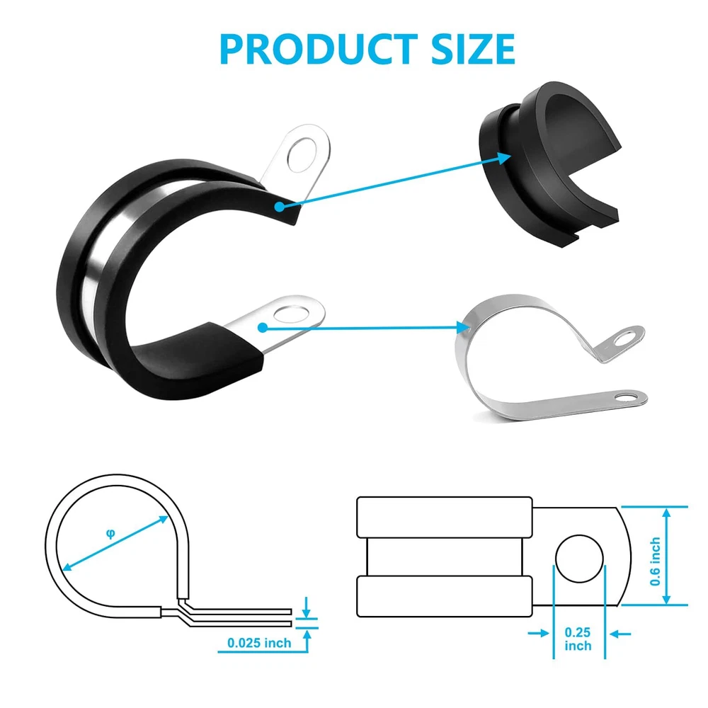 25 Pcs 1/2 Inch Stainless Steel Wire Clamps Rubber Cushioned Pipe Clamps Features: 🍀 High quality: The cable clamps are made of premium 304 stainless steel and high-quality rubber cushioning. Salt resistant, anti rust, anti-corrosion, waterproof, oil-proof. Clamps are sturdy, strong and reliable. The rubber insulation on the clamps holds up flawlessly. It protects the tube well and keeps the clamp securely in place. 🍀 SIZE: Cable clamp screw hole diameter: 6.5mm, fit for 6M( 1/4 inch) screw bolt to through them. Cable clamp inside diameter 1/2 inch. Fit for 1/2 inch (outside diameter) wiring, lines,hoses or cables to a panel or frame application. 🍀 STYLISH DESIGN: The R-type designs make the clamps stylish, flexible, and easy to twist, bend, manipulate, install, and remove. They also reduce extrusion and vibration during transportation and prolong the lifespan of the pipe and clamp. 🍀 Environmental friendliness: The high-quality materials used in the clamps make them reusable and recyclable, reducing waste and environmental impact. 🍀 WIDE APPLICATION - Perfect to apply in automotive, industrial, boat/marine, windshield, household etc. for wiring, cables, pipe, rack, line management and restoration. Description: 🍀 1/2 Inch Cable Clamps Stainless Steel Rubber Cushioned Insulated Clamp, Metal Clamp, Tube Holder for Tube, Pipe or Wire Cord Installation. 🍀 Feature: 💎 Premium 304 Stainless steel material with quality rubber cushioned for sturdy and strong use. 💎 Salt resistant, anti rust, anti-corrosion, waterproof, oil-proof. 💎 Sturdy, strong and reliable. 💎 Quality rubber insulation on the clamps holds up flawlessly. 💎 Protects the tube well and keeps the clamp securely in place. 💎 Easy to install, twist, bend and manipulate when install. 💎 P-Style design makes the clamps stylish, flexible and innovative. 💎 Widely used in automotive, industrial, boat/marine, windshield, household etc. 🍀 Specification: 💎 Material: 304 Stainless Steel, Rubber 💎 Clamp Inner Diameter: 1/2 inch (13mm) 💎 Screw Hole Diameter: 1/4 inch (6.5mm) 💎 Clamp width (include the rubber cushioned): 15mm. 🍀 Package Contents: 💎 25 pack 1/2 inch cable clamps. 🌻 If you need more quantity than shown available - just send me a message and I'll increase the purchased limit for you 🌻 SHIPPING We are always working hard to ensure your package arrives as soon as possible. Please understand that some factors like weather, high postal traffic, and the performance of shipping companies are outside of our control. We offer free shipping to the lower 48 states. We do not accept P.O. Boxes. Please provide a physical address. Thank you 🌻 TRANSLATE with x English Arabic Hebrew Polish Bulgarian Hindi Portuguese Catalan Hmong Daw Romanian Chinese Simplified Hungarian Russian Chinese Traditional Indonesian Slovak Czech Italian Slovenian Danish Japanese Spanish Dutch Klingon Swedish English Korean Thai Estonian Latvian Turkish Finnish Lithuanian Ukrainian French Malay Urdu German Maltese Vietnamese Greek Norwegian Welsh Haitian Creole Persian