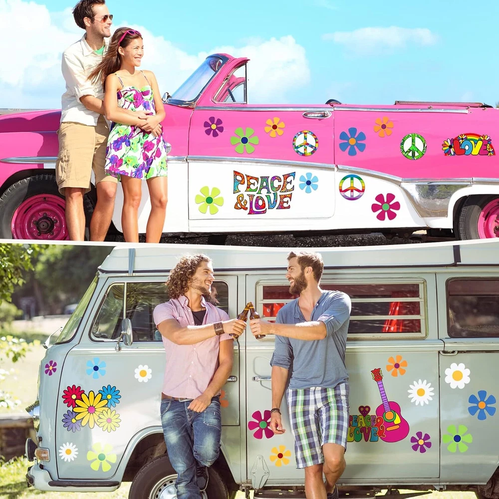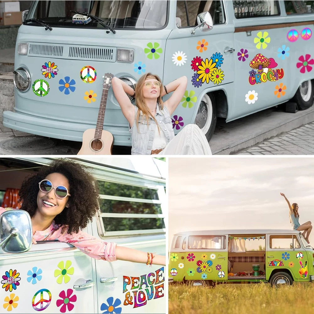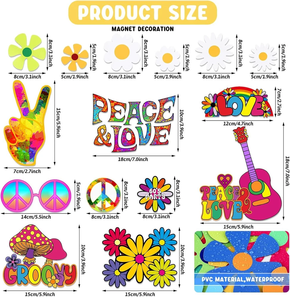 25 Pcs Car Magnet Decorations 60s Hippie Theme Party Magnetic Decals Fridge Magn