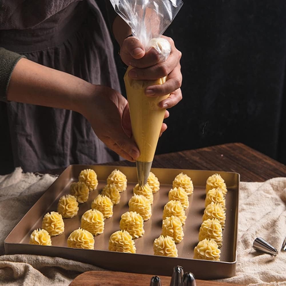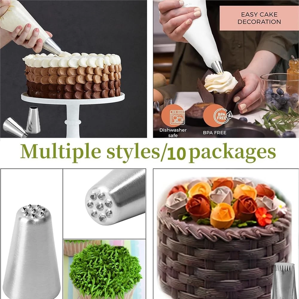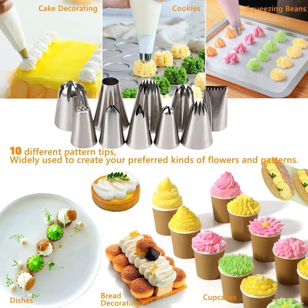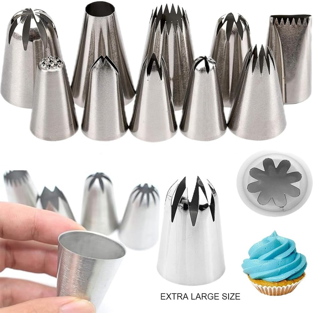 25 Pcs Extra Large Piping Tip Set, Stainless Steel Frosting Piping Kit,Pastry Cake Decorating Tips Baking Tools For Cookies Cupcake Decorating Kit (902 234 113 1M 190 D63 1D 9FT 1C R16L) Product Details Color: Large Piping Tips Set Brand: MDLJG MPN: 1 UPC: Does not apply EAN: Does not apply Brand: MDLJG Material: Stainless Steel Color: Large Piping Tips Set Number of Pieces: 25 Opening Shape: Flower Package Dimensions: 5.39 x 3.58 x 1.46 inches Item Weight: 11.7 ounces Manufacturer: MDLJG Country of Origin: China Item model number: 1 Date First Available: March 26, 2024 THE CAKE DECORATION KIT INCLUDES: Includes 10 XL frosting nozzles and 10 icing pastry bags,round plain tip, open star, closed star, French star, drop flower, rosettes flower, grass icing tip, leaf icing tip and basket weave decorating tip plus 1 cleaning brush,4Pastry Bag Ties, Large Piping Nozzles is bigger than other, more convenient to use(25PCS) USE & CARE: Simply position the tip into the bag and snip the bottom to fit. Dishwasher safe; However, for perfect decorating results, wash in warm, soapy water before first and after each use;rinse and dry PROFESSIONAL CAKE DECORATING TOOLS: Perfect tools to decorate all your desserts, cakes, cupcakes, cookies, pastry, sugar craft and more, helps you easily decorate cakes for birthdays, weddings and other events. Ideal for beginners as well as for professionals LARGE ICING TIPS: Larger than other standard cake tips, our piping nozzles set is perfect for decorating desserts, cakes, cupcakes, cookies, pastry dough, cookie dough, sugar craft, mashed potatoes, meringues, whipping cream and more EASY TO USE: Large piping nozzles can be reused. They can be used with disposable piping bags, and you can also use them with couplers. They are easy to clean and non-stick pan