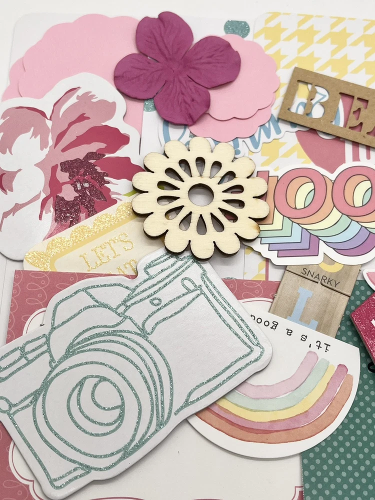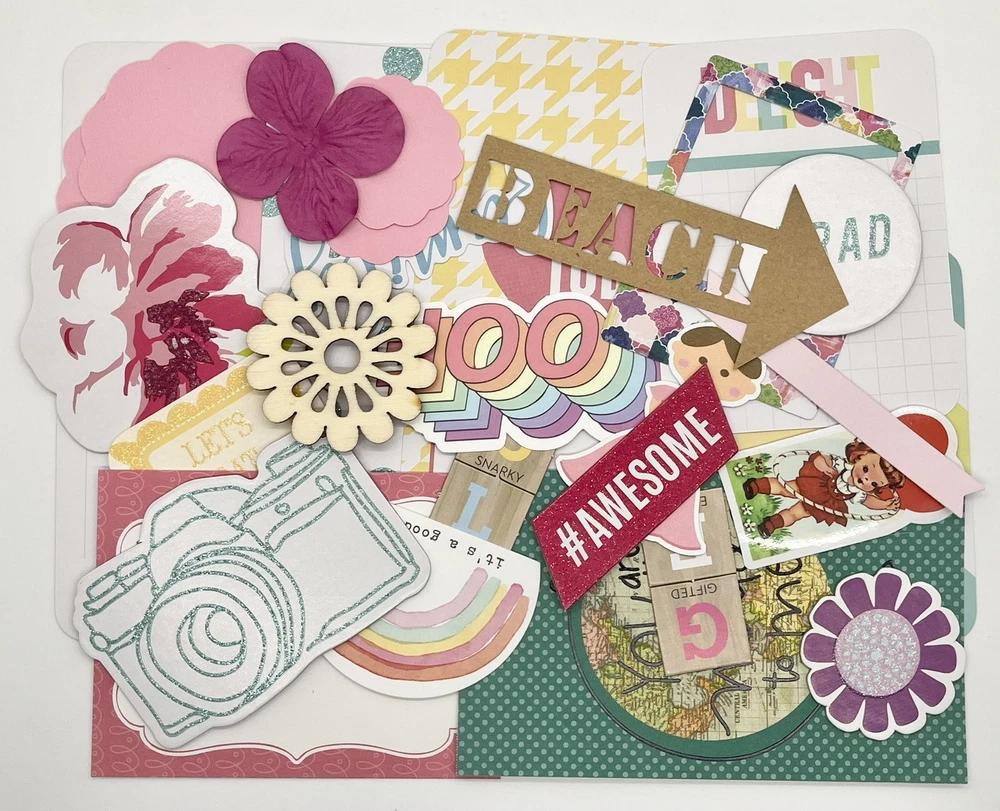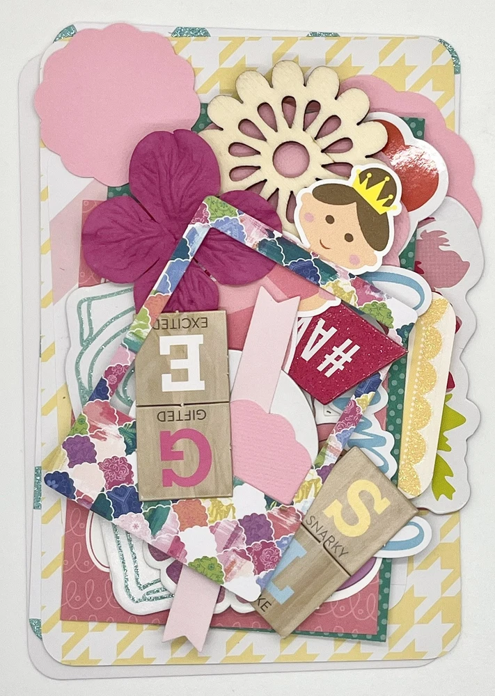 A 25 piece mix of junk journal and scrapbooking supplies. Included in the lot are things like journal cards, tags, stickers and more! Thank you!