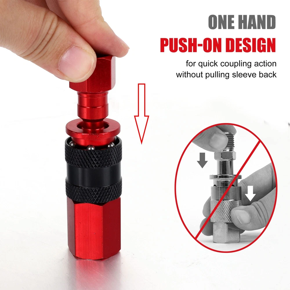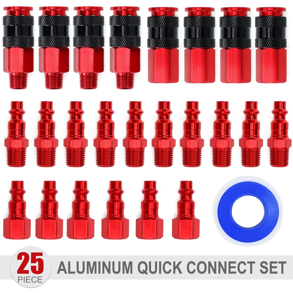 ➤ DURABLE ALUMINUM CONSTRUCTION: Made of Aluminum, Long-Lasting and Resistant to Corrosion. ➤ Do The Best to Prevent Leak: All male thread with sealent for no leaking and come with teflon tape. ➤ Easy Connect System: Sleeve guard helps reduce the risk of accidental disconnects and protects the coupler sleeve. ➤ Widely Use: Interchangeable with most manufacturers and easily locks tool onto air hoses. ➤ Trusted 1-Year – Here at we pride ourselves on creating the highest-quality tools and accessories possible, which is why we back every order by responsive and a 1-year manufacturer’s .