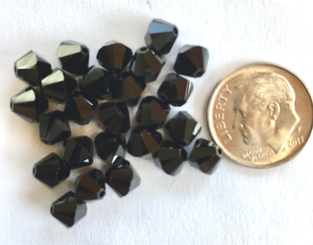 25 pieces of Genuine Swarovski Crystal 6mm Jet loose beads. These beautiful, new 5328 style bicone crystals are perfect for all jewelry items. This is a true black, no coating, which doesn't show up clearly in the picture. I also carry this color in 3mm, 4mm, 5mm and 8mm. Visit my store for other Swarovski crystal colors, styles, sizes and birthstone mixes in 4mm, 6mm and 8mm. FREE SHIPPING AND HANDLING ON THIS ITEM!!!!!