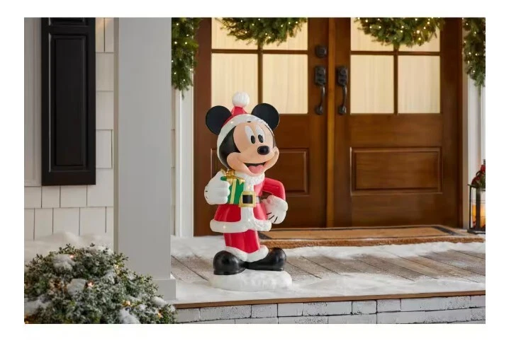 Perfect for fans of Disney, this adorable 2.5 ft. LED Mickey Holiday Porch Greeter makes a delightful addition to your holiday decorations. Mickey Mouse is ready for the holiday season and is decked out in a Santa suit and hat with a green present in hand. This light-up LED battery-operated greeter includes a timer for automating on/off settings. Indoor/Outdoor covered LEDs offer energy-efficient illumination Light-up Mickey measures 32 in. H x 14.38 in. W x 12.25 in. D Artfully crafted from blow mold Hand-painted detailing Requires (3) AA batteries, sold separately TRY-ME Includes (3) LR44 1.5V Button Cell Batteries, Non-Replaceable 6-hours on/18-hours off timer function included Suitable for decorating your home or outdoor covered spaces