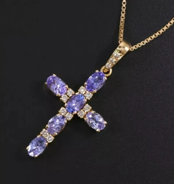 2.50 Ct Oval Cut Simulated Purple Amethyst Cross Pendant 14k Rose Gold Plated
