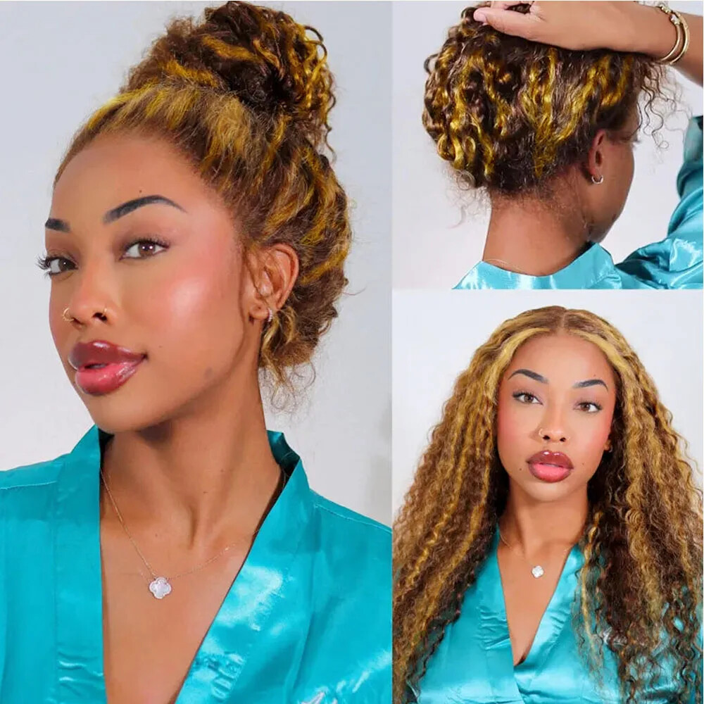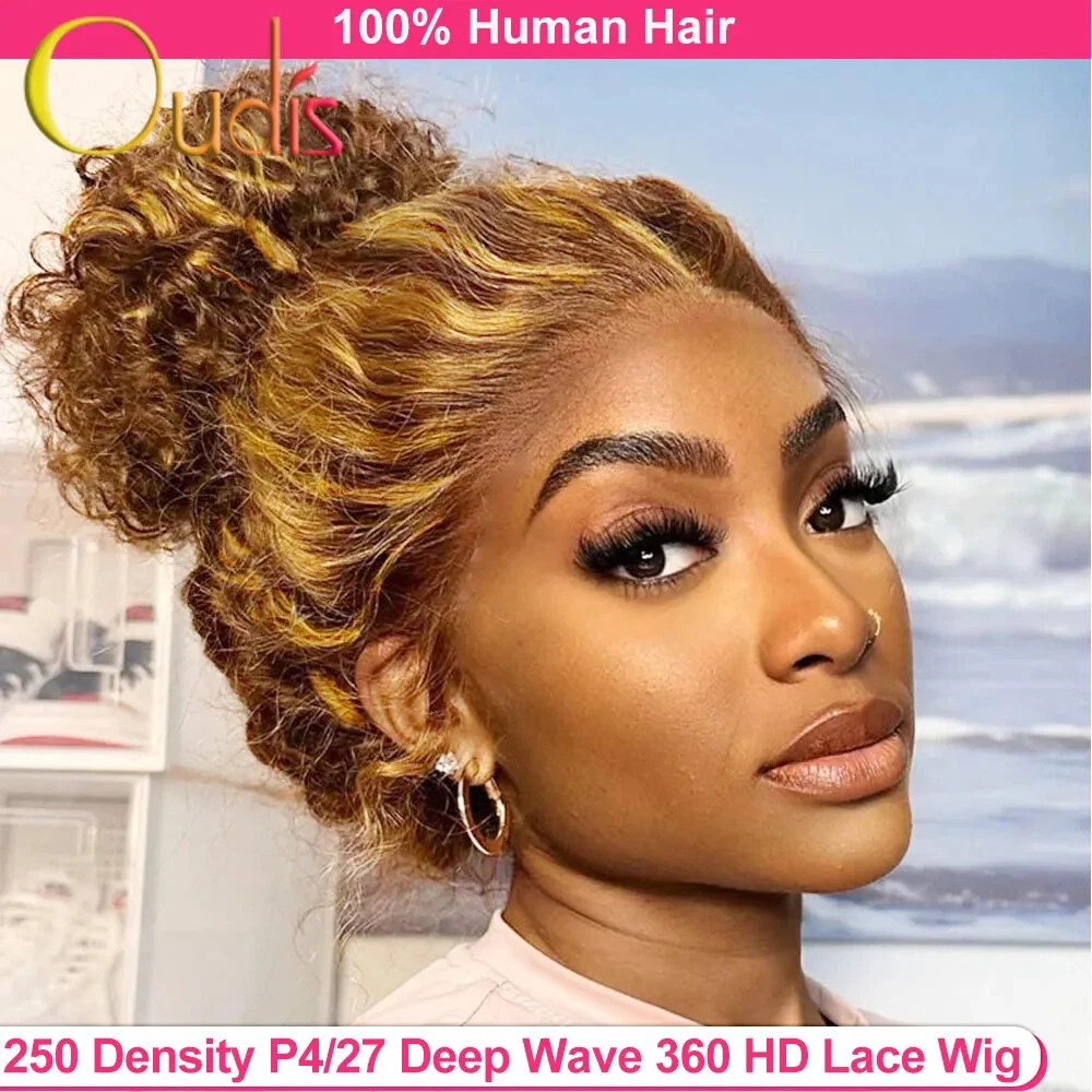 Wig Type: 360 full lace front wig human hair Hair Texture : Deep Wave hd lace frontal wig Density : 250 Density Length : 18-30 inch available Hair Material : 100% remy human hair from young donor Can Be Dyed Bleached : yes Lace Color: HD transparent lace,melt down perfectly, match all skins Hairline : Pre plucked with baby hair Cap Size : Average size with adjustable straps Hair Color:Highlight honey blonde lace front wig Wig Lifespan: 1-2 years with proper care
