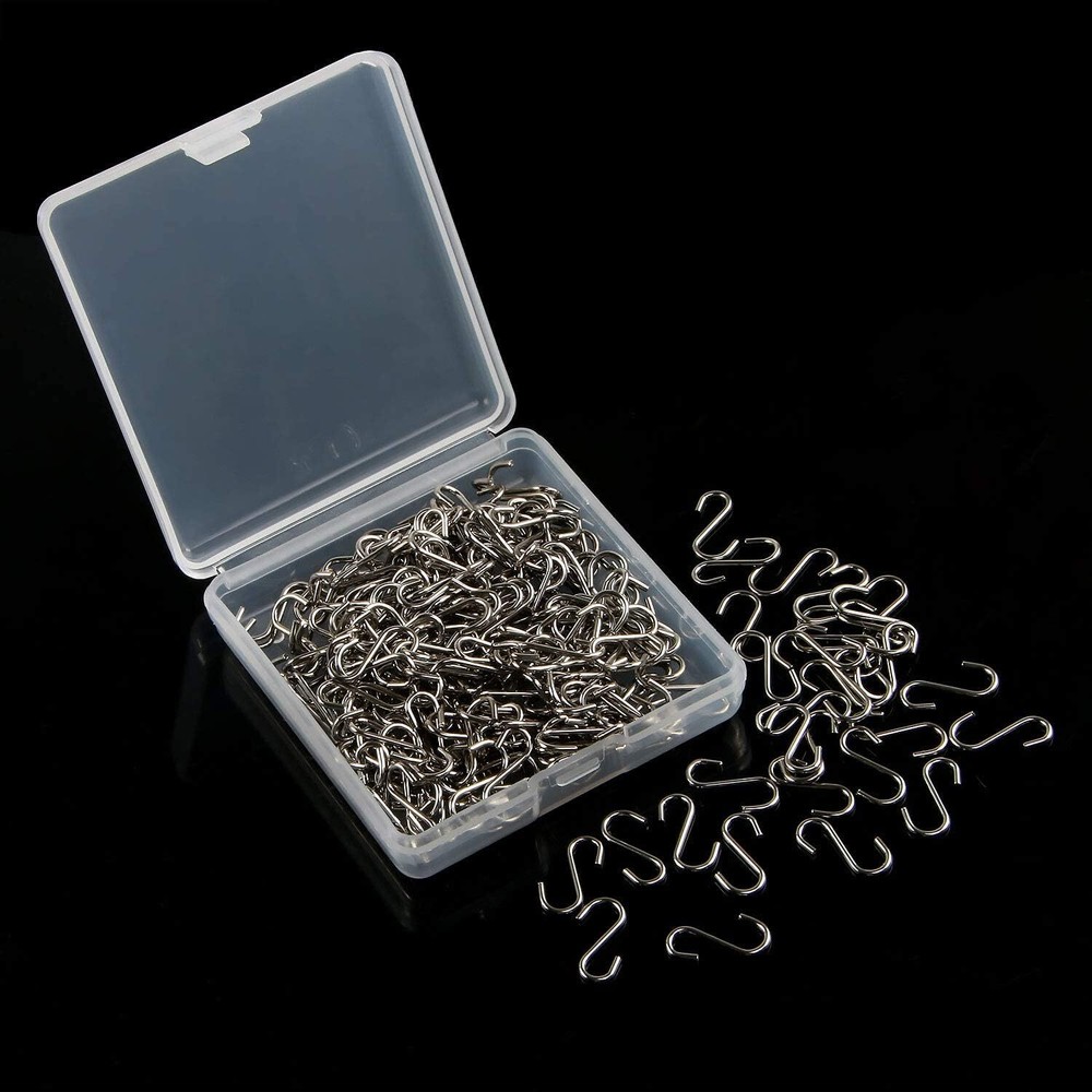 250 Pack Mini S Hooks Metal Wire Hanger Hooks for Christmas Ornaments Keychain Features: Package: 250 pieces mini S metal hooks (packed in a box);Note: small items, not suitable for children under 3 years old or they should use under adult supervision.Sturdy metal hooks, please bend with tools. S Hook Size: Mini S hook connectors,each measures approx 0.55 inch in length and 0.23 inch in width, please check the size before ordering. With Storage Box: Mini metal metal S-shaped hook are packed in a clear plastic box, which is convenient for storage and carrying without loss. Durable Metal Hooks: Made of sturdy carbon steel, not easy to get rust and not easy to bend closed, so these mini metal hooks can hang things firmly. Wide Application: S-shape design hangers securely hook the items and do not slide off easily. Mini s hooks can be applied to hang jewelry, keys, tagsphotos or other DIY craft projects; Also can use them to hang small wood discs to make birthday boards, wooden memorandum, calendar, etc. Description: Package includes: 250 pieces mini s hooks (packed in a clear plastic box) Specification: Size(LW): 0.55 x 0.23 inch Material: carbon steel Color: silver Quantity: 250 pieces Sturdy metal hooks: Made of sturdy carbon steel metal, not easy to get rust and not easy to bend closed, so these mini metal hooks can hang things firmly,never worry about your hanging object plummeting. Note: Small parts, please keep away from children under 3 years old Sturdy metal hooks, please bend with tools. 🌻 If you need more quantity than shown available - just send me a message and I'll increase the purchased limit for you 🌻 SHIPPING We are always working hard to ensure your package arrives as soon as possible. Please understand that some factors like weather, high postal traffic, and the performance of shipping companies are outside of our control. We offer free shipping to the lower 48 states. We do not accept P.O. Boxes. Please provide a physical address. Thank you 🌻 TRANSLATE with x English Arabic Hebrew Polish Bulgarian Hindi Portuguese Catalan Hmong Daw Romanian Chinese Simplified Hungarian Russian Chinese Traditional Indonesian Slovak Czech Italian Slovenian Danish Japanese Spanish Dutch Klingon Swedish English Korean Thai Estonian Latvian Turkish Finnish Lithuanian Ukrainian French Malay Urdu German Maltese Vietnamese Greek Norwegian Welsh Haitian Creole Persian