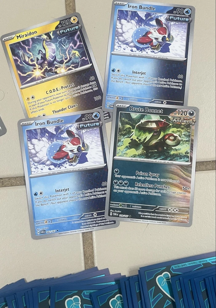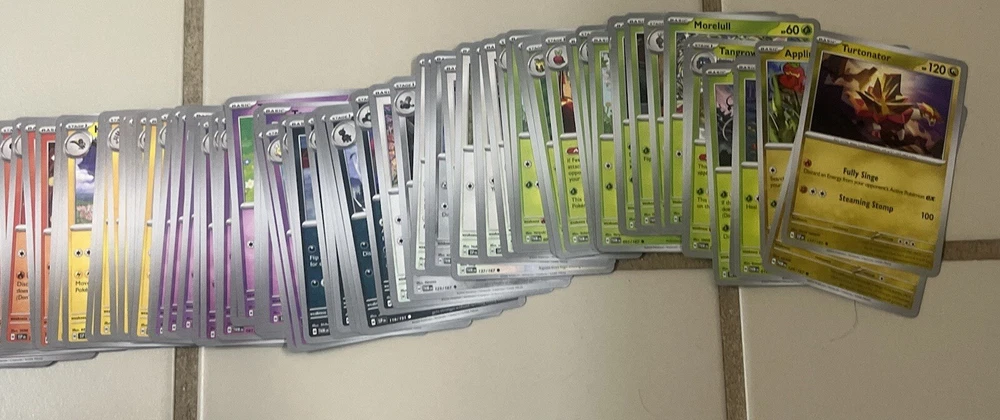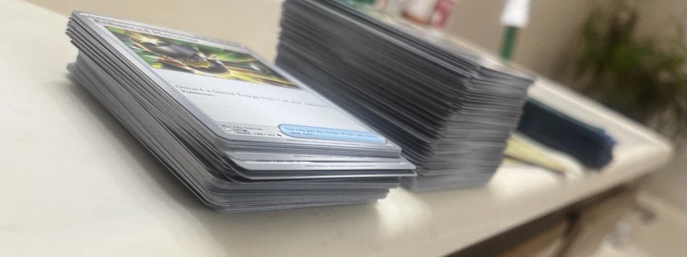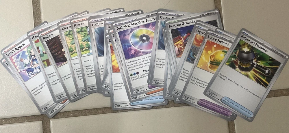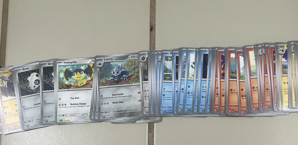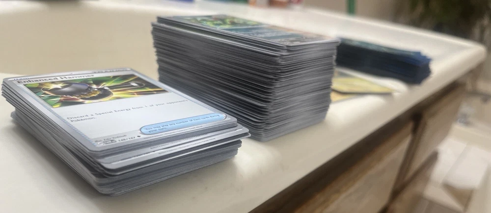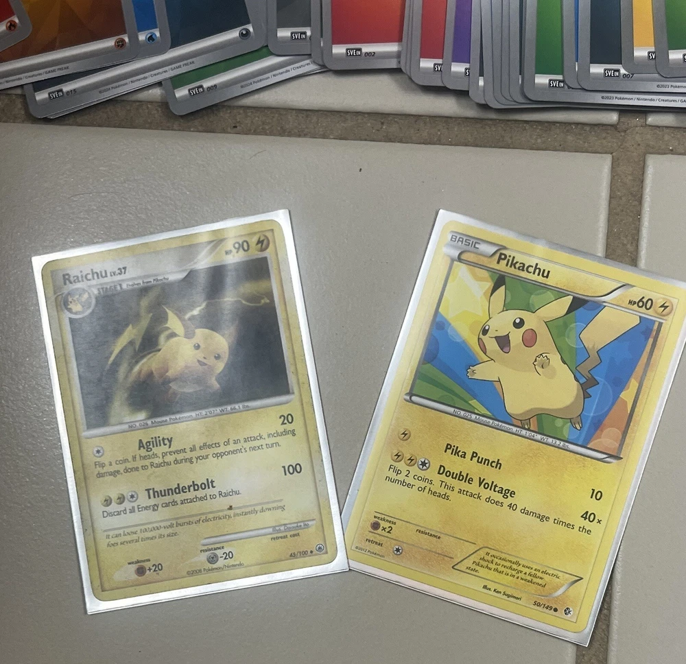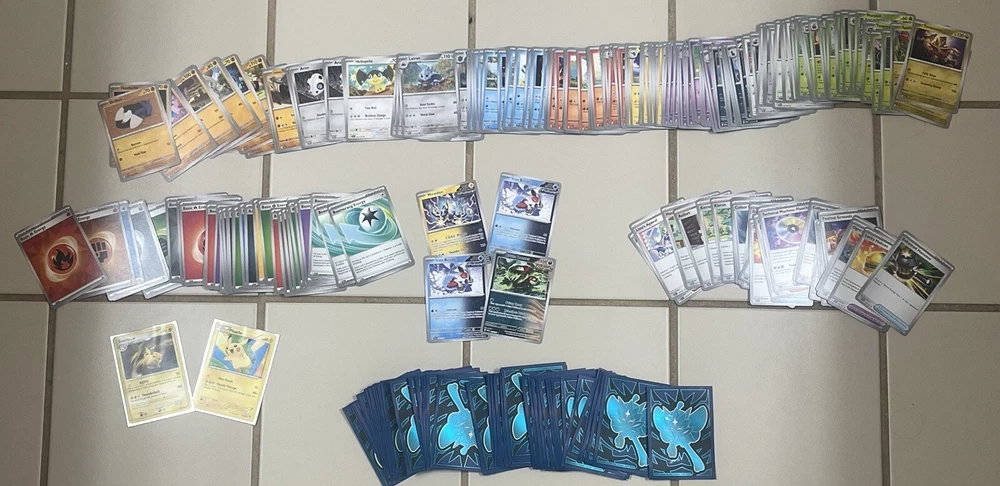 This 250 piece Pokemon lot includes a variety of cards such as uncommons, trainers, energies, and sleeves. The set features cards from the Surging Sparks, Obsidian Flames, and Twilight Masquerade expansions, including the beloved character Pikachu. The cards are all in excellent shape and come from the English language version of the Pokemon TCG. The lot is perfect for collectors or players looking to expand their collection. With a mix of different cards and a regular finish, it's sure to include something for everyone. Don't miss your chance to add these cards to your collection today! SUPER FAST SAFE SHIPPING!