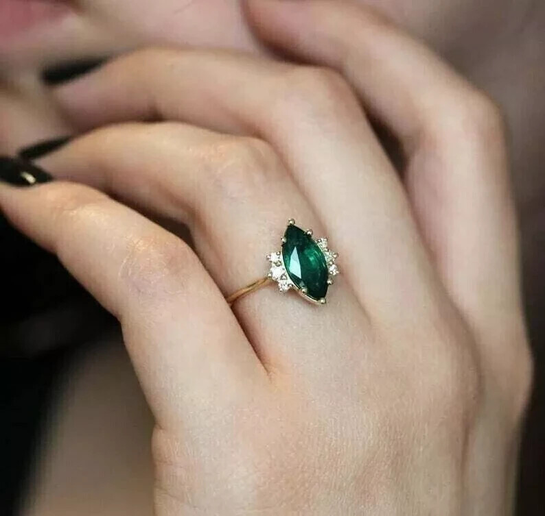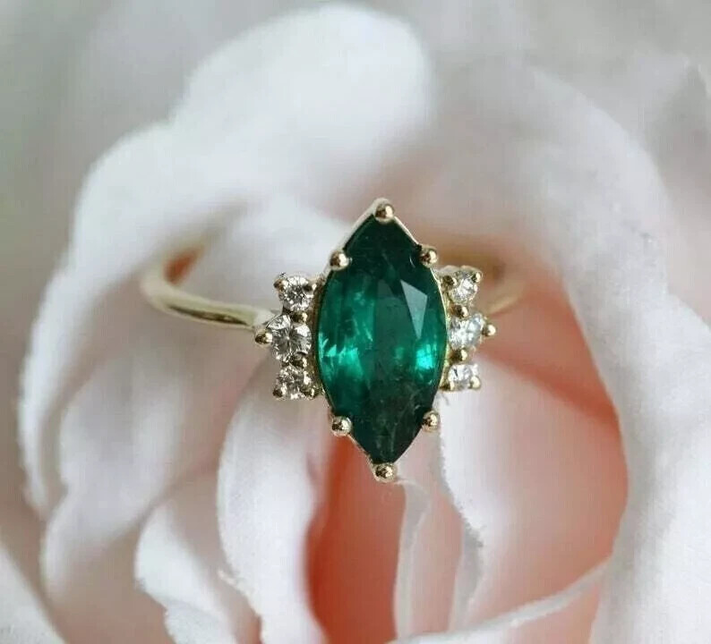 Character: NA Base Metal: Sterling Silver Number of Diamonds: As Per Image Customized: Yes Pattern: Solid Personalization Instructions: We Can Customizes As Per The Requirements Diamond Color Grade: Loupe Clean Character Family: NA Shape: Round Setting Style: Prong Colored Diamond Intensity: Fancy Light Occasion: Anniversary Handmade: Yes Cut Grade: Excellent Main Stone: Emerald Diamond Clarity Grade: Very, Very Slightly Included (VVS1) Number of Gemstones: 1 Total Carat Weight: 1.50Ct Brand: sanavi_4215 Material: Sterling Silver Country/Region of Manufacture: United States Item Width: As er Image Features: Engraved Secondary: N/A Accents: NA Certification: N/A Main Stone Color: Green Main Stone Creation: Lab Created Department: Women Seller Notes: “UNWORN ITEM” Main Stone Shape: Marquise Personalize: Yes Type: Ring Country of Origin: United States Theme: Love Color: Gold Metal Purity: 14k Item Length: As Per Image Style: Ring Size: All Ring Sizes Are Available. Please kindly Share Your Size Wholesale: Yes Gemstone Clarity Grade: Loupe Clean