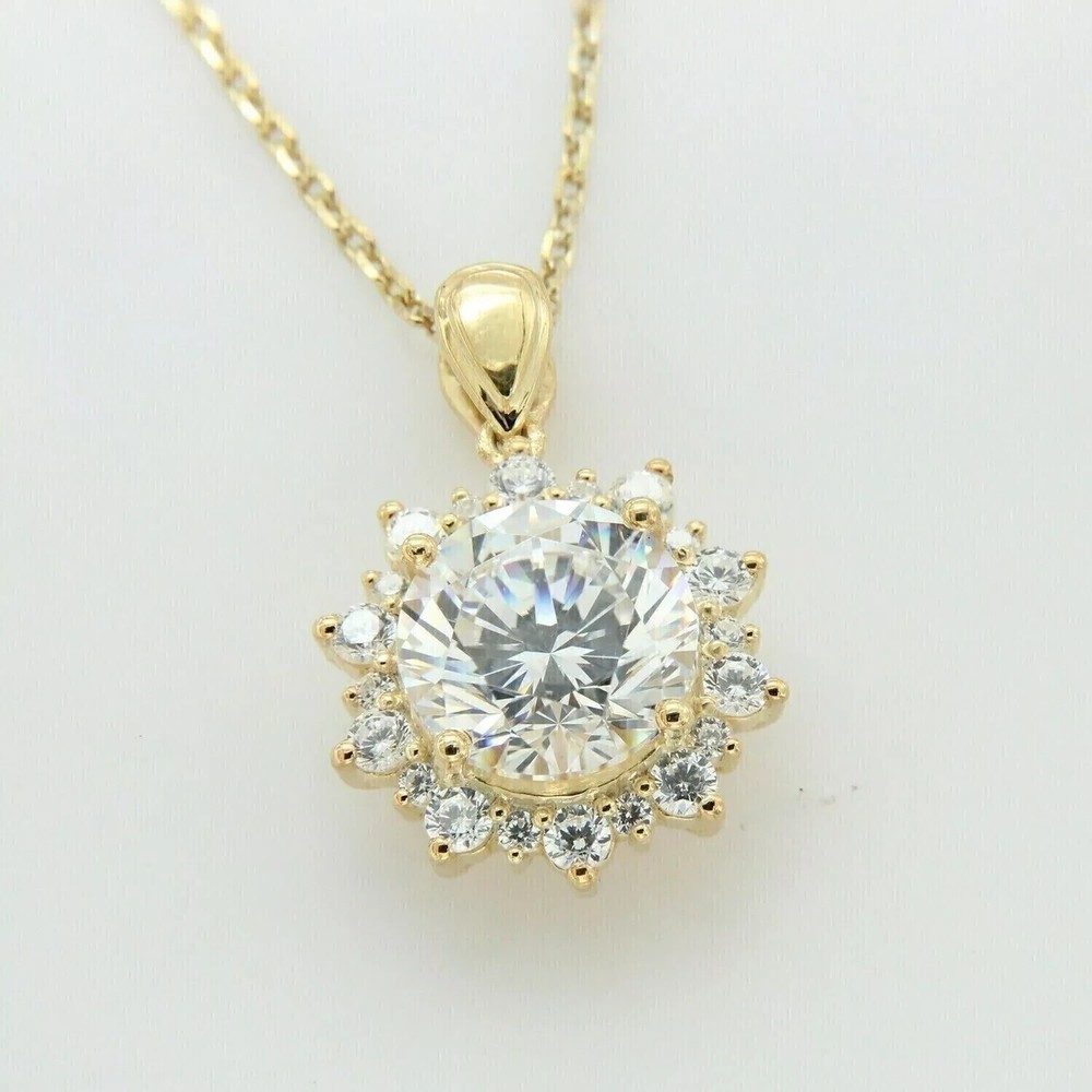 Main Stone Treatment: Not Enhanced MPN: NA Features: Engraved Metal: Sterling Silver Color: Yellow Cut Grade: Excellent Seller Warranty: Yes Type: Pendant Number of Gemstones: 00 Country/Region of Manufacture: India Main Stone Shape: Round Gemstone Clarity Grade: NA Necklace Length: 18 in Occasion: Anniversary, Birthday, Christening, Christmas, Confirmation/Communion, Engagement, Father's Day, Graduation, Mother's Day, Valentine's Day, Wedding Pendant Shape: Round Setting Style: Prong Wholesale: Yes Chain Type: Cable Pendant/Locket Type: Charm Main Stone Color: White Customized: Yes Metal Purity: 925 Material: Stone, Metal Theme: Beauty UPC: Does Not Apply Vintage: No gtin13: Does Not Apply Main Stone: Simulated Diamond Antique: No Handmade: Yes Style: Pendant Signed: No Personalize: Yes Brand: excellentstore Secondary Stone: Simulated Diamond Main Stone Creation: Simulated Country of Origin: Unknown Era: Undated Base Metal: Yellow Gold Plated Closure: Spring Ring