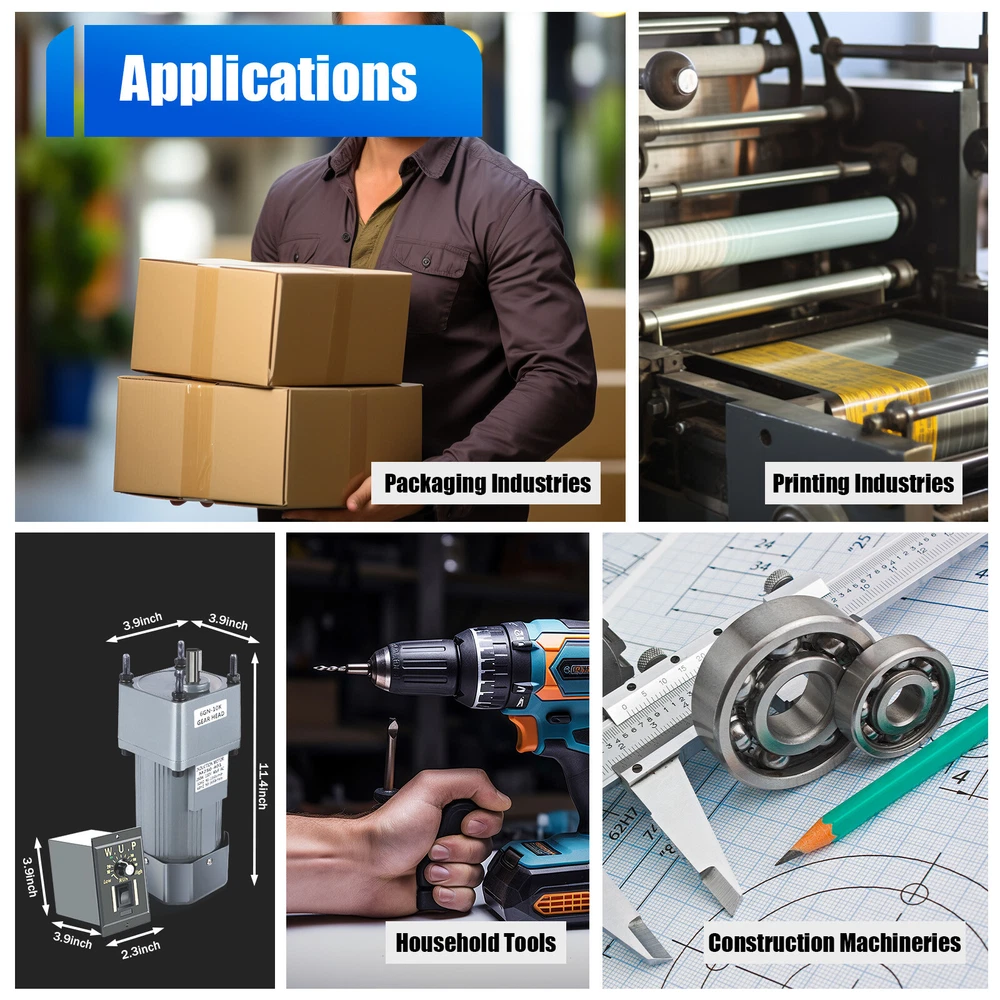 250W AC Gear Reduction Motor Electric+Variable Speed Control Reversible Motors Description Our variable-speed gear motor adopts a single-phase motor. It has a built-in precision gear and pure copper coil, which make it more stable and reliable. Meanwhile, the power of 250W and the speed of 135RPM can provide strong power to save a lot of energy when using it. It is suitable for conveyor belt, mixer, rotary table, and other equipment. Key Features High Efficiency: The variable-speed gear motor boasts a robust power of 250W, a reduction ratio of 10K, and a rotating speed of 135RPM, which provide you with strong power and meet your different requirements. Durable and Sturdy: It adopts pure copper coils and an alloy shell, with excellent heat resistance and heat dissipation, allowing you to use it for a long time. The die-casting process and the heat treatment process can ensure quality and provide a longer service life. Efficient Cooling System: The cooling holes on the bottom of the motor and the ventilated fan heat sink are designed to keep it cool and provide high reliability and durability. Dual Rotation Design: It supports forward and reverse rotation that can be achieved by changing the position of the speed controller wiring, so you can adjust the rotational direction according to the specific situation to meet your various needs. Stable Operation: All alloy gears with hob-shaving process, ball bearings, and pure copper coils can reduce friction and temperature during use, ensuring stable operation, increasing speed, and reducing overheating and load resistance. Closed Design: The closed design effectively prevents dust, water, oil, etc. from entering the machine, while minimizing the need for daily maintenance as much as possible. Low Noise: The noise emitted by the pure copper motor during operation is only about 50 decibels, which does not easy to affect you or others. Protective Packaging: This product comes in a custom sponge that resists common compression and falls to prevent product damage in transit. Details Clear Wires: For different wires, they have different colors, thus easily distinguishing and connecting them without confusion. Speed Controller: By rotating the controller knob you can change the motor rotation speed to suit different usage scenarios. Screw Holes: The gearbox is provided with screw holes for fixing it to the motor for stable operation. Application This product is widely utilized in various industries such as packaging, printing, textile, dyeing, chemical, food, medical, pharmaceutical, and construction machinery. It is also suitable for instrumentation, transmission, automatic warehouse, parking access control systems, and other equipment. Specifications Color: Grey Material: Copper, Alloy Surface Treatment: Die-casting Process, Heat Treatment Process, Hob-shaving Process, Spray Paint Voltage: 110V, 60Hz Horsepower: 250W Type of Motor: Single-phase Special Features: Forward and Reverse Rotation Reduction Ratio: 10K Rotational Speed: 135RPM Rated Torque: 16N-m Operating Noise: About 50dB Screws Hole Distance: 9cm/3.54inch Screw Hole Diameter: 9mm/0.35inch Crankshaft Diameter: 1.5cm/0.59inch Crankshaft Length: 3.5cm/1.37inch Gross Weight: 8.15kg/17.96lbs Net Weight: 7.05kg/15.54lbs Gear Motor Size: 10*10*29cm/3.9*3.9*11.4inch Speed Controller Size: 6*10*10cm/2.3*3.9*3.9inch Package Size: 32.5*29*20cm/12.7*11.4*7.8inch Package Included 1*Gear Motor 1*Speed Controller 1*English Manual Notes Please check motor size, and specs before purchasing. Please note it is normal for the electric machine to heat up slightly during operation. Please connect each wire correctly to ensure that the machine can operate normally. Please allow the slight color difference caused by the shooting light and 1-3cm error due to manual measurement, and make sure you do not mind before you order. Payment Delivery details Terms of sales About us Contact us Payment We accept ebay payment 。 Fees such as import duties, taxes are not included in the item price or shipping costs. These charges are the buyer's responsibility. Delivery details Shipping: 2-9 working days to: USA Terms of sales We maintain high standards of excellence and strive for hundred percent customer satisfaction. Feedback is very important to us. We hope that you contact us immediately before you give neutral or negative feedback, so that we can address your concerns. It is impossible to address issues if we do not know about them! About us Your satis faction is our ultimate goal. We work hard to earn your trust and future business. Our certified technicians have tested each item before shipping. The unit comes with 1 year limited warranty on all manufacturing defects. a) If you receive a defective item, you may return it or ask for a discount. Please contact us within 14 days after you receive the package. b) What you returned must be intact and in its original packaging as re? u. Customer is responsible for shipping costs of the returned item. c) We will cover the cost of shipping back t with the shipping rate indicated in the registration page. We will send you a new unit or refund the full payment you paid. Thank you. Contact us Business Hour Business Hour: Monday To Friday: 8:30 AM to 5:00 PM (Beijing China time) Due to time zones, our reply to your questions may not be immediately. But within above working time, we will reply your email within 24 hours. If it's non-workdays, please kindly be patient and wait till Monday. Please contact us with ebay message. Please feel free to contact us if you have any questions. Monday To Friday: 8:30 AM to 5:00 PM (Beijing China time) Due to time zones, our reply to your questions may not be immediately. But within above working time, we will reply your email within 24 hours. If it's non-workdays, please kindly be patient and wait till Monday. Please contact us with ebay message. Please feel free to contact us if you have any questions. Is the motor reversible Yes Brand Unbr