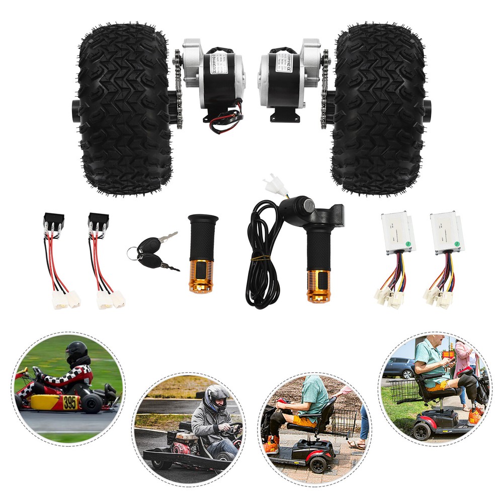 Double Wheel Motor Drive Air Wheel Conversion Kit For Electric Cart Scooter 250W Description If you are looking for a professional and safe kit for your scooter, then our set can be an ideal choice. Our products are made of high-quality materials and are built to last. Complete accessories are available to meet your needs. Its simple structure allows you to install and use it quickly. It is efficient and safe to use, providing a guarantee for your riding. Key Features Made to Last: This product is made of high-quality copper, iron, aluminum, magnetic and rubber, sturdy, stable, rust-proof and wear-resistant, ensuring long service life and strong load-bearing capacity, up to about 330.69-440.92lbs. Complete Kit: This kit contains the complete set of accessories needed to modify your scooter without the need to purchase them separately. Matching kits will provide you with more stable and consistent performance. Powerful Motor: With a 250W brush gear motor, it can reach a maximum speed of 6.21mile/h. Compared to brushless geared motors, it has high starting torque, simple control and high adaptability. High Safety: The F insulation class and IP33 protect grade make it safe and reliable, so you can use it with confidence. Electrical Assistance: The motor kit provides electric assistance to reduce the physical burden on the rider, especially when riding uphill, against the wind or over long distances, making the ride easier and more enjoyable for riders of all ages and fitness levels. Environmentally Friendly : Scooter, as a green mode of transportation, are conducive to environmental protection and are in line with the current concept of low-carbon life. Ideal Gift: With its good performance, you can give it as a gift to your family or friends who love to ride, so that they can enjoy the fun of riding. Good Customer Service: We aim to provide quality products and services. If you have problems, please feel free to contact us. We will reply and solve the problem for you as soon as possible. Details Large Wheels: 10inch diameter wheels with anti-skid design can easily handle most road conditions. Reverse Gear Switch: It solves the problem of traditional scooters that are difficult to reverse in narrow spaces or on steep ramps. It enables you to maneuver your scooter more safely and conveniently when you need to reverse, improving the flexibility and practicality of your vehicle. Digital Display Throttle: The digital display throttle is not only capable of adjusting the motor boost level, but also integrates a digital display screen to show the battery voltage in real time, allowing the rider to know the vehicle status at a glance, making the operation more intuitive and precise. Application This product is suitable for small go-karts, electric wheelchairs and senior mobility scooters. Specification Material: Copper, Iron, Aluminum, Magnetic and Rubber Color: Black Assembly Required: Yes Motor Type: Brush Gear Motor Rated Voltage: 24V Output Power: 250W Unload Current: ≤2.2A Rated Current: ≤13.4A Unload Speed: 370rpm Rated Speed: 330rpm Rated Torque: 0.8N.m Efficiency: ≥80% Gear Ratio: 9:7:1 Insulation Class: F Protect Grade: IP33 Speed: 10km/6.21mile/h Wheel Diameter: 25.4cm/10in Axle Hole Diameter: 12mm/0.47in Package Size: 48*37*30cm/18.9*14.57*11.81in Load Capacity: About 150-200kg/330.69-440.92lbs Gross Weight: 16kg/35.27lbs Package Included 2* Wheels 2* Motors 1* Digital Display Throttle Other Accessories for Assembly Notes Please note that this product cannot change gears, you can adjust the speed by throttle. Please note that this kit does not include batteries, you need to buy batteries separately, lead-acid batteries and lithium batteries are available, recommended battery capacity is 24V 15Ah. Please note that the wheels are vacuum tires without tubes. Please allow the slight color difference caused by the shooting light and 1-3cm error due to manual measurement, and make sure you do not mind before ordering. Payment Delivery details Terms of sales About us Contact us Payment We accept ebay payment 。 Fees such as import duties, taxes are not included in the item price or shipping costs. These charges are the buyer's responsibility. Delivery details Shipping: 2-9 working days to: USA Terms of sales We maintain high standards of excellence and strive for hundred percent customer satisfaction. Feedback is very important to us. We hope that you contact us immediately before you give neutral or negative feedback, so that we can address your concerns. It is impossible to address issues if we do not know about them! About us Your satis faction is our ultimate goal. We work hard to earn your trust and future business. Our certified technicians have tested each item before shipping. The unit comes with 1 year limited warranty on all manufacturing defects. a) If you receive a defective item, you may return it or ask for a discount. Please contact us within 14 days after you receive the package. b) What you returned must be intact and in its original packaging as re? u. Customer is responsible for shipping costs of the returned item. c) We will cover the cost of shipping back t with the shipping rate indicated in the registration page. We will send you a new unit or refund the full payment you paid. Thank you. Contact us Business Hour Business Hour: Monday To Friday: 8:30 AM to 5:00 PM (Beijing China time) Due to time zones, our reply to your questions may not be immediately. But within above working time, we will reply your email within 24 hours. If it's non-workdays, please kindly be patient and wait till Monday. Please contact us with ebay message. Please feel free to contact us if you have any questions. Monday To Friday: 8:30 AM to 5:00 PM (Beijing China time) Due to time zones, our reply to your questions may not be immediately. But within above working time, we will reply your email within 24 hours. If it's non-workdays, please kindly be patient and wait till Monday. Please conta
