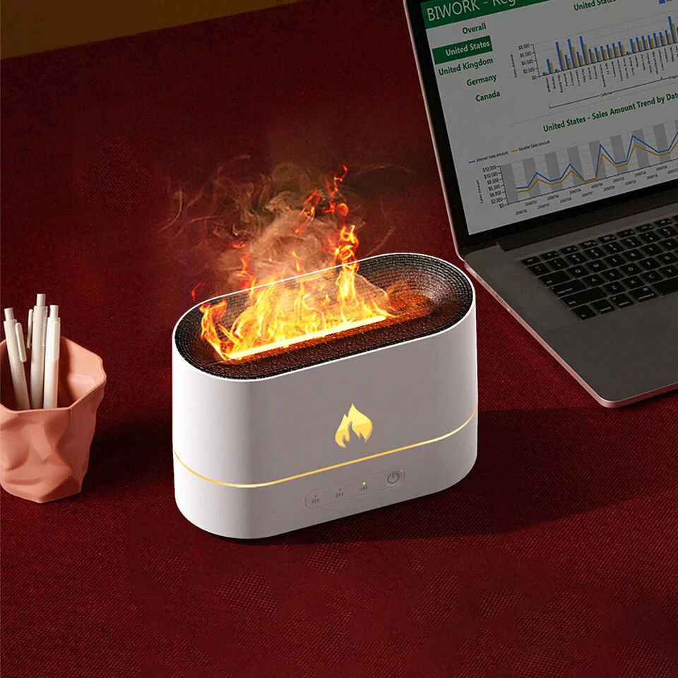 250ml Air Humidifier Essential Oil Aroma Diffuser 3D Flame Mist Home Decor USB Description Flame Effect: Smart LED lights combine with mist to create a flame effect, just like a fire burning in a fireplace. If used at night, the atmosphere of the room will be very romantic and healing, there are two color flames, yellow flame and blue flame. Auto-off without water: This aroma diffuser humidifier will automatically shut down on time, there are three timing functions, you can choose 1/3/5 hours timing, water-free auto-off design, once the water runs out, our humidifier will automatically stop Work. There is no potential safety risk to you and your family. In addition, the humidifier is made of BPA-free materials. Noise reduction: Unique noise reduction technology, noise can be controlled below 36dB, with adjustable brightness flame night light, create a perfect sleeping atmosphere, keep you away from dry skin. Purify the air: A humidifier can help you improve the air quality and humidify the air in your home, purify the air to remove pet or smoking odors, protect you and your family from dry skin, dry throat, dust allergies, etc. Wait. Water injection position: 250ml capacity, do not exceed the maximum water level line, otherwise it will affect the atomization effect or water leakage and cause damage to the host. Please add pure water to avoid damage to the atomizer function due to impurities in the water, so as to achieve the best performance Maintenance effect. Be sure to open the fuselage shell upwards, and then fill/pour out the water according to the designated position. Great Gift: A perfect holiday gift for friends, family and loved ones. Package includes 1 x Humidifier (Essential Oils And Water Not Included) 1 x USB Cable 1 x Instruction Manual Product Highlights Type: Air Humidifier Color: Black or White Material: ABS+PP+GEL+Electronic Components Dimensions: 170x80x108mm (6.69x3.15x4.25in) Shape: Columnar Rated Power: ≤4.5W Rated Voltage: DC5V/2A Working Current: ≤900mA Timing Setting: 1H, 3H, 5H Liner Material: Plastic Capacity: 250ML Number Of Fog Outlets: 1 Whether It Is Anti-Burning: Yes Power Supply: USB Noise: Below 36DB Applicable Area: Less Than 10 Square Meters Water Shortage And Power Failure Protection: Support Spray Volume: 15-20ml/h Light Color: Yellow Flame/Blue Flame Payment Shipping Returns Contact Us Paypal Payment only. We will ship in one working days. We accept 30 day no reason returns and free shipping. If you need a return, you can choose don't like it, then you will get a return label If you need any help, please contact us first!