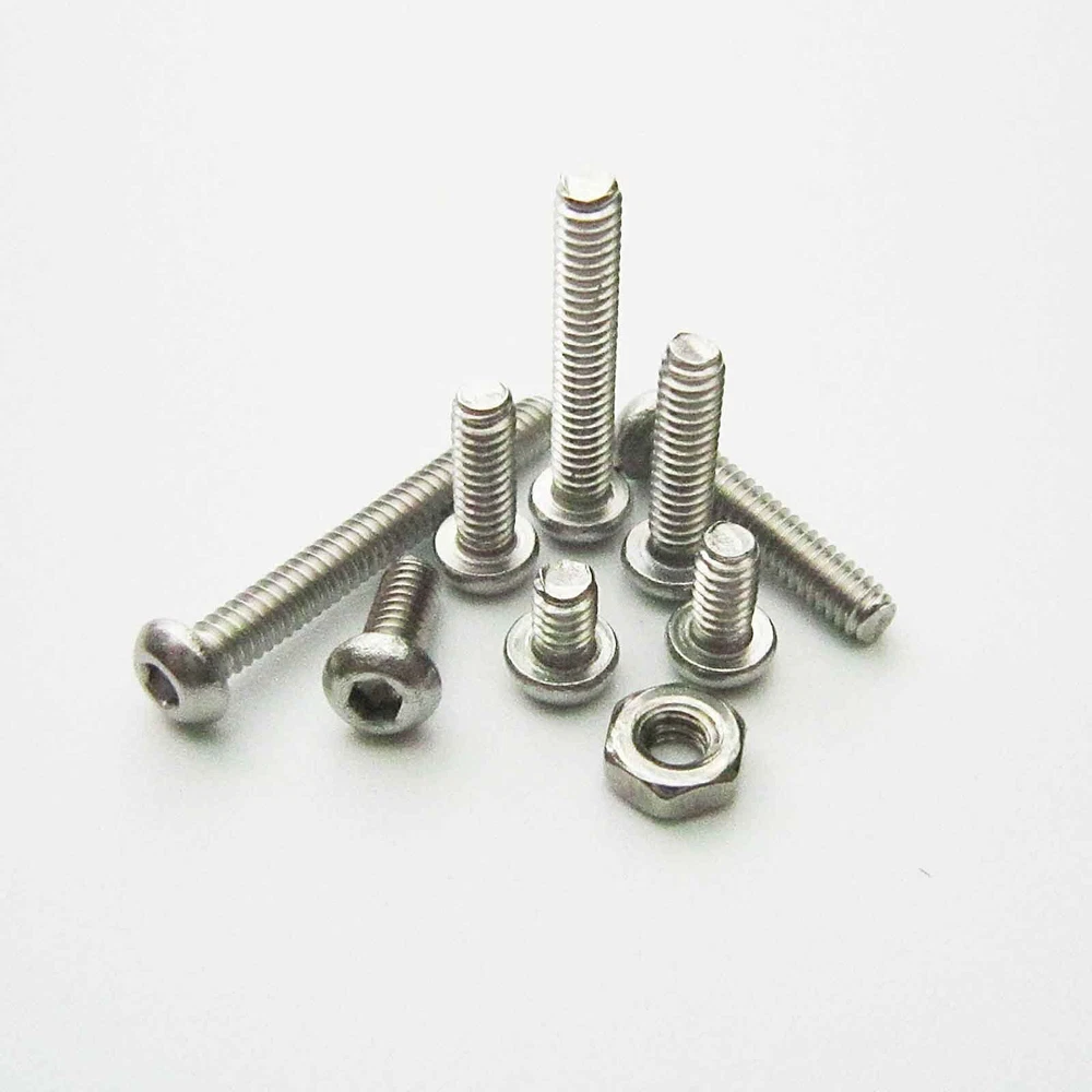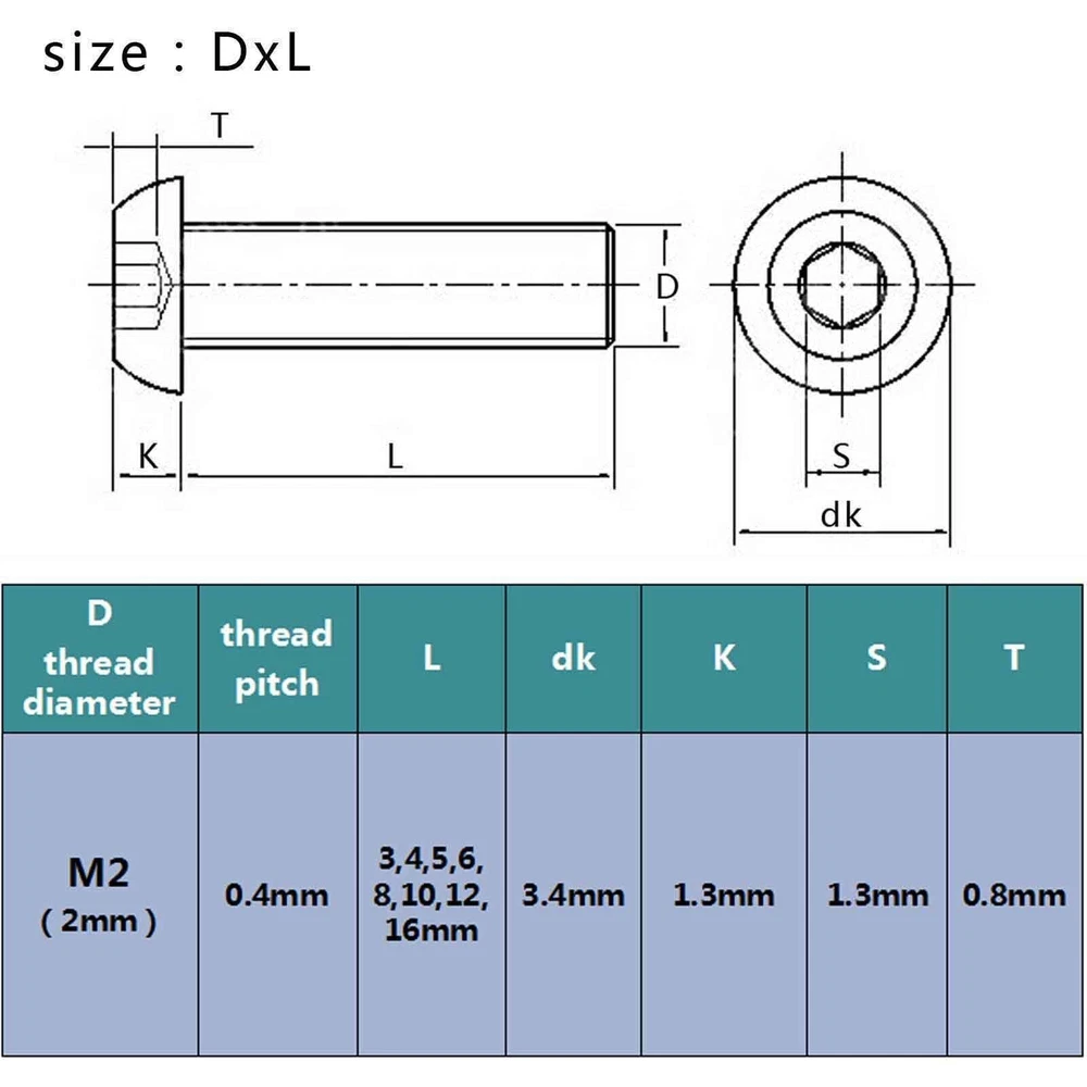 There are 25/50/100pcs high quality 304 stainless steel button head hex socket screw We sell screw and nut separately, if you need nut, please purchas it separately, Thank you. Material:304 stainless steel Size: D(thread diameter) x L(thread length) Metric thread diameter: M2 (2mm) Metric thread pitch:0.4mm Thread length: 3mm,4mm,5mm,6mm,8mm,10mm,12mm,16mm On Dec 14, 2024 at 23:16:40 PST, seller added the following information: