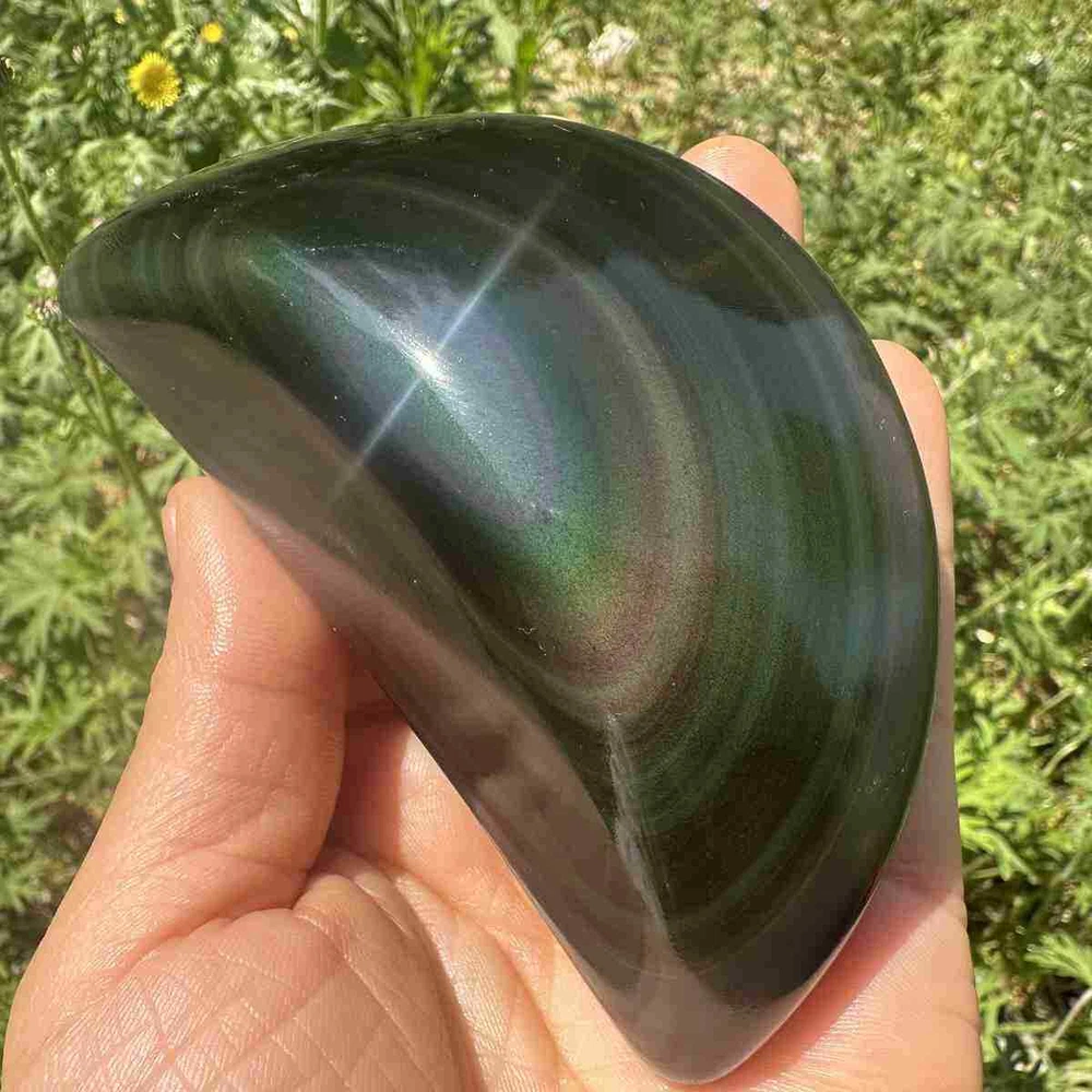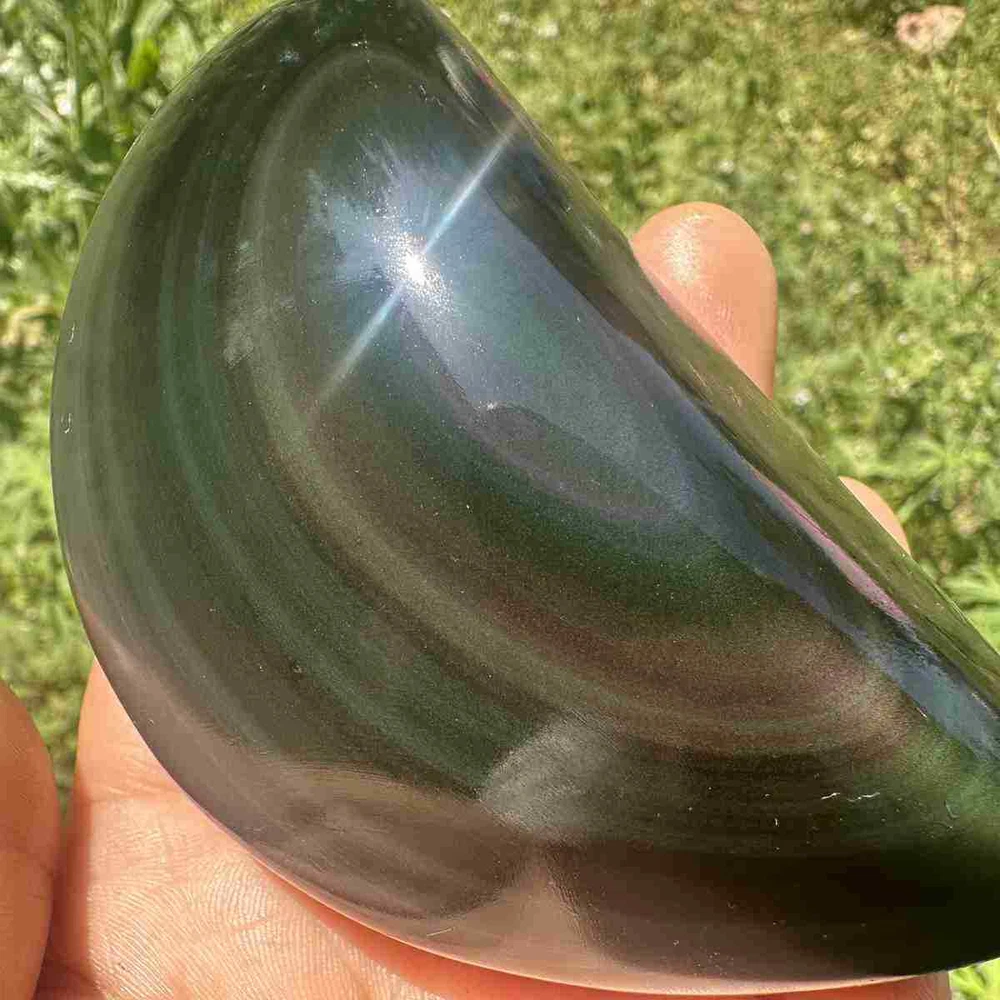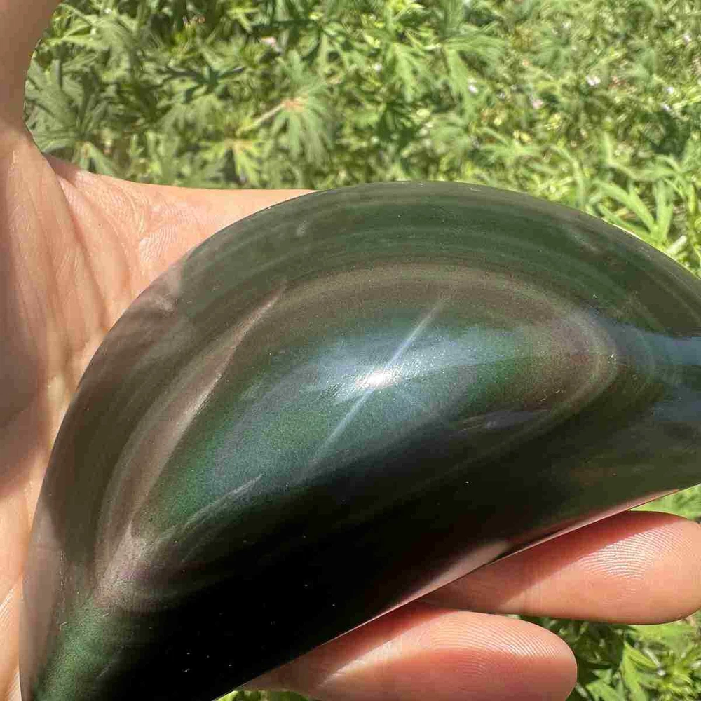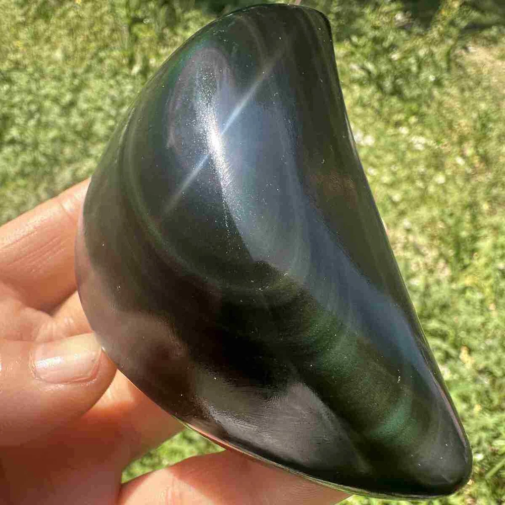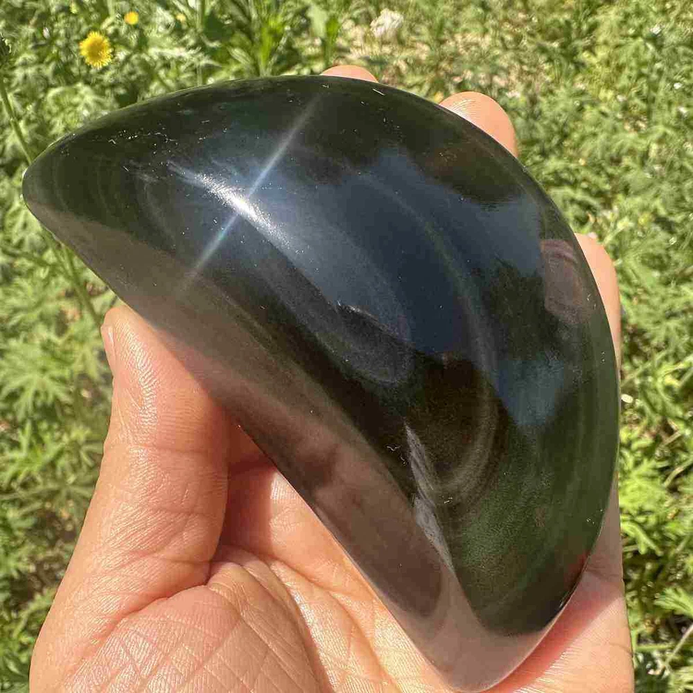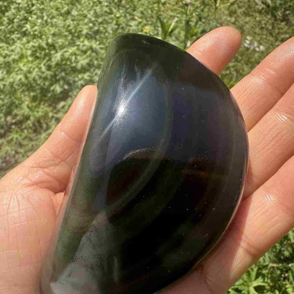 255g Natural Rainbow Cat's eye Obsidian palm Crystal Healing gift decor