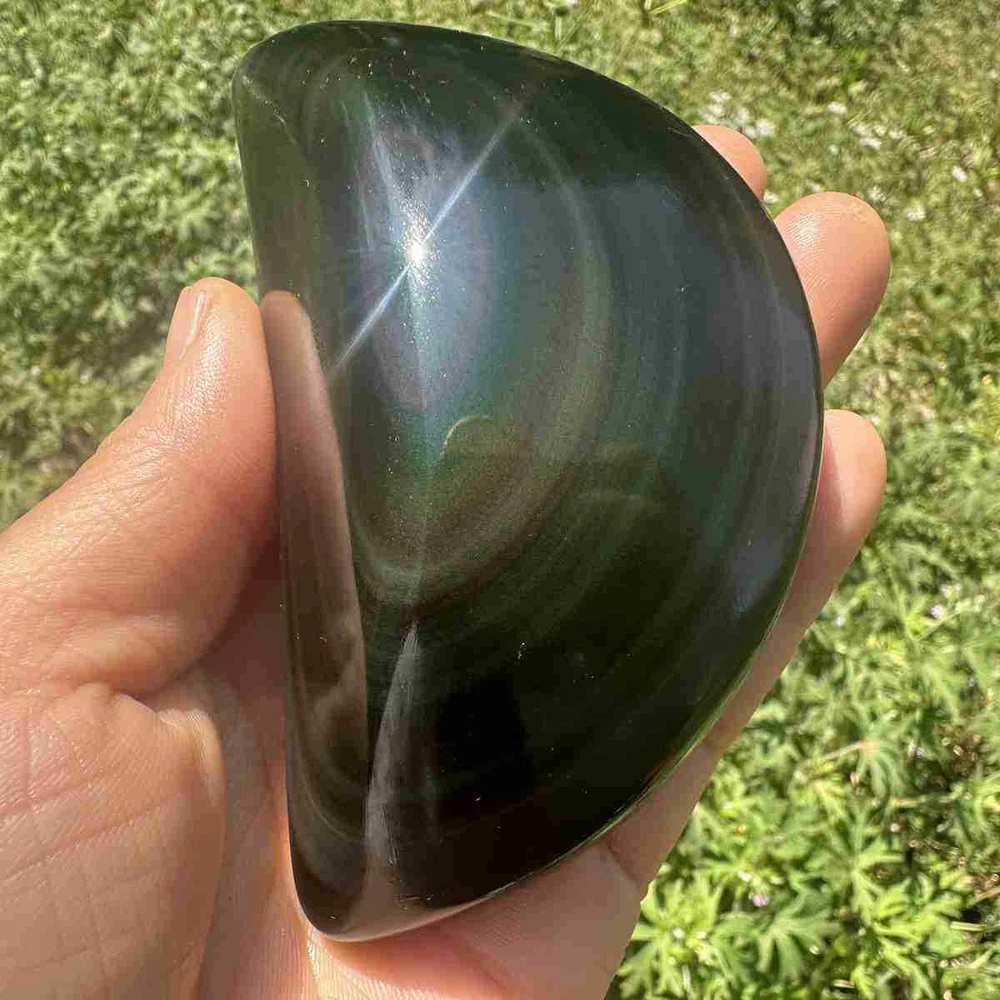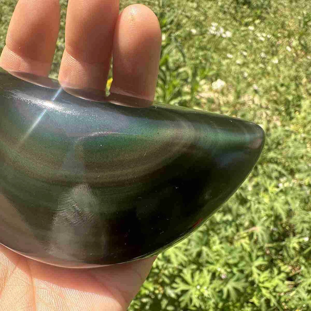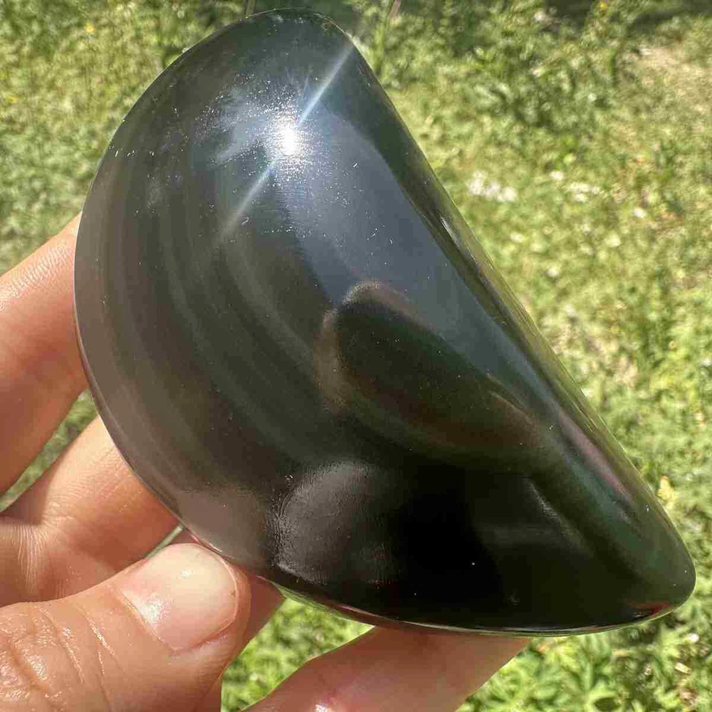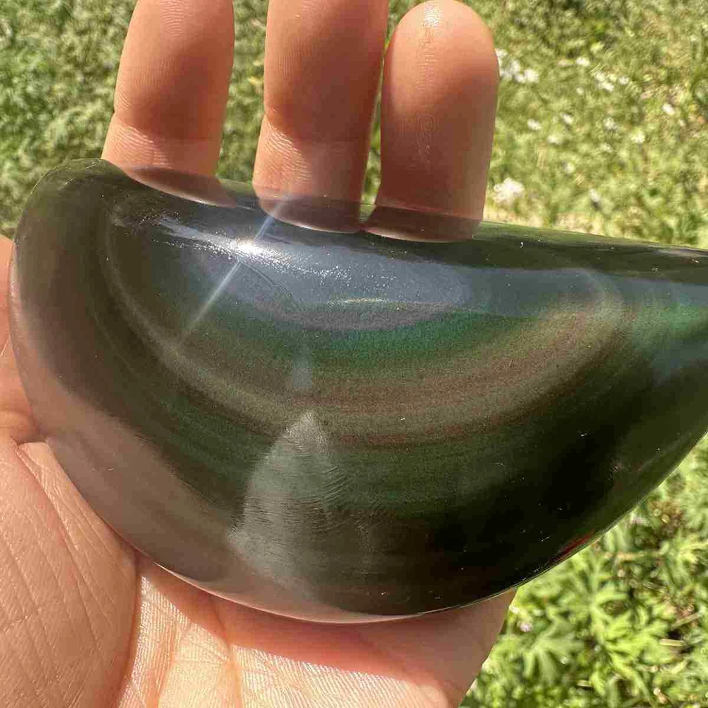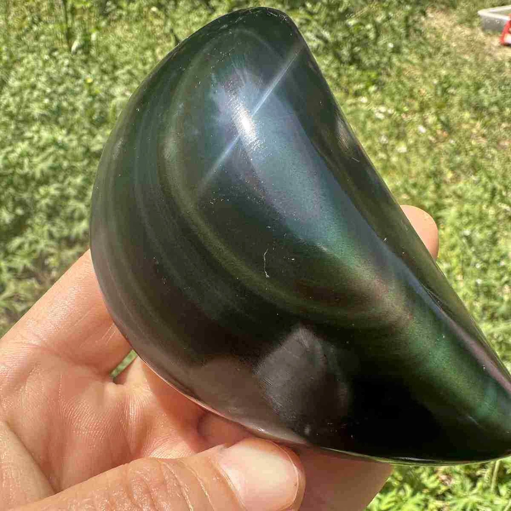 255g Natural Rainbow Cat's eye Obsidian palm Crystal Healing gift decor