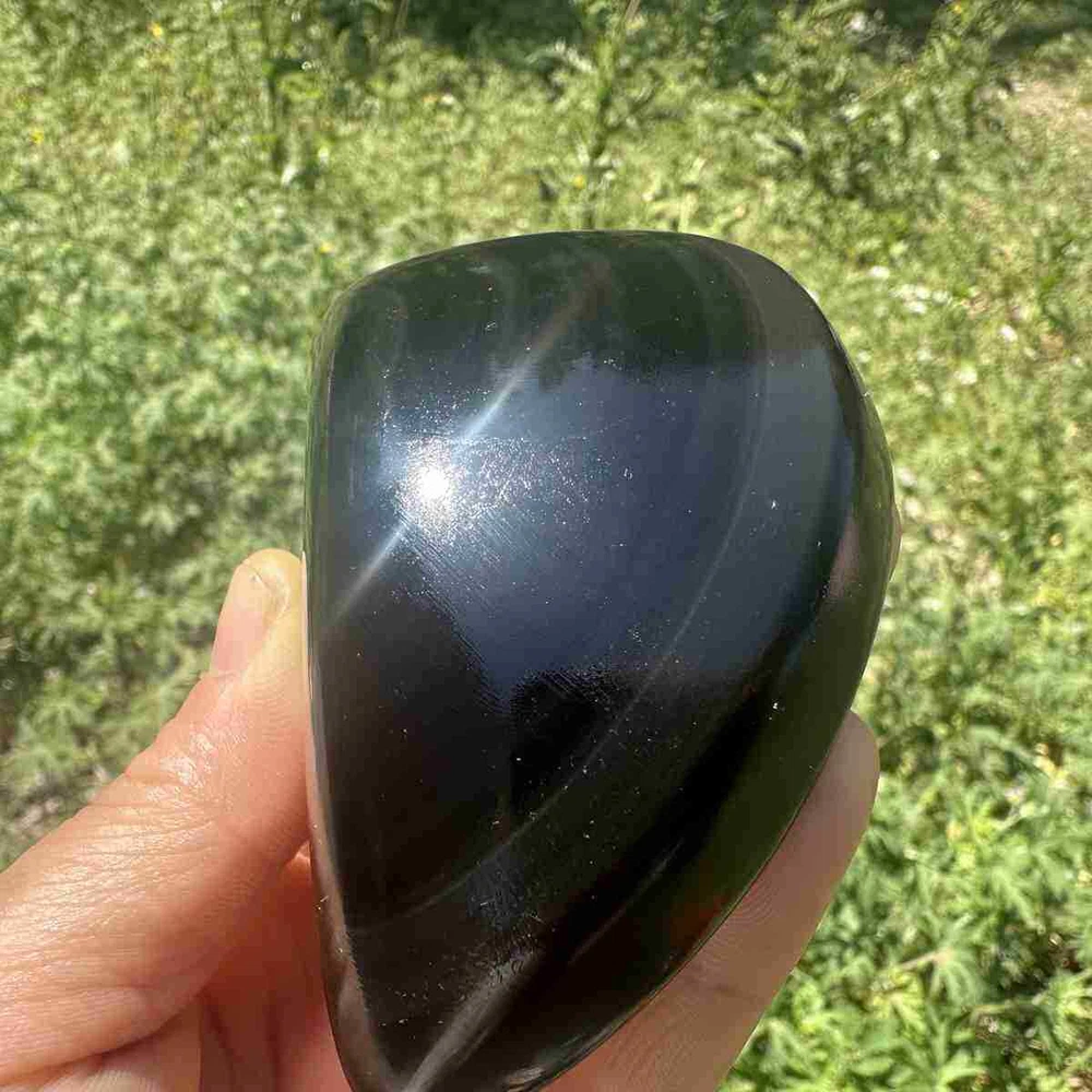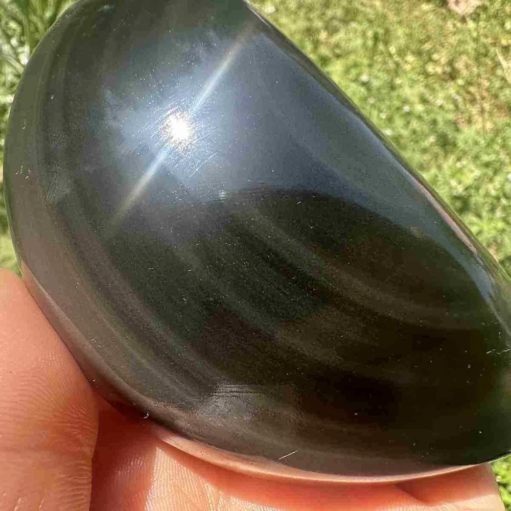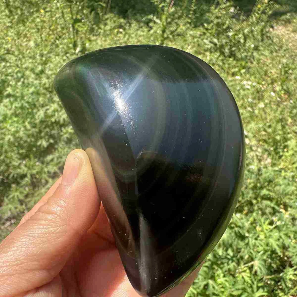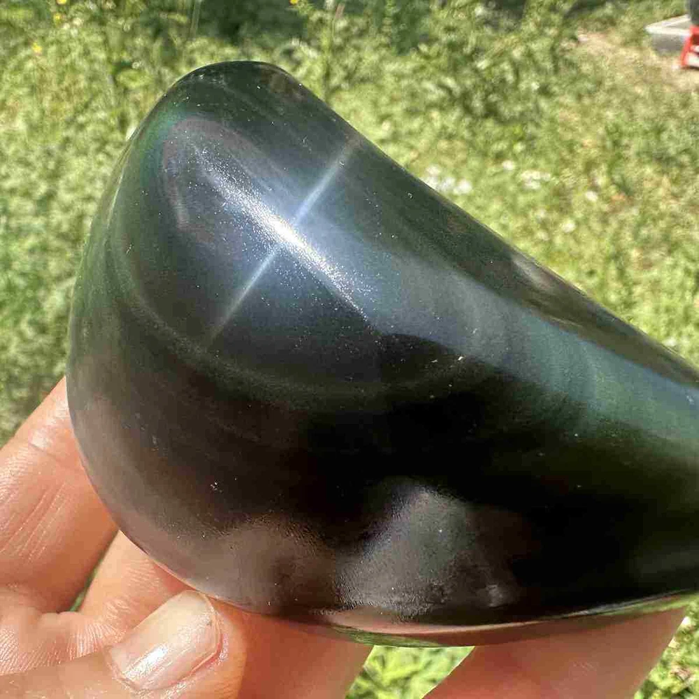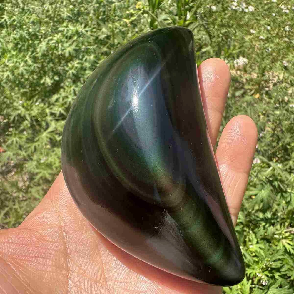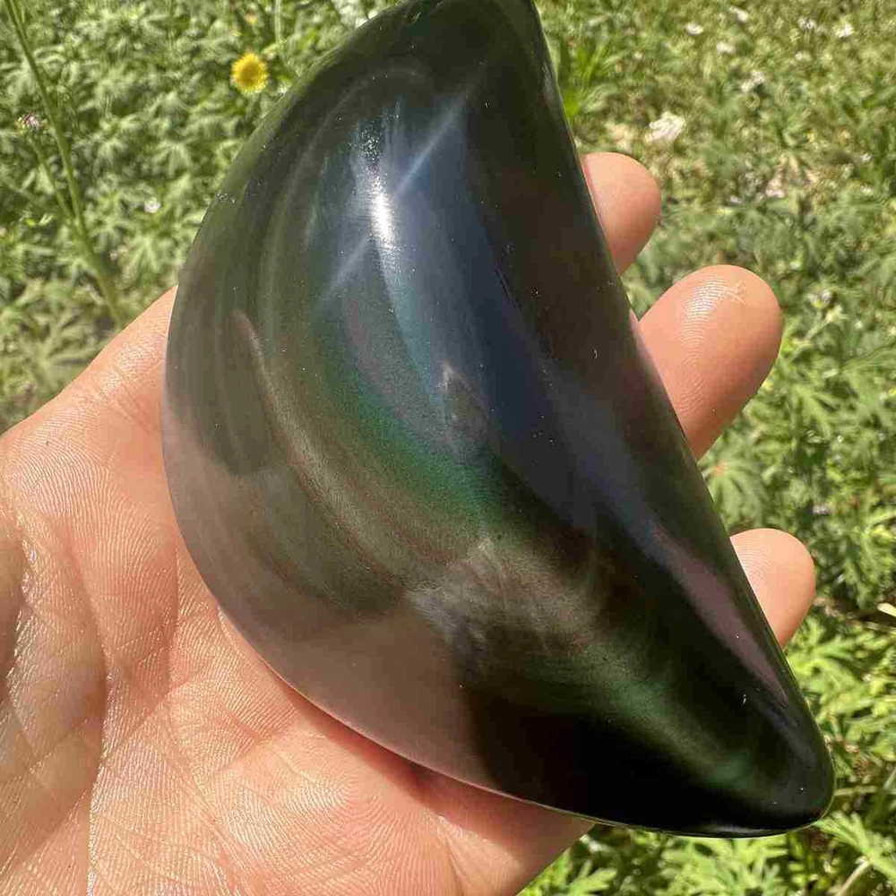 255g Natural Rainbow Cat's eye Obsidian palm Crystal Healing gift decor