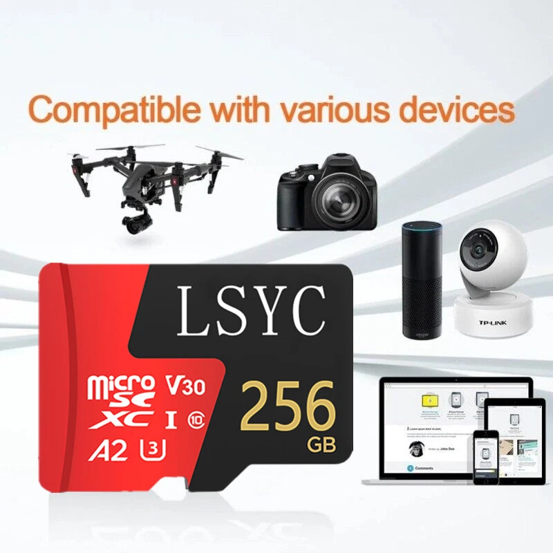 Specification: 1. 100% brand new Real Capacity card 2. Higher speed and greater storage 3. Not compatible with Nintendo Switch 4. Perfect for cell phones, cameras, MP3/MP4 Player, etc. 5. 100% satisfaction guaranteed 256GB Class 10 Memory Card Weight (Kg): 0.01 mobile memory cards plug directly into most phones with a card slot Highlights Three-month limited** warranty Great for capturing and storing photos and other media Increased capacities let you record and store more photos, music, HD† videos and other media Works with most mobile phones and tablets with a memory card slot†† Water proof, temperature proof, x-ray proof, shock proof‡ Compatibility Compatibility With and For devices with For Micro SD card slots enabled host devices including smartphones, tablets, laptops, digital cameras, game consoles, drones, etc. It provides you with speed and storage to capture more adventures OTG and also gives you a fast gaming experience.