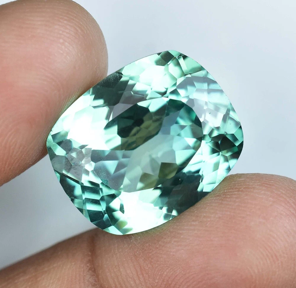 25.95 Ct Natural Greenish Blue Paraiba Tourmaline Certified Flawless Gemstone DESCRIPTION Product Details Product Name: Natural Tourmaline Shape: Cushion Color: Green-Blue Measurement: 18.10 X 15.10 X 9.20 MM Weight: 25.95 Ct. Quantity: 1 Piece Treatment: Heated Origin: Mozambique Hardness: 7 to 7.5 Mohs Shipping and Handling Handling Time: We take handling time of One Business Day from the date of receipt of the payment after receiving cleared payment. Shipping Services: The shipping company takes 7-10 business days to deliver the product at US. 11-23 days for International Shipping apart of USA. This transit time does not include the seller's handling time. Transit time includes normal weekdays. Often Saturdays, Sundays, and major holidays are not included in transit time estimates. Business day does not include Sundays. Payments A payment is considered "cleared" after your payment has been deposited into our account. We accept payment via PayPal only. Return Policy Merchandise must be returned within a maximum of 30 days on receipt. Merchandise must be unused, unworn, and undamaged by you and in the original shipping condition. Your refund will be processed within 3 working days upon receipt of return package. Return shipping charges will be borne by the buyer. All duties, taxes in the buyer’s country are taken care by buyer only. Feedback Feedback & DSRs (Detailed Seller Ratings). We strive for 100%Customer Satisfaction and we love to leave positive feedbacks for our buyers. Negative feedback is not a solution. So, we request you to contact us and give us a chance to resolve it asap. Thank You and Happy Shopping.