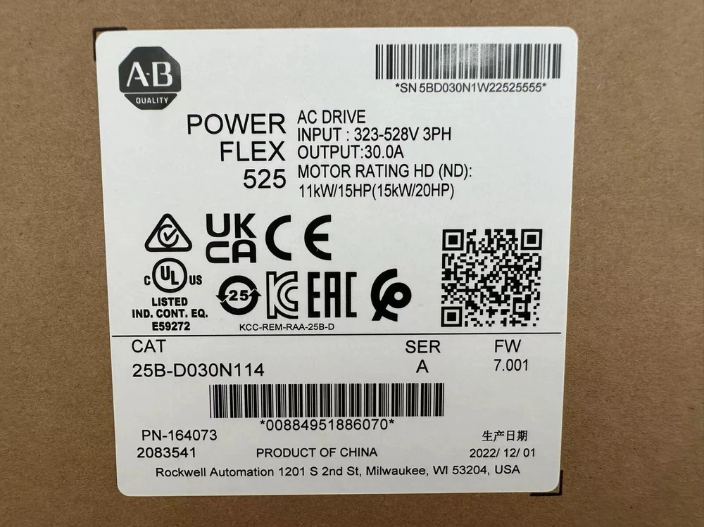 Power Rating: 11 KW gtin13: Does not apply Rated Load: 20 HP Number Of Phases: 3-Phase Model: 25B-D024N114 MPN: 25B-D030N114 Input Voltage: 3 V UPC: Does not apply Brand: Allen-Bradley Country/Region of Manufacture: United States Bypass: No Bypass
