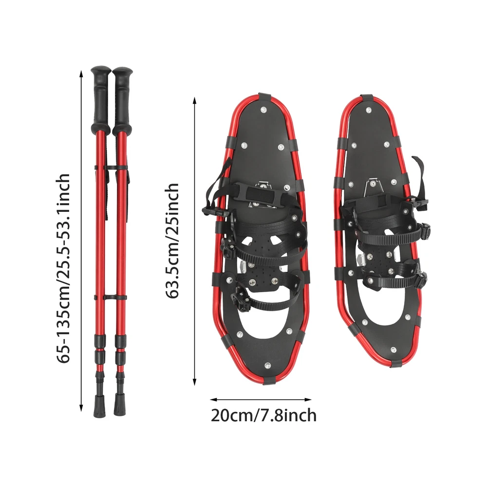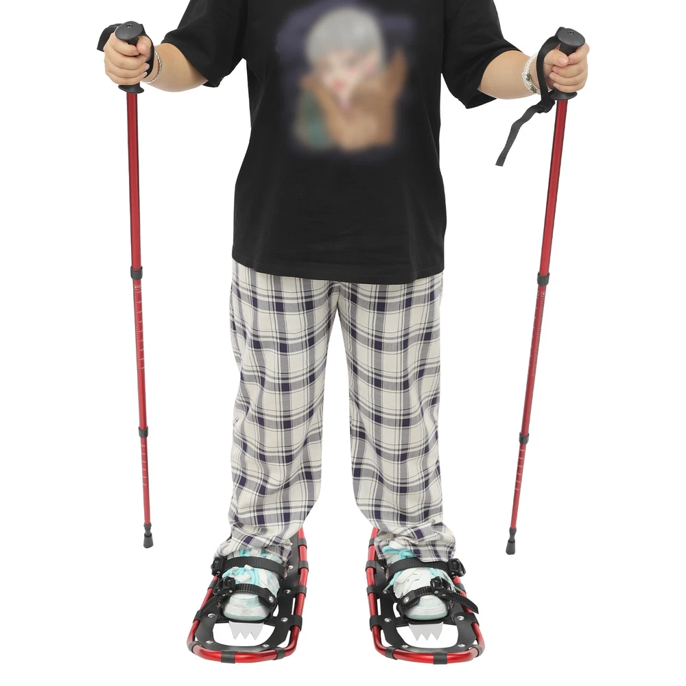 Specifications Color: Red+ Black Style: Modern Material: PE, Aluminum, Stainless Steel Process: Anodic Oxidation Sport Type: Skiing Mount Type: Floor Standing Low Temperature Resistance: -40°C/-40°F Load Capacity: About 50-100kg/110-220lbs(Including Anything Carried by the User and Loads of Snowshoe Walking Equipment) Fit Shoe Size: 35-45EUR Snowshoes Size: 63.5*20cm/25*7.8in Adjustable Trekking Poles Range: 65-135cm/25.59-53.1in Package Size: 67*25*14cm/26.38*9.84*5.51in Gross Weight: 3.65kg/8.05lbs Net Weight: 3kg/6.61lbs Package Included 1Pair* Snowshoes 1Pair* Trekking Poles 1* Carrying Bag Other Accessories for Use 25 Inch Snowshoes, Snowshoes& Adjuatable Trekking Poles, for Adults Men Women Description Good skiing equipment can bring you the ultimate skiing experience. Our snowshoes are made of stable and reliable design and materials to ensure your safety and comfort, and they are easy to put on and take off. The matching height-adjustable trekking poles can increase stability and enhance skiing safety. Whether you are a beginner or an experienced skier, it can meet your needs. Take it with you and have a great time skiing with your friends! Key Features Build to Last: The product is made of premium PE, aluminum, and stainless steel and adopts an anodic oxidation process, which is impact- resistant , low-temperature resistant , and not easy to wear and deform, ensuring long-term use. Stability and Safety: High-strength serrated claw provides better anti-slip effects, strong traction and grip in the snow, and improved skiing safety. Lightweight&Easy to Put Snowshoes: The snowshoes are made from a lightweight yet strong aluminum frame, ergonomically designed to ensure comfortable wearing and smooth, flexible skiing on snow. The double ratchet fasteners easily adapt to most footwear, making them easy to put on and take off. Adjustable Trekking Poles: The 3-section telescopic poles can be adjusted in the range of 25.59-53.1in, which helps you to maintain balance and makes your skiing more convenient and safe. Good Load-bearing: The premium materials and sturdy structure endow the product with a good load-bearing capacity of up to 110-220 lbs, which fits most people's weights. Infinite Joy: In winter, grab a few friends with you to start a skiing battle and enjoy fast sliding on the snow slope, which will greatly enhance the relationship and deepen the friendship. Nice Gift: With its practicality and beautiful appearance, this product is an ideal holiday gift for colleagues, family, and friends. Easy to Carry and Store: The practical carrying bag can store snowshoes, trekking poles, and other accessories, allowing you to carry them for outdoor skiing with ease. Good Customer Service: We stand behind all our guests and look forward to assisting you with your purchase. It is our pleasure to answer your confusion and questions. The end of the story between us is not "we sell and you buy". Details Practical Handle & Wrist Strap: The ergonomic handle makes it easy for you to grip the trekking pole. The wrist strap is designed so that it is not easy to fall off when you are using the poles. Snowshoes Straps: They make your shoes firmly fixed on the deck, and not easy to fall off. Snow Rest: It can increase the contact area between the tip of the pole and the ground, preventing the tip of the pole from sinking into the snow, effectively preventing the hiking pole from sinking, and helping you maintain balance and stability. Application It can be used in ski resorts, outdoor skiing programs, etc. It is suitable for men and women weighing 110-220 lbs(Including anything carried by the user and loads of snowshoe walking equipment). How to Put on the Snowshoes Put on your boots and place the ball of your foot in the center of the snowshoe binding. Tighten the straps on the toes. Adjust the straps. Don't let your feet get too far forward or too far back on the deck. Tighten the straps. The straps should feel snug and just right. (Not too tight, not too loose). Finally, pull to tighten the straps in your heels, and tighten the instep strap. Specifications Color: Red+ Black Style: Modern Material: PE, Aluminum, Stainless Steel Process: Anodic Oxidation Sport Type: Skiing Mount Type: Floor Standing Low Temperature Resistance : -40°C/-40°F Load Capacity: About 50-100kg/110-220lbs(Including Anything Carried by the User and Loads of Snowshoe Walking Equipment) Fit Shoe Size: 35-45EUR Snowshoes Size: 63.5*20cm/25*7.8in Adjustable Trekking Poles Range: 65-135cm/25.59-53.1in Package Size: 67*25*14cm/26.38*9.84*5.51in Gross Weight: 3.65kg/8.05lbs Net Weight: 3kg/6.61lbs Package Included 1Pair* Snowshoes 1Pair* Trekking Poles 1* Carrying Bag Other Accessories for Use Notes Please choose the correct snowshoe size for your weight. Please use this product within the weight-bearing range. Load is the total weight of the user plus whatever they are carrying, such as a backpack, equipment, etc. Please purchase professional helmets, and knee and elbow protectors, and take proper exercise safety measures before use. Please allow the slight color difference caused by the shooting light and 1-3cm error due to manual measurement, and make sure you do not mind before you order. Payment Delivery details Terms of sales About us Contact us Payment We accept ebay payment 。 Fees such as import duties, taxes are not included in the item price or shipping costs. These charges are the buyer's responsibility. Delivery details Shipping: 2-9 working days to: USA Terms of sales We maintain high standards of excellence and strive for hundred percent customer satisfaction. Feedback is very important to us. We hope that you contact us immediately before you give neutral or negative feedback, so that we can address your concerns. It is impossible to address issues if we do not know about them! About us Your satis faction is our ultimate goal. We work hard to earn your trust and future business. Our certified technicians have teste