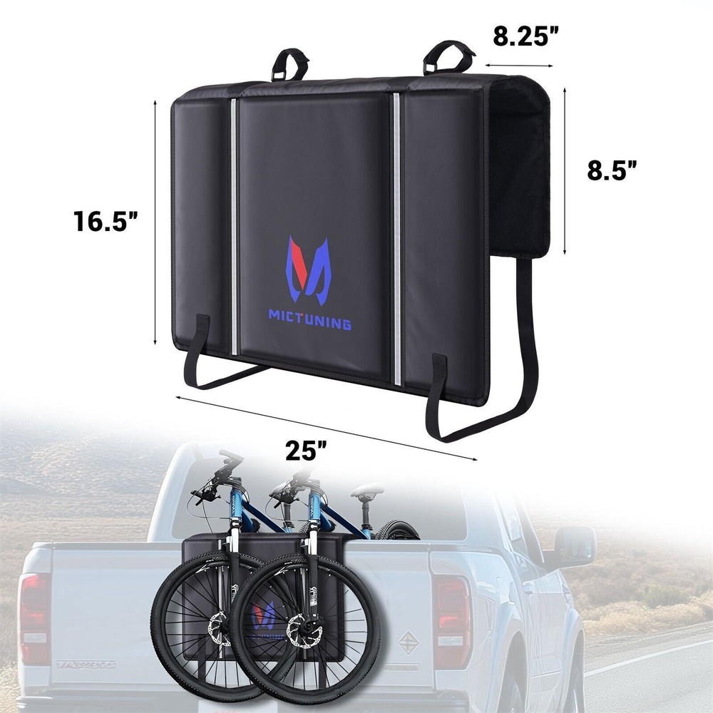 Hot Selling Parts UK Stock-Hot Sale US--LED Rock Lights US--Light Strip US--Swtich Panel US HOT SALE 25-inch Wide Tailgate Pad 2-Bike Pickup Truck Bed Tailgate Pad Protector Cover MICTUNING Tailgate Bike Pad for Mountain Bike, Secure 2 Bikes on Truck, with Reflective Strips and Tool Pocket, for Outdoor Bicycle Transportation Features & Details: 1. Secure Transport for Up to 2 Bikes - Our 25"L x 16.5"H x 8.25"W tailgate pad features adjustable straps that hold up to 2 bikes firmly in place, protecting both your truck and your bikes from scratches or damage during transport 2. Built for All Weather Conditions - Made from 600D PVC, the bike pad's waterproof and abrasion-resistant outer layer protects against the elements. The soft flannelette inner layer, combined with a thick shock-absorbing pad, ensures your bikes stay safe and steady on bumpy roads 3. Enhanced Safety with Reflective Strips - High-visibility reflective strips improve safety during nighttime or low-light trips, making your truck easily noticeable to other drivers 4. Tool Pocket on the Back - Keeps your repair tools and small accessories organized and easily accessible, ensuring you're always prepared for your outdoor adventures 5. Easy and Universal Installation - Designed to fit all pickup truck tailgates, the bike pad installs effortlessly—just position it on the tailgate and secure it with the 2 adjustable belts for a snug fit Payment Delivery details Terms of sales About us Contact us Payment - We accept internet transfer, bank deposit and all major credit cards through Payoneer. - If you want to delay the payment due to financial issue, please contact us via eBay message within 3 days. Delivery details - ONLY ship to Payment shipping address. Please leave detail address in the order. - As for PR / HI / GU states, please type in "US" on the country blank. - Expedited Shipping is Available, please contact us for more shipment service and postages if needed. Terms of sales International Buyers – Please Note: Import duties, taxes and charges are not included in the item price or shipping charges. These charges are the buyer's responsibility. Please check with your country's customs office to determine what these additional costs will be prior to bidding/buying. When you receive item damaged, defective, not as described or wrong item, please email us with pictures within 48 hours. To resolve any problem better and faster: 1. All labels with clear words on the package are needed. 2. The real goods you received with packing details. 3. Different angles of the products and package to show the problem clearly. Please note we do not accept International Return (For customer who purchase via Global Shipping Program) About us Working Time: - Usually from 9:30 AM-18:00 PM, Monday to Saturday. - Off-duty on Weekends, and national vacations. - We are committed to solve all issues in a friendly and satisfactory manner. - Thanks for your supporting. Your good feedbacks and product reviews are much appreciated. Contact us - Anything needed help, please contact us via message before opening a request/case, we'll soon reply you. - We usually reply emails in 2 business days. So if you have any product issues needed help in urgent, attach us clear pictures to show them, which better help to solve your problem.