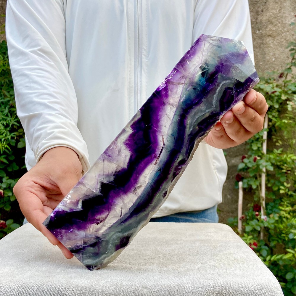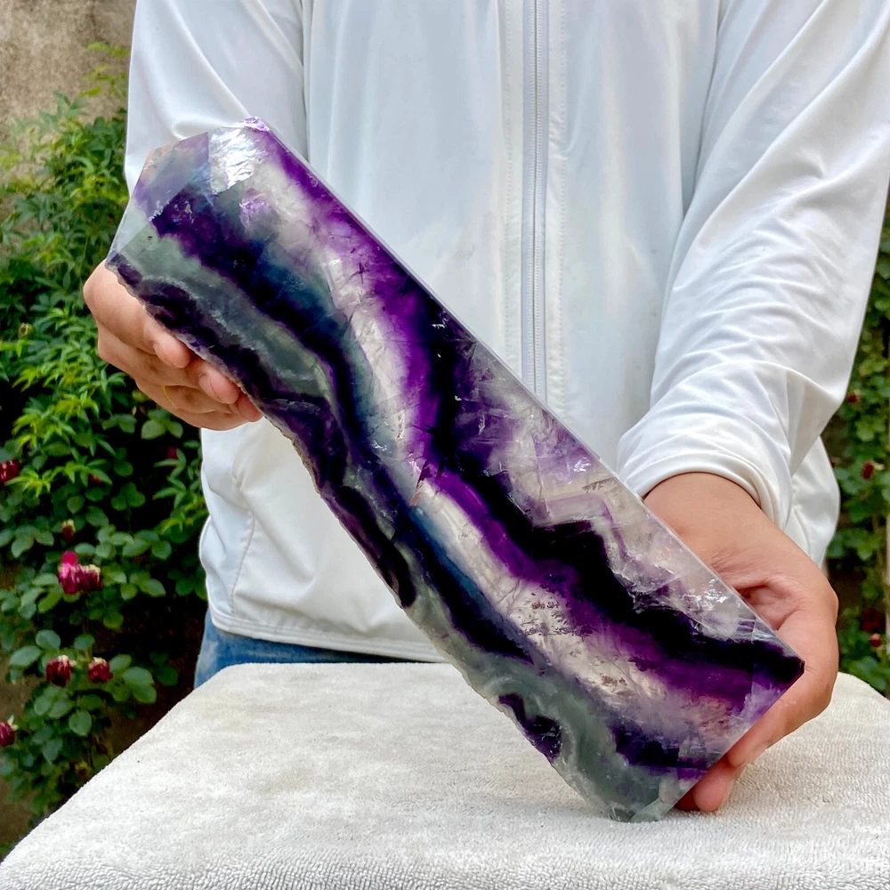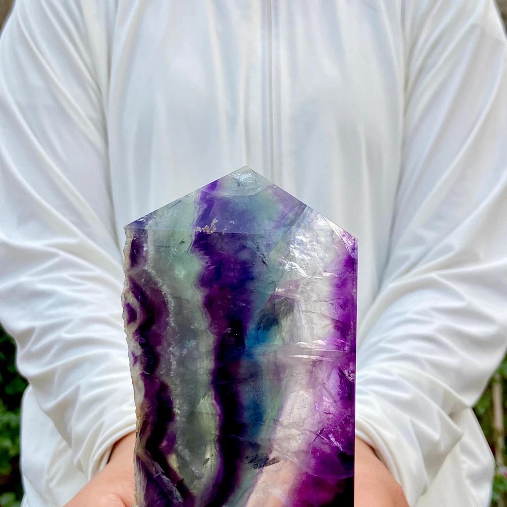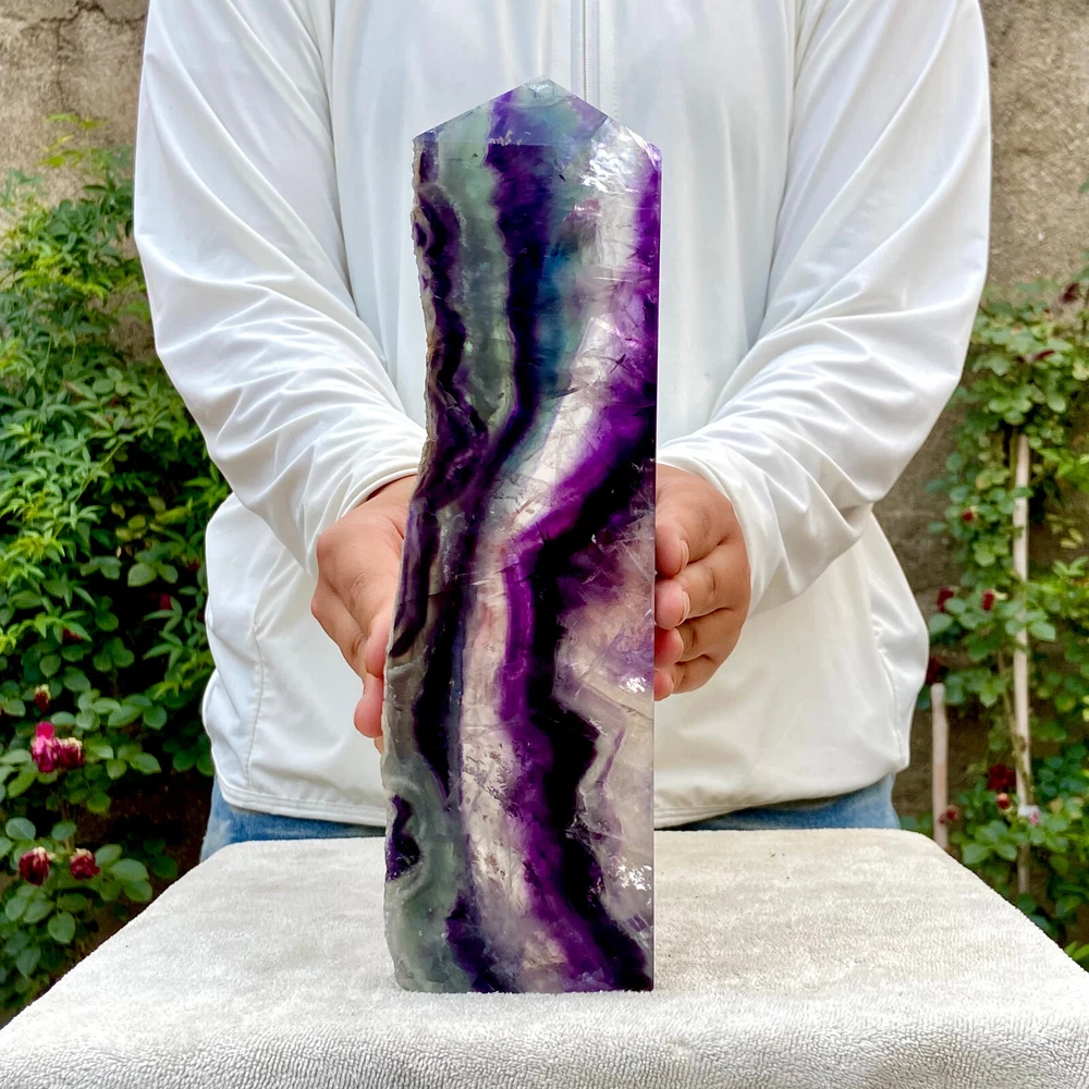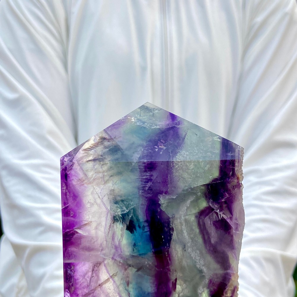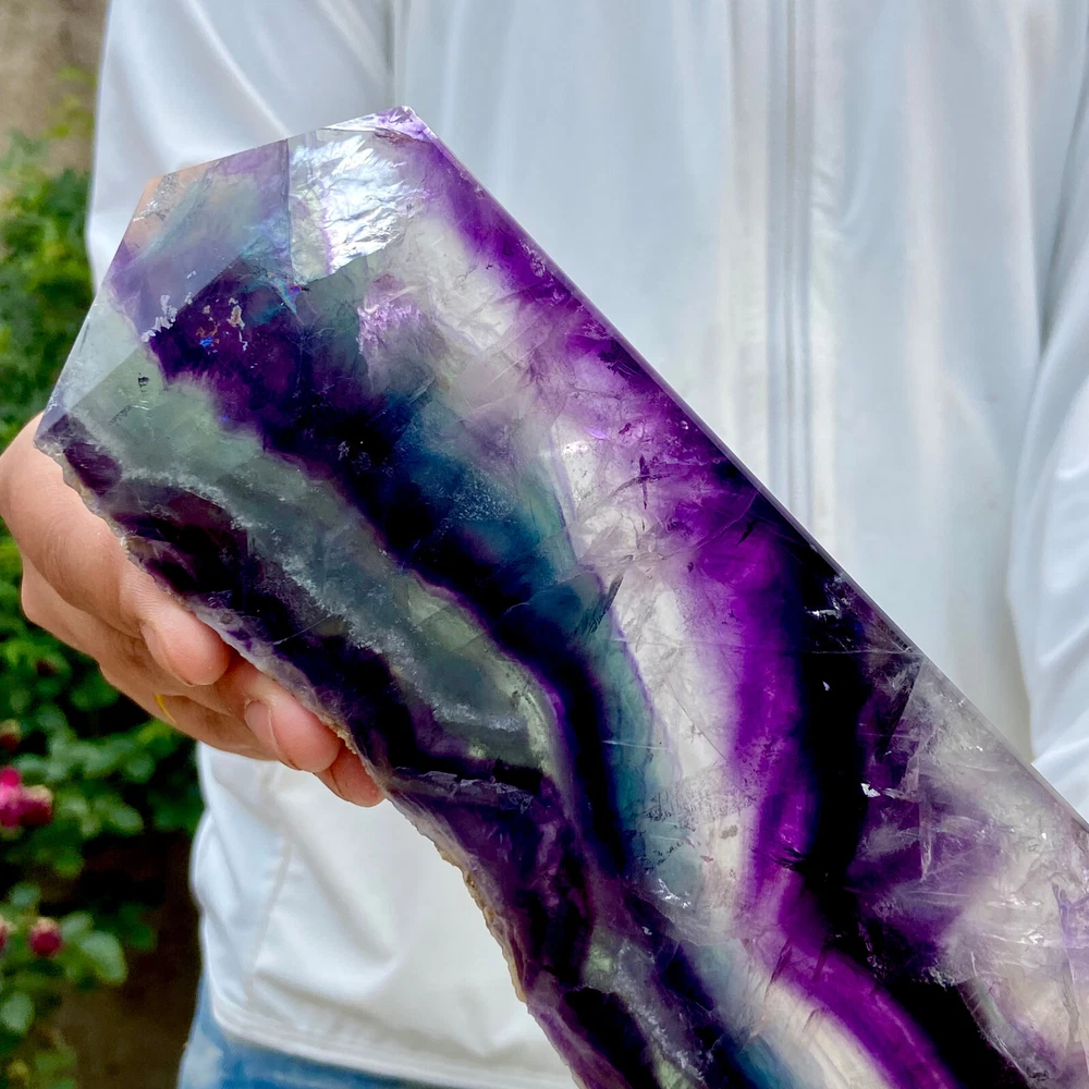 2.5LB Natural Rainbow Fluorite Obelisk Crystal Wand for Healing and Energy