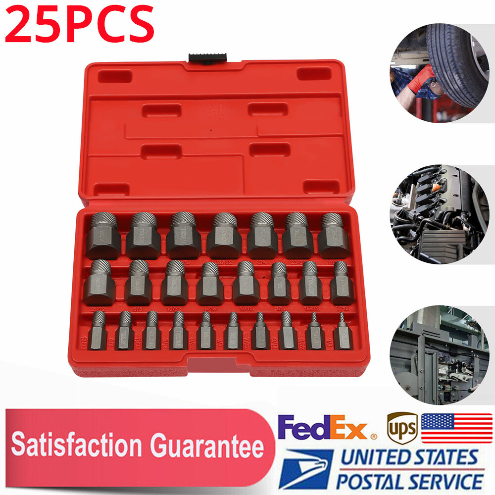 New 25 Pieces Damaged Bolt Remover Easy Out Stripped Bolt Extractor Socket Set Description The 25-piece multi-spline screw extractor set can meet your multi-size needs. The carrying case included in the package can make your storage and on-the-go carrying easier. The high-hardness chrome molybdenum steel and the fine hardening and sandblasting process will provide excellent quality assurance for the product. It will be your powerful helper for removing bolts and other accessories! Key Features High-quality Material: This product is made of high-quality chrome molybdenum steel, with high hardness, strong pressure resistance, high wear resistance, and long service life. Easy to Carry: The lightweight of 4.63 lbs and the easy-to-carry case allow you to easily carry it anywhere you want to go. High Precision: The precision machined multi-faceted active teeth with reverse helix design provide high precision and stronger clamping force. Easy to Clean: The simple structure and smooth surface make it easy to clean. Dust and stains can be easily wiped away with a rag. Multiple Size Options: The 25-piece set gives you more size options, allowing you to match more bolts and remove them quickly. Easy to Use: Size markings on the box allow you to quickly select the right extractor, saving your time and efforts. Anti-corrosion and Anti-rust : Hardened and sandblasted surfaces provide superior corrosion and rust protection, thus effectively extending the life of the product. Good Customer Service: Communication is the best way to solve problems. If you encounter any problem after purchase, please contact us in time before opening or unpacking the box. We will do our best to solve the problem for you. Details Hexagonal Head: The hexagonal head is designed to fit sockets and wrenches, allowing the product to apply maximum torque. Carrying Case: The right size groove in the carrying case can hold extractors stably. Application This product is suitable for removing damaged screws, bolts, nuts, studs, fittings, threaded tubes, and pins and is compatible with hand tools, power tools, or pneumatic tools. It is suitable for homeowners, carpenters, mechanics, artists, hobbyists, etc. Specification Material: Chrome Molybdenum Steel Color: Red, Silver Process: Hardening, Sandblasting Number of Pieces: 25 Assembly Required: No Size: 1/8"(3.2mm),5/32" (4mm), 3/16"(4.8mm), 7/32" (5. 5mm), 1/4" (6.3mm), 9/32" (7mm), 5/16" (8mm),11/32" (8.7 mm), 3/8"(9. 5mm), 13/32" (10.3mm), 7/16"(11.5mm), 15/32" (12mm), 1/2" (13mm), 17/32" (14mm), 9/16"(14. 5mm), 19/32 "(15.5mm), 5/8"(16mm), 21/32" (1 7mm), 11/16" (18mm), 23/32" (18.5 mm), 3/4"(19.5mm), 25/32"(20mm), 13/16"(21mm), 27/32" (22mm), 7/8" (23mm) Gross Weight: 2.1kg/ 4.63 lbs Net Weight: 2kg/ 4.41 lbs Product Size (Outer Box): 22.5*16*5cm/8.8*6.2*1.9in Package Size: 26*19*9 cm/10.24*7.48*3.54 in Package Included 1 * Multi Spline Screw Extractor Set Notes Please allow the slight color difference caused by the shooting light and the 1-3 cm error due to manual measurement, and make sure you do not mind before ordering. Payment Delivery details Terms of sales About us Contact us Payment We accept ebay payment 。 Fees such as import duties, taxes are not included in the item price or shipping costs. These charges are the buyer's responsibility. Delivery details Shipping: 2-9 working days to: USA Terms of sales We maintain high standards of excellence and strive for hundred percent customer satisfaction. Feedback is very important to us. We hope that you contact us immediately before you give neutral or negative feedback, so that we can address your concerns. It is impossible to address issues if we do not know about them! About us Your satis faction is our ultimate goal. We work hard to earn your trust and future business. Our certified technicians have tested each item before shipping. The unit comes with 1 year limited warranty on all manufacturing defects. a) If you receive a defective item, you may return it or ask for a discount. Please contact us within 14 days after you receive the package. b) What you returned must be intact and in its original packaging as re? u. Customer is responsible for shipping costs of the returned item. c) We will cover the cost of shipping back t with the shipping rate indicated in the registration page. We will send you a new unit or refund the full payment you paid. Thank you. Contact us Business Hour Business Hour: Monday To Friday: 8:30 AM to 5:00 PM (Beijing China time) Due to time zones, our reply to your questions may not be immediately. But within above working time, we will reply your email within 24 hours. If it's non-workdays, please kindly be patient and wait till Monday. Please contact us with ebay message. Please feel free to contact us if you have any questions. Monday To Friday: 8:30 AM to 5:00 PM (Beijing China time) Due to time zones, our reply to your questions may not be immediately. But within above working time, we will reply your email within 24 hours. If it's non-workdays, please kindly be patient and wait till Monday. Please contact us with ebay message. Please feel free to contact us if you have any questions. *Feature *Durable Material*Beautiful Appearance*Good Performance* Surface Finish* Made of high quality material Feature* ★Good Quality Guarantee★ 🔥Feature🔥 ❤Premium Material❤Long Service Life❤Creative Design❤ Note ★Good Quality Guarantee★ Tip If you have any question , please contact us *Features � Convenient Use,Unique Appearance,Reliable Quality� Year of manufacture 2014 Surface Finish 1 Made of high quality material Highlights Creative Design,Durable Material,Beautiful Appearance *Feature* Compact Design,Unique Appearance,High Reliability Style 1 Beautiful Appearance ~Feature~ AAAAA+ SELLER!!! * Feature *1 high performance🔥reliable quality🔥good stability Manufacturer Warranty 3 Years Characteristic Creative Design,Durable Material,Beautiful Appearance * Feature *1: AAAAA+ SELL