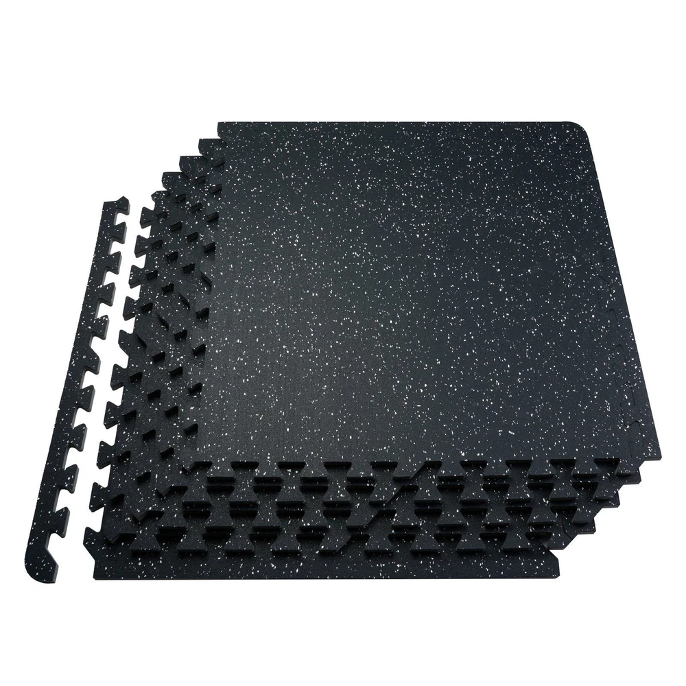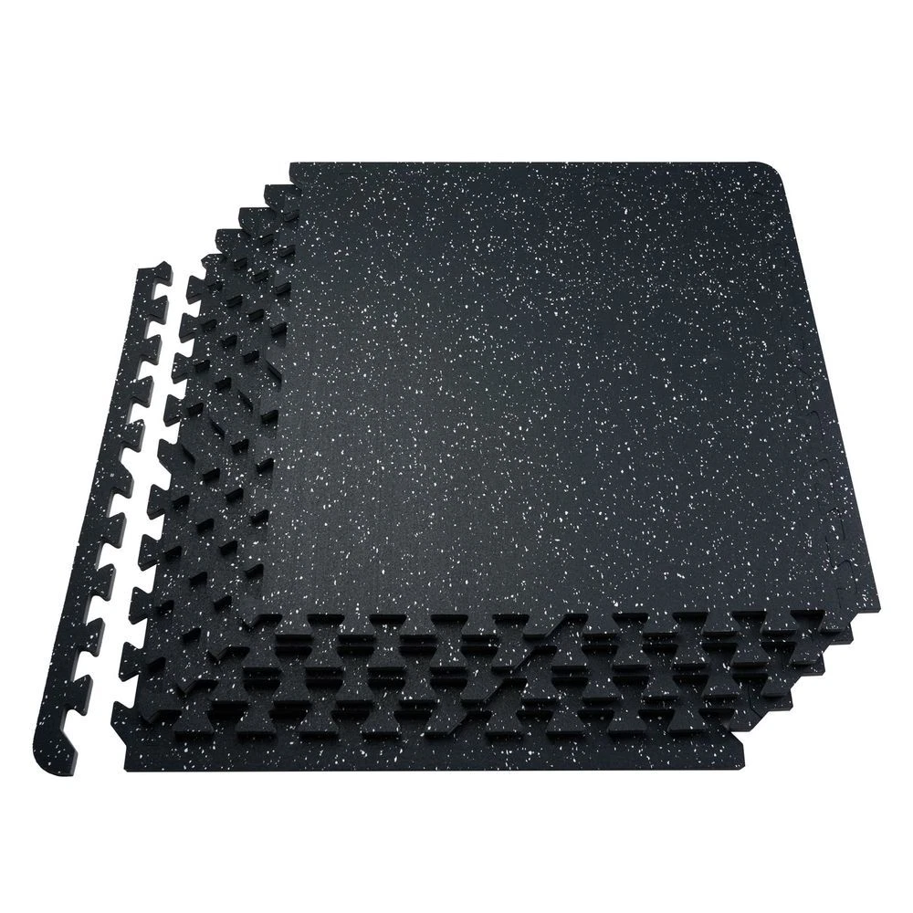 Features: Upgraded Material: The mat is made of 2-in-1 material, 0.56 inch rubber top with EVA foam ensures excellent slip resistance. This gym flooring for home gym design effectively absorbs shock and rebounds while providing enough grip for safe workouts. 100 Square Feet Coverage: The gym mats include 25 tiles and 50 borders, covering 100 sq ft. The workout mats can reduce the noise effectively, allowing you to work out upstairs without disturbing those below, making your fitness routine neighbor-friendly. Wear and Scratch Resistant: The surface is made of high-tensile rubber material, making it durable against wear and scratches. These rubber floor mats resist marks from foot traffic and are not easily damaged. Easy to Assemble: Our interlocking foam exercise mats provides quick and convenient assembly for your home fitness program. Easy Care: Enjoy easy maintenance with our cleanable gym floor mat; simply wipe or rinse the surface for quick and effortless cleaning, ensuring your rubber flooring tiles stay fresh and ready for your next workout.