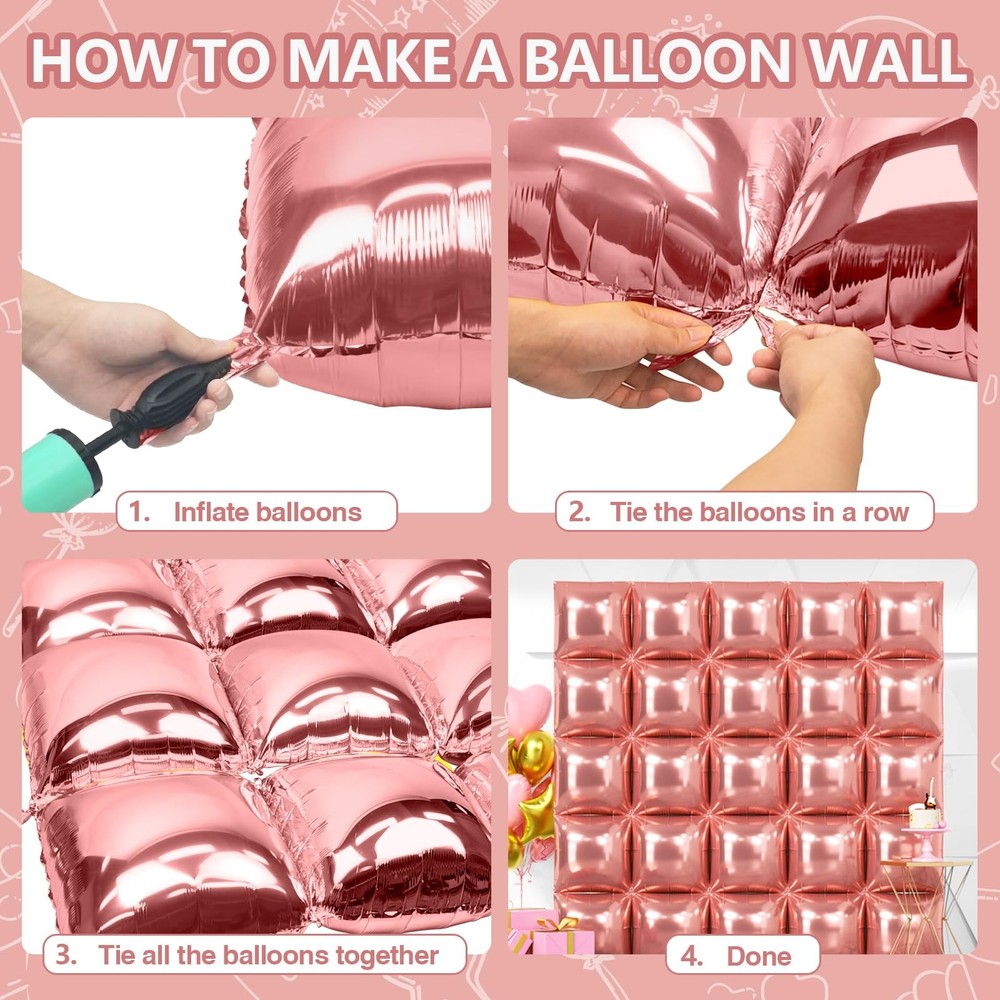 balloon wall square balloons balloon wall backdrop balloon backdrop wall square foil balloons square foil balloon wall checkered balloons checkered backdrop balloon backdrop foil balloons rose gold square foil balloons wall backdrop Valuable Package: You will receive 2 straws and 25pcs two sided rose gold square foil balloon wall. Each square balloon measures 19*19 inches before blowing and 13*13 inches after blowing. Our foil balloon wall backdrop is crafted from high quality mylar material. Compared to latex balloons, aluminum foil balloons can maintain their shape for a longer period of time and are less likely to leak or pop Premium Material: The double side rose gold balloon wall kit can maintain bright and shiny colors for a long time due to our unique production process, so your party will look fabulous from start to finish. Chrome rose gold foil square balloons shine brightly under the lights of the party, making the atmosphere of the party happy and active, and creating a memorable party Easy to Assemble DIY: This double sided square foil balloon wall backdrop can be freely tied up as needed to decorate party. They can be used to make balloon arches, balloon tunnels, or paired with latex balloon kits to decorate your birthday party, Christmas, New Year, graduation, Wedding, Anniversary, Independence Day bringing surprises and fun both indoors and outdoors Reusable and Recyclable: These double side rose gold foil square balloons wall decorations can be used to decorate indoor walls, floors and ceilings, as well as outdoor doorways. When the perfect party is over, separate the square balloons, then deflate them by inserting a straw into the inflator to recover and reuse them for your next event while also helping to reduce waste Considerate Service: Please do not inflate the square balloons beyond 85% to prevent any sudden bursting. If you encounter any issues with our rose gold double sided square foil balloon wall, please do not hesitate to reach out to us via email