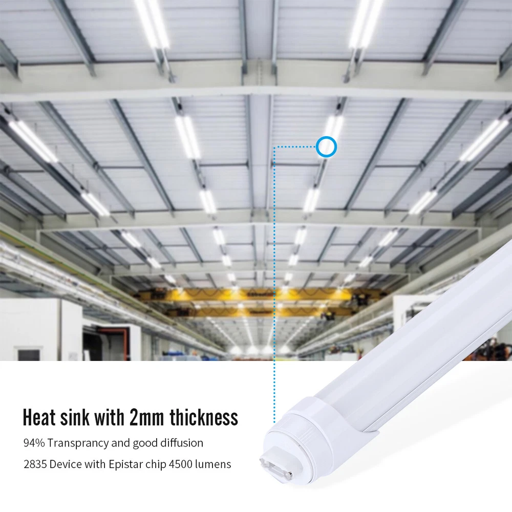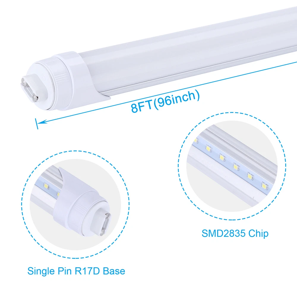 Product Description: Color: 6000~6500K Cool White TYPE: LED R17D HO Base Material: SMD2835 LED chips, Houseing: Aluminum+PC Power Source: AC Voltage: 110V Wattage: 45W Installation Method: R17D Dobule End Power Plug Format: A- US style Special Features: Input Voltage (VAC) :100-240VAC, Input Frequency (Hz) :50/60 Hz, Working Current: 0.35mA, Type: 2835, Base: R17D Life :L85 @ 50,000 hours, Usage: LED T8 Tube Indoor use only Assembled Diameter: 8 Feet Special note:Installation does not need ballast, if replace the original energy-saving tube, please delete the ballast Package: 25pack LED tube light 25Pack 8 Foot Led Shop Light 45W HO T8 Rotatable Base 8FT R17D 8' Led Tube Light Product Description: Color: 6000~6500K Cool White TYPE: LED R17D HO Base Material: SMD2835 LED chips, Houseing: Aluminum+PC Power Source: AC Voltage: 110V Wattage: 45W Lumen:5400LM Installation Method: R17D Dobule End Power Plug Format: A- US style Special Features: Input Voltage (VAC) :100-240VAC, Input Power (W): 45W Input Frequency (Hz) :50/60 Hz, Working Current: 0.35mA, Type: 2835, Base: R17D Life :L85 @ 50,000 hours, Usage: LED T8 Tube Indoor use only Assembled Diameter: 8 Feet Special note:Installation does not need ballast, if replace the original energy-saving tube, please delete the ballast Package: 25pack R17D LED tube light Payment Delivery details Terms of sales About us Contact us Payment 1.We only accept payment by Paypal. 2.If you pay by paypal with E-check, it normally takes 5 business days to clear, Once your E-check payment clears, your item will be dispatched within 1-2 working days. 3.Payment must be received within 7 days after the auction ended. Delivery details 1.All orders ship within 24 hours after receiving your payment. 2. Fedex shipping from our US warehouse, takes about 3-5business days for delivery. 3.Please verify your address during checkout. We are not responsible for any wrong or undeliverable addresses. Terms of sales We strive to ensure 100% satisfaction for each and every one of our customers. we offer a 30-day 100% money-back guarantee on all eBay orders. If your item isn't just as you wished, simply send it back to us and we'll refund or replace your item. Please note that all returns must be authorized by our Customer Service department. please contact us though message first if you have any problem . About us 1.Our working time is Monday to Friday. 9.30-18.30 BeiJing time am. 2.We will reply you within 24 hours(1work days). 3.We are always been trying to provide best service and reliable products for every customer. Contact us 1. If you are dissatisfied for any reason, please do not be quick to leave negative/neutral feedback. We work hard to make sure EVERY CUSTOMER 100% SATISFIED and resolve any problem for you and always leave positive feedback to all our customers. 2. If you are satisfied with the product you received,please leave us positive feedback and 5 scores DSR. Model 8FT V Shaped Modified Item No Custom Bundle No Lumens 5400LM Type LED Bulb Wattage 45W MPN Does Not Apply Item Length 8FT Brand Unbranded Bulb Shape T8 R17D Manufacturer Warranty 3 year warranty Bulb Shape Code R17D Light Color Cool White Bulb Life Hours 50,000Hours Output Voltage 85-277V Energy Star A+++ LED Chip Code 2835 Material Aluminum IP Rating IP54 Lighting Technology LED Features Energy Saving, Lead-Free (RoHS), Heat Resistant EC Range A+++ - G Voltage 110V Finish Frost Color Temperature 6000k-6500k