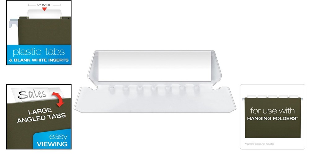 25-Pack Clear Hanging File Folder Tabs with Blank Inserts for Easy Organization