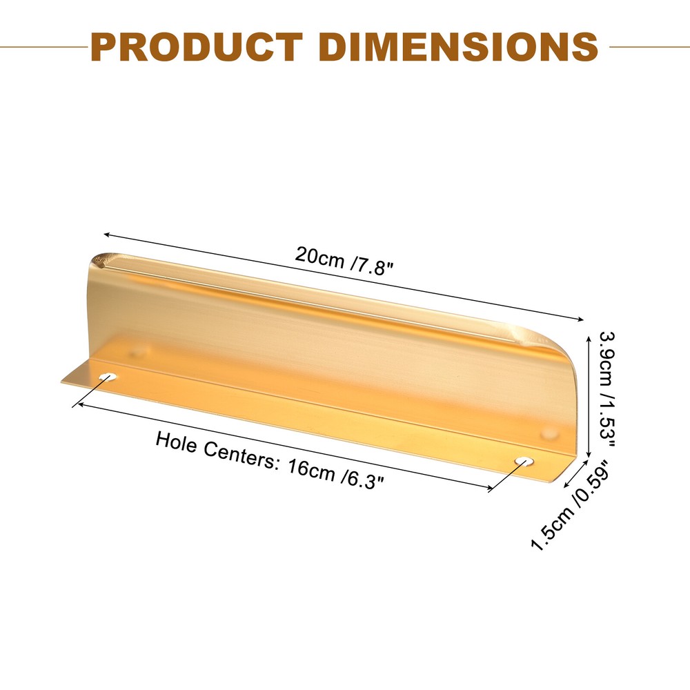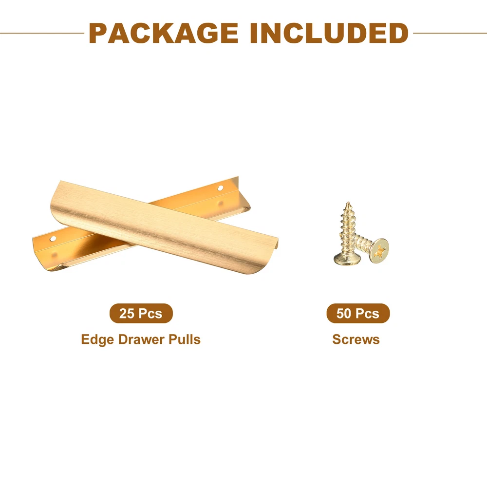 Document Advantage:Made from aluminum material, multi-layer plating, smooth surface, easy to clean, not easy to rust, not easy to fade.The curved design without sharp-edged, does not easily hurt your hand and leaves out your fingerprint.Use a screwdriver to tighten the screw into pre-drill holes and complete installation within seconds.Widely used for kitchen cabinet, bathroom closet, bedroom wardrobe and drawers.Specification:Material: aluminumColor: GoldSize: 20cm(L) x 4cm(W) x 1.7cm(H)/7.8inch x 1.57inch x 0.67inchPackage Included: 25Pack Edge Drawer PullsNote: Manual measurement, please allow slight errors on size. The color may exist a slight difference due to different screen displays. 25 Pack Finger Edge Pull Furniture Drawer Handles 6.3" Hole Center Gold Advantage: Made from aluminum material, multi-layer plating, smooth surface, easy to clean, not easy to rust, not easy to fade. The curved design without sharp-edged, does not easily hurt your hand and leaves out your fingerprint. Use a screwdriver to tighten the screw into pre-drill holes and complete installation within seconds. Widely used for kitchen cabinet, bathroom closet, bedroom wardrobe and drawers. Specification : Material: aluminum Color: Gold Size: 20cm(L) x 4cm(W) x 1.7cm(H)/7.8inch x 1.57inch x 0.67inch Package Included: 25Pack Edge Drawer Pulls Note: Manual measurement, please allow slight errors on size. The color may exist a slight difference due to different screen displays. Hot Item Payment 1.We accept eBay payment . 2.Payment must be received within 7 business days of auction closing. Shipping 1.We ship to your eBay or Paypal address. Please make sure your eBay and Paypal address is correct before you pay. 2.Items will be shipped within 1-3 business day when we received payment. 3.Delivery time depends on destination and other factors.