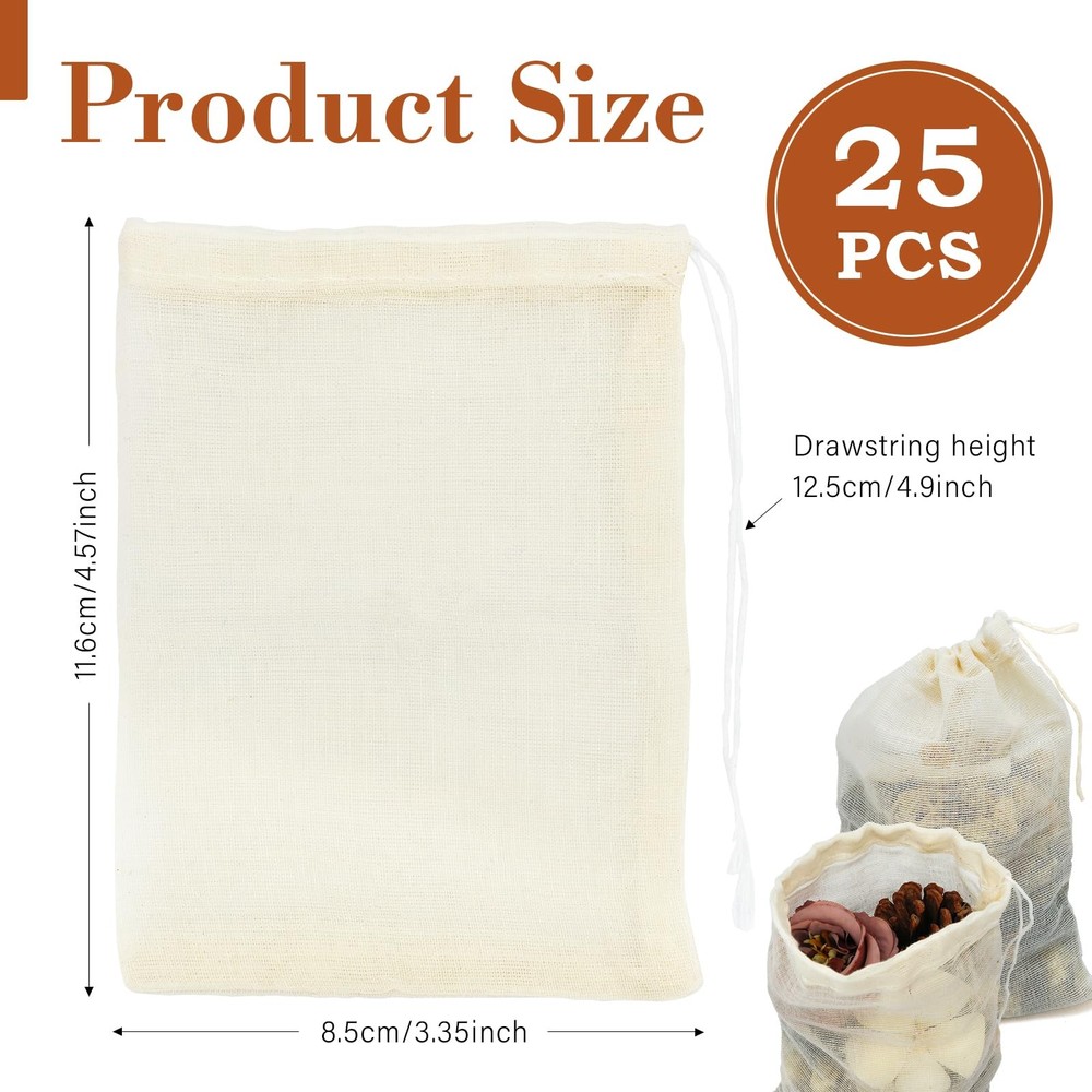 25-Pack Small Cotton Muslin Drawstring Bags for Jewelry & Gifts