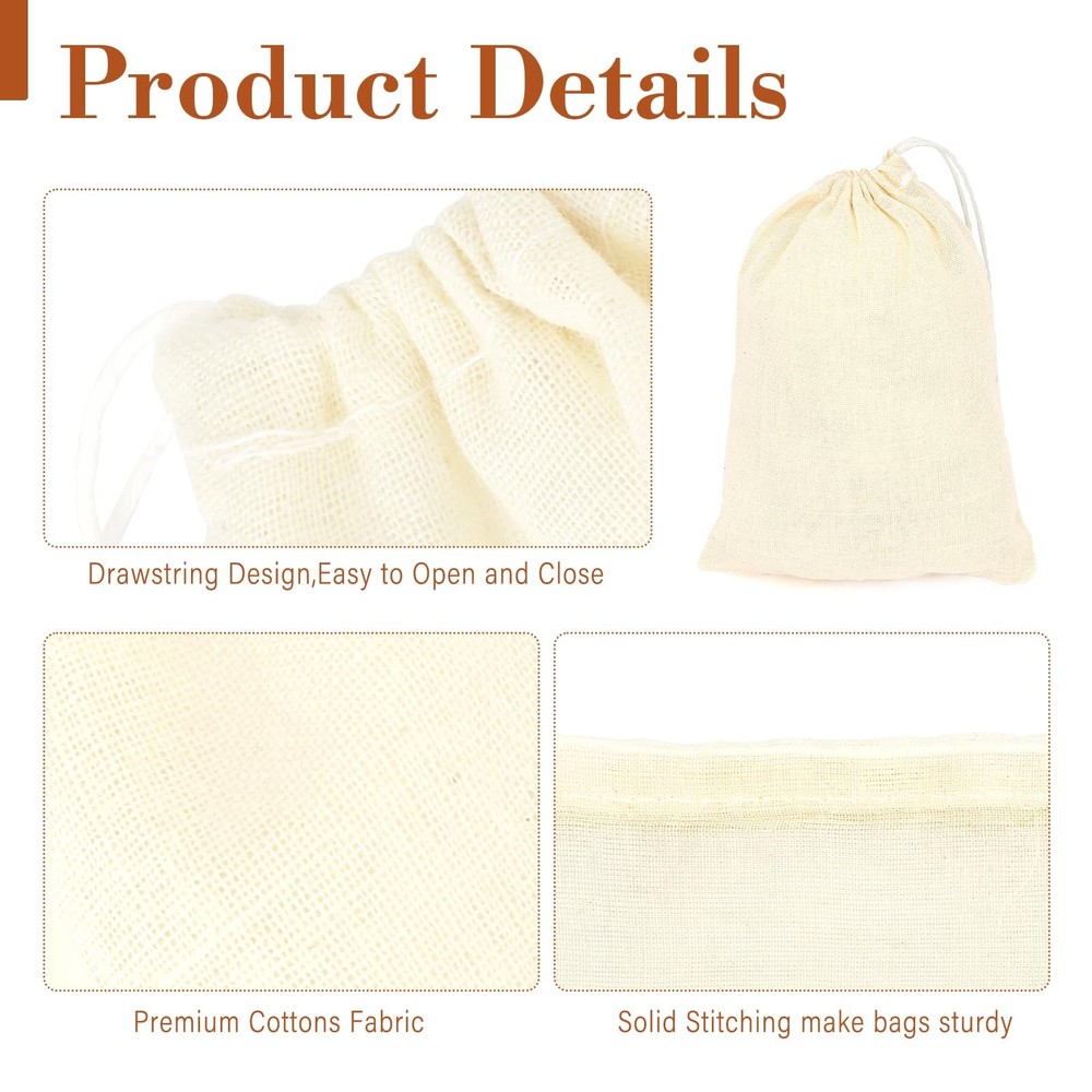 Product Features Quality Material: This cotton small bags with drawstring is made of high quality soft cotton Drawstring design for a better storage Easy to use,reusable and durable, safety and health bags Suitable Size: 3X4inch/8x10cm Wide Application: These small cloth bags can be applied to hold crafts, candies, coffee bean, tea leaf, small gifts, jewelry, candle, make up,soap, dried flowers and other little items. Nice favor bags to personalize and give as gifts to family friends teacher men women Good as small gift bags, candy bags, jewelry bags, bracelet bag, small trinket bags, empty sachet bags, birthday party goody bags, wedding thank you bags, bridal shower gift bag, bachelorette party gift bags, hangover bags. Package Includes: 25 x cotton muslin bags Package Included: You will get 25 Pcs small muslin bags, the colors is natural color and Enough quantity for you and your family to use a long time. This sachet bags not only as gifts bags, but also can be used for spice bags, soup bags, tea bags, storage bags etc, it's essential to well living. Premium Material: This small drawstring bags is made of premium cotton material, is washable, durable and reusable, soft and lightweight, safe and non-toxic. This cotton bags is very suitable for party wedding home Storage. Suitable Size: This jewelry bags drawstring with drawstring is approx. 3x4"/8x10cm, perfect to keep on hand, easy for you to carry on a travel, they are also big enough to store jewelry, candys, toys, herbs, tea, dried herbs, crafts, fruit or spices. Tiny holes on the surface of cotton muslin bags allow air to circle. Drawstring Design: This sachet bags is design with two drawstring, you can just pull the string, this contents of bags will not fall off easily. You can also paint all kinds of pattern on the bag, make your favorite bag that you want. Multi-Purpose: These small cloth bags can be applied to hold crafts, candies, coffee bean, tea leaf, small gifts, jewelry, candle, make up,soap, dried flowers and other little items. Also you can draw patterns to make your own special DIY bags for party favors,like weddings, birthday parties,easter, christmas,thanksgivings, graduations,anniversaries, baby showers, and birthday parties and other special occasions.