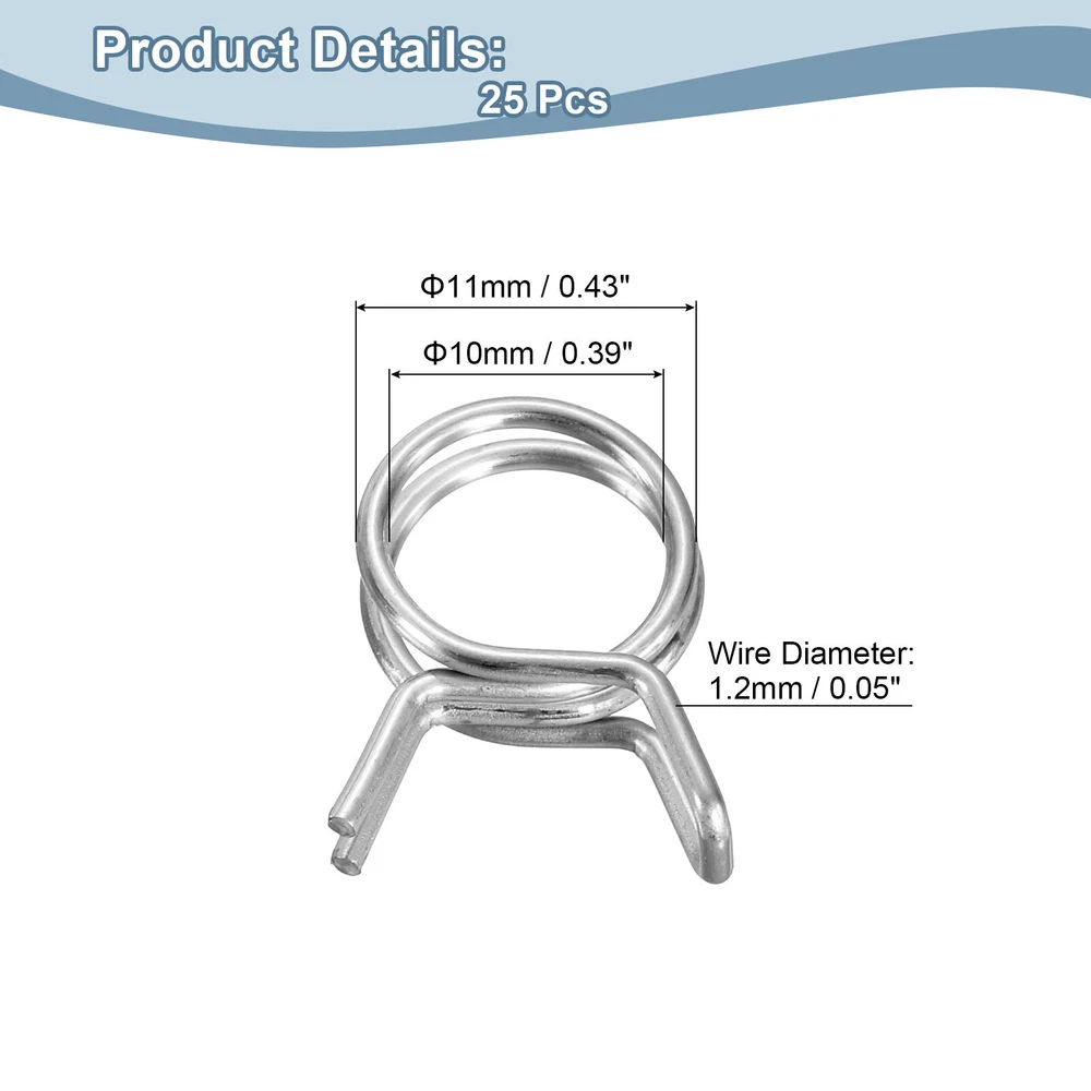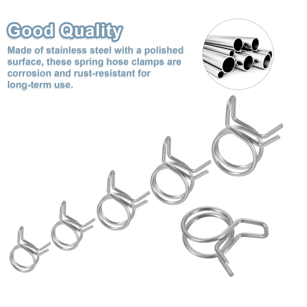 Document Description: Material: Made of stainless steel with a polished surface, these spring hose clamps are corrosion and rust-resistant for long-term use.Design: The spring hose clamps are designed with double-wound wire, which can spread the clamping force around the hose, and is more cost-effective than single-wire clamps.Easy to Use: These spring hose clamps are very easy to use, just use pliers to open the clamp and easily place it on the pipe.Wide Application: Spring hose clamps are widely used in automotive, agricultural, factory, and construction industries. Mainly used for fastening interfaces, they can firmly lock power equipment fuel lines, air hoses, water pipes, silicone hoses, vacuum hoses, automobile fuel lines, motorcycle air pipes, etc.Specification:Material: Stainless SteelFinish: PolishedInner Diameter: 10mm / 0.39inchMaximum Open Inner Diameter: 11mm/0.43inchWire Diameter: 1.2mm / 0.05inchPackage Content: 25pcs x Spring Hose Clamp Double Wire Spring Hose Clamp, 20pcs 304 Stainless Steel 6mm Spring Clips USD 7.78 Double Wire Spring Hose Clamp, 10pcs 304 Stainless Steel 5.5mm Spring Clips USD 6.71 Double Wire Spring Hose Clamp, 20pcs 304 Stainless Steel 3.5mm Spring Clips USD 7.49 Spring Hose Clamp, 50pcs 65Mn Steel 18mm Low Pressure Air Clip, Zinc Plated USD 21.04 Spring Hose Clamp, 10pcs 65Mn Steel 9mm Low Pressure Air Clip, Nickel Plated USD 7.03 Fuel Line Hose Clips, 5pcs 55mm 65Mn Steel Tubing Spring Clamps USD 8.67 25Pcs 10mm/0.39inch Double Wire Spring Hose Clamp Description: Material: Made of stainless steel with a polished surface, these spring hose clamps are corrosion and rust-resistant for long-term use. Design: The spring hose clamps are designed with double-wound wire, which can spread the clamping force around the hose, and is more cost-effective than single-wire clamps. Easy to Use: These spring hose clamps are very easy to use, just use pliers to open the clamp and easily place it on the pipe. Wide Application: Spring hose clamps are widely used in automotive, agricultural, factory, and construction industries. Mainly used for fastening interfaces, they can firmly lock power equipment fuel lines, air hoses, water pipes, silicone hoses, vacuum hoses, automobile fuel lines, motorcycle air pipes, etc. Specification: Material: Stainless Steel Finish: Polished Inner Diameter: 10mm / 0.39inch Maximum Open Inner Diameter: 11mm/0.43inch Wire Diameter: 1.2mm / 0.05inch Package Content: 25pcs x Spring Hose Clamp Hot Item Steel Band Clamp 23mm Hose Tube Spring Clips Clamp Black Manganese Steel 20Pcs USD 18.11 Fuel Line Hose Clips, 100pcs 8mm 65Mn Steel Tubing Spring Clamps USD 11.26 Double Wire Spring Hose Clamp, 20pcs 304 Stainless Steel 5mm Spring Clips USD 7.49 Fuel Line Hose Clips, 20pcs 13mm 65Mn Steel Tubing Spring Clamps USD 7.22 Double Wire Spring Hose Clamp, 50pcs 304 Stainless Steel 10mm Spring Clips USD 11.2 Payment We accept eBay payment. Please do not email us to ask for other payment option. We appreciate prompt payment and look forward to your business in the future. Unpaid item will be filed without receiving payment in 7 days from listing ended. Shipping Usually we ship your order out within 24 hours in business day. For shipping and handling charges (S&H) for specific item, please refer to the item listing page for more details. Please make sure your shipping address is correct. We are not responsible for any loss in transit if a wrong address is provided. Return Policy Returns for exchange are permitted and must be initiated by the buyer within 30 days upon receipt. If you would like to return your product(s) for repair / replacement / refund, please kindly contact our customer service representatives via email for an authorized RMA number. Your returned product(s) will not be processed without a completed RMA. About Us We are continually expanding our product selection to better serve your need. We look forward to providing the best sevice to you - our dear customers, so take a look around our store and find the product that you want. You can put your trust in us! If you need any help or have any suggestions, please don't hesititate to contact us anytime , we will reply you within 24 hours and try the best to help you. Description Policy 25Pcs 10mm/0.39inch Double Wire Spring Hose Clamp Description: Material: Made of stainless steel with a polished surface, these spring hose clamps are corrosion and rust-resistant for long-term use. Design: The spring hose clamps are designed with double-wound wire, which can spread the clamping force around the hose, and is more cost-effective than single-wire clamps. Easy to Use: These spring hose clamps are very easy to use, just use pliers to open the clamp and easily place it on the pipe. Wide Application: Spring hose clamps are widely used in automotive, agricultural, factory, and construction industries. Mainly used for fastening interfaces, they can firmly lock power equipment fuel lines, air hoses, water pipes, silicone hoses, vacuum hoses, automobile fuel lines, motorcycle air pipes, etc. Specification: Material: Stainless Steel Finish: Polished Inner Diameter: 10mm / 0.39inch Maximum Open Inner Diameter: 11mm/0.43inch Wire Diameter: 1.2mm / 0.05inch Package Content: 25pcs x Spring Hose Clamp Double Wire Spring Hose Clamp, 20pcs 304 Stainless Steel 6mm Spring Clips USD 7.78 Double Wire Spring Hose Clamp, 10pcs 304 Stainless Steel 5.5mm Spring Clips USD 6.71 Double Wire Spring Hose Clamp, 20pcs 304 Stainless Steel 3.5mm Spring Clips USD 7.49 Spring Hose Clamp, 50pcs 65Mn Steel 18mm Low Pressure Air Clip, Zinc Plated USD 21.04 Spring Hose Clamp, 10pcs 65Mn Steel 9mm Low Pressure Air Clip, Nickel Plated USD 7.03 Fuel Line Hose Clips, 5pcs 55mm 65Mn Steel Tubing Spring Clamps USD 8.67 Hot Item Steel Band Clamp 23mm Hose Tube Spring Clips Clamp Black Manganese Steel 20Pcs USD 18.11 Fuel Line Hose Clips, 100pcs 8mm 65Mn Steel Tubing Spring Clamps USD 11.26 Double Wire Spring Hose Clamp, 20pcs 304 Stainles