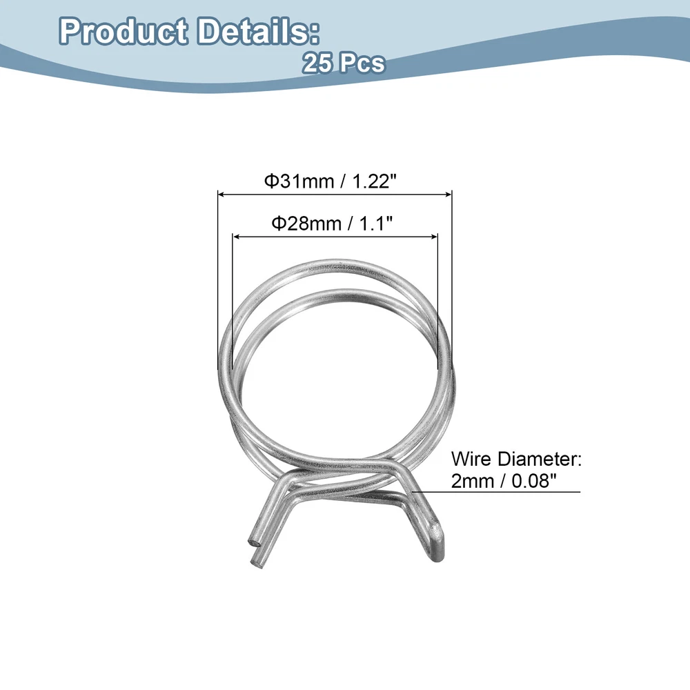 Document Description: Material: Made of stainless steel with a polished surface, these spring hose clamps are corrosion and rust-resistant for long-term use.Design: The spring hose clamps are designed with double-wound wire, which can spread the clamping force around the hose, and is more cost-effective than single-wire clamps.Easy to Use: These spring hose clamps are very easy to use, just use pliers to open the clamp and easily place it on the pipe.Wide Application: Spring hose clamps are widely used in automotive, agricultural, factory, and construction industries. Mainly used for fastening interfaces, they can firmly lock power equipment fuel lines, air hoses, water pipes, silicone hoses, vacuum hoses, automobile fuel lines, motorcycle air pipes, etc.Specification:Material: Stainless SteelFinish: PolishedInner Diameter: 28mm / 1.1inchMaximum Open Inner Diameter: 31mm/1.22inchWire Diameter: 2mm / 0.08inchPackage Content: 25pcs x Spring Hose Clamp Double Wire Spring Hose Clamp, 50pcs 304 Stainless Steel 10mm Spring Clips USD 11.2 Double Wire Spring Hose Clamp, 10pcs 304 Stainless Steel 5.5mm Spring Clips USD 6.71 Double Wire Spring Hose Clamp, 20pcs 304 Stainless Steel 5mm Spring Clips USD 7.49 Double Wire Spring Hose Clamp, 20pcs 304 Stainless Steel 3.5mm Spring Clips USD 7.49 Spring Hose Clamp, 50pcs 65Mn Steel 18mm Low Pressure Air Clip, Zinc Plated USD 21.04 Spring Hose Clamp, 10pcs 65Mn Steel 9mm Low Pressure Air Clip, Nickel Plated USD 7.03 25Pcs 28mm/1.1inch Double Wire Spring Hose Clamp Description: Material: Made of stainless steel with a polished surface, these spring hose clamps are corrosion and rust-resistant for long-term use. Design: The spring hose clamps are designed with double-wound wire, which can spread the clamping force around the hose, and is more cost-effective than single-wire clamps. Easy to Use: These spring hose clamps are very easy to use, just use pliers to open the clamp and easily place it on the pipe. Wide Application: Spring hose clamps are widely used in automotive, agricultural, factory, and construction industries. Mainly used for fastening interfaces, they can firmly lock power equipment fuel lines, air hoses, water pipes, silicone hoses, vacuum hoses, automobile fuel lines, motorcycle air pipes, etc. Specification: Material: Stainless Steel Finish: Polished Inner Diameter: 28mm / 1.1inch Maximum Open Inner Diameter: 31mm/1.22inch Wire Diameter: 2mm / 0.08inch Package Content: 25pcs x Spring Hose Clamp Hot Item Fuel Line Hose Clips, 100pcs 11mm 65Mn Steel Tubing Spring Clamps USD 12.35 Steel Band Clamp 10mm Hose Tube Spring Clips Clamp Black Manganese Steel 20Pcs USD 8.46 Double Wire Spring Hose Clamp, 20pcs 304 Stainless Steel 6mm Spring Clips USD 7.78 Steel Band Clamp 26mm Hose Tube Spring Clips Clamp Black Manganese Steel 10Pcs USD 12.49 Double Wire 9mm Fuel Line Hose Tube Spring Clips Clamp Zinc Plated 20Pcs USD 7.27 Payment We accept eBay payment. Please do not email us to ask for other payment option. We appreciate prompt payment and look forward to your business in the future. Unpaid item will be filed without receiving payment in 7 days from listing ended. Shipping Usually we ship your order out within 24 hours in business day. For shipping and handling charges (S&H) for specific item, please refer to the item listing page for more details. Please make sure your shipping address is correct. We are not responsible for any loss in transit if a wrong address is provided. Return Policy Returns for exchange are permitted and must be initiated by the buyer within 30 days upon receipt. If you would like to return your product(s) for repair / replacement / refund, please kindly contact our customer service representatives via email for an authorized RMA number. Your returned product(s) will not be processed without a completed RMA. About Us We are continually expanding our product selection to better serve your need. We look forward to providing the best sevice to you - our dear customers, so take a look around our store and find the product that you want. You can put your trust in us! If you need any help or have any suggestions, please don't hesititate to contact us anytime , we will reply you within 24 hours and try the best to help you. Description Policy 25Pcs 28mm/1.1inch Double Wire Spring Hose Clamp Description: Material: Made of stainless steel with a polished surface, these spring hose clamps are corrosion and rust-resistant for long-term use. Design: The spring hose clamps are designed with double-wound wire, which can spread the clamping force around the hose, and is more cost-effective than single-wire clamps. Easy to Use: These spring hose clamps are very easy to use, just use pliers to open the clamp and easily place it on the pipe. Wide Application: Spring hose clamps are widely used in automotive, agricultural, factory, and construction industries. Mainly used for fastening interfaces, they can firmly lock power equipment fuel lines, air hoses, water pipes, silicone hoses, vacuum hoses, automobile fuel lines, motorcycle air pipes, etc. Specification: Material: Stainless Steel Finish: Polished Inner Diameter: 28mm / 1.1inch Maximum Open Inner Diameter: 31mm/1.22inch Wire Diameter: 2mm / 0.08inch Package Content: 25pcs x Spring Hose Clamp Double Wire Spring Hose Clamp, 50pcs 304 Stainless Steel 10mm Spring Clips USD 11.2 Double Wire Spring Hose Clamp, 10pcs 304 Stainless Steel 5.5mm Spring Clips USD 6.71 Double Wire Spring Hose Clamp, 20pcs 304 Stainless Steel 5mm Spring Clips USD 7.49 Double Wire Spring Hose Clamp, 20pcs 304 Stainless Steel 3.5mm Spring Clips USD 7.49 Spring Hose Clamp, 50pcs 65Mn Steel 18mm Low Pressure Air Clip, Zinc Plated USD 21.04 Spring Hose Clamp, 10pcs 65Mn Steel 9mm Low Pressure Air Clip, Nickel Plated USD 7.03 Hot Item Fuel Line Hose Clips, 100pcs 11mm 65Mn Steel Tubing Spring Clamps USD 12.35 Steel Band Clamp 10mm Hose Tube Spring Clips Clamp Black Manganese Steel 20Pcs USD 8.46 Double Wire Spring Hose C