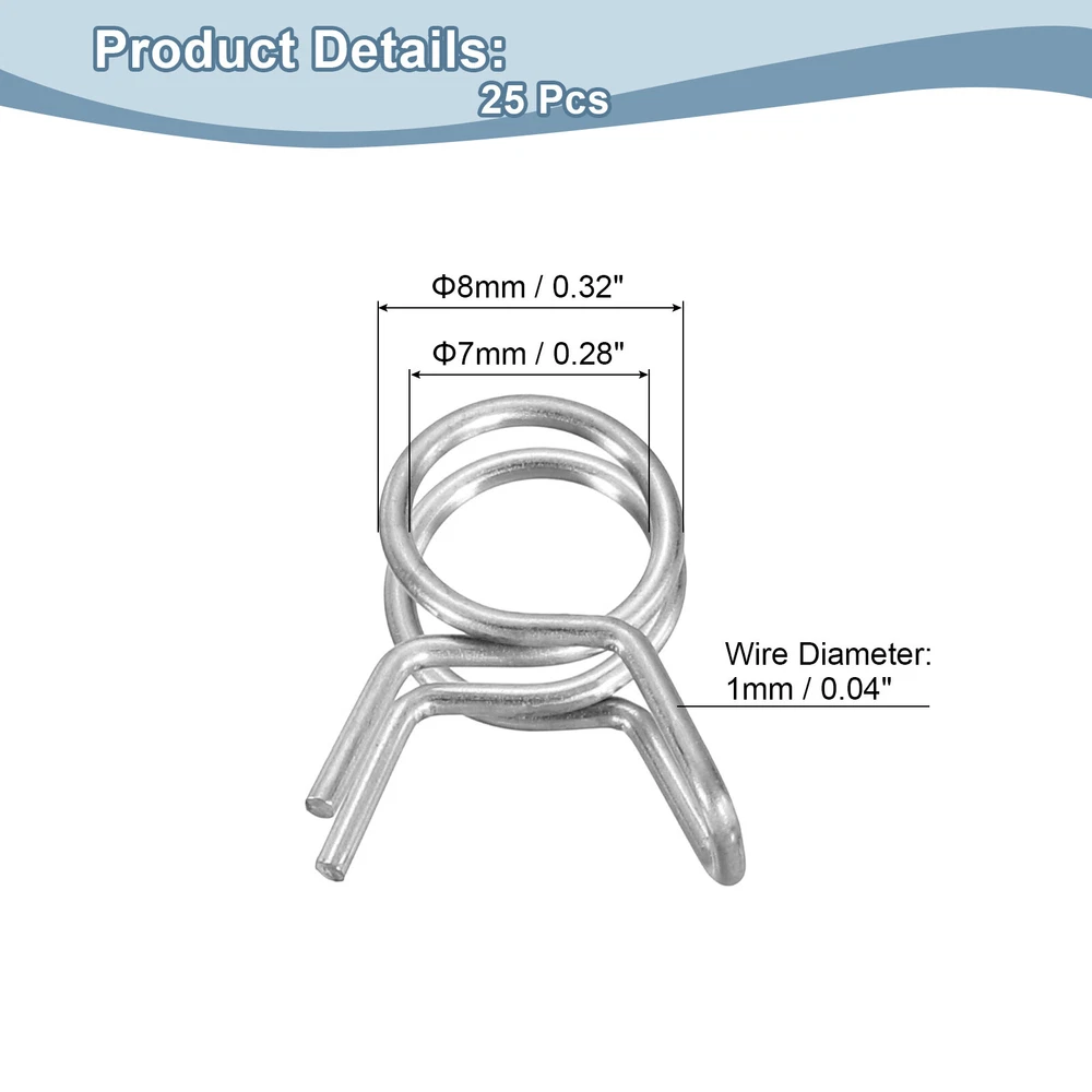 Document Description: Material: Made of stainless steel with a polished surface, these spring hose clamps are corrosion and rust-resistant for long-term use.Design: The spring hose clamps are designed with double-wound wire, which can spread the clamping force around the hose, and is more cost-effective than single-wire clamps.Easy to Use: These spring hose clamps are very easy to use, just use pliers to open the clamp and easily place it on the pipe.Wide Application: Spring hose clamps are widely used in automotive, agricultural, factory, and construction industries. Mainly used for fastening interfaces, they can firmly lock power equipment fuel lines, air hoses, water pipes, silicone hoses, vacuum hoses, automobile fuel lines, motorcycle air pipes, etc.Specification:Material: Stainless SteelFinish: PolishedInner Diameter: 7mm / 0.28inchMaximum Open Inner Diameter: 8mm/0.32inchWire Diameter: 1mm / 0.04inchPackage Content: 25pcs x Spring Hose Clamp Double Wire Spring Hose Clamp, 20pcs 304 Stainless Steel 6mm Spring Clips USD 7.78 Double Wire Spring Hose Clamp, 10pcs 304 Stainless Steel 5.5mm Spring Clips USD 6.71 Double Wire Spring Hose Clamp, 20pcs 304 Stainless Steel 5mm Spring Clips USD 7.49 Double Wire Spring Hose Clamp, 20pcs 304 Stainless Steel 3.5mm Spring Clips USD 7.49 Spring Hose Clamp, 50pcs 65Mn Steel 18mm Low Pressure Air Clip, Zinc Plated USD 21.04 Fuel Line Hose Clips, 20pcs 13mm 65Mn Steel Tubing Spring Clamps USD 7.22 25Pcs 7mm/0.28inch Double Wire Spring Hose Clamp Description: Material: Made of stainless steel with a polished surface, these spring hose clamps are corrosion and rust-resistant for long-term use. Design: The spring hose clamps are designed with double-wound wire, which can spread the clamping force around the hose, and is more cost-effective than single-wire clamps. Easy to Use: These spring hose clamps are very easy to use, just use pliers to open the clamp and easily place it on the pipe. Wide Application: Spring hose clamps are widely used in automotive, agricultural, factory, and construction industries. Mainly used for fastening interfaces, they can firmly lock power equipment fuel lines, air hoses, water pipes, silicone hoses, vacuum hoses, automobile fuel lines, motorcycle air pipes, etc. Specification: Material: Stainless Steel Finish: Polished Inner Diameter: 7mm / 0.28inch Maximum Open Inner Diameter: 8mm/0.32inch Wire Diameter: 1mm / 0.04inch Package Content: 25pcs x Spring Hose Clamp Hot Item Spring Hose Clamp, 10pcs 65Mn Steel 9mm Low Pressure Air Clip, Nickel Plated USD 7.03 Double Wire 10mm Fuel Line Hose Tube Spring Clips Clamp Zinc Plated 50Pcs USD 8.82 Double Wire Spring Hose Clamp, 50pcs 304 Stainless Steel 10mm Spring Clips USD 11.2 Double Wire 10mm Fuel Line Hose Tube Spring Clips Clamp Zinc Plated 20Pcs USD 7.22 Fuel Line Hose Clips, 20pcs 4mm 304 Stainless Steel Tube Spring Clamps(Silver) USD 6.94 Payment We accept eBay payment. Please do not email us to ask for other payment option. We appreciate prompt payment and look forward to your business in the future. Unpaid item will be filed without receiving payment in 7 days from listing ended. Shipping Usually we ship your order out within 24 hours in business day. For shipping and handling charges (S&H) for specific item, please refer to the item listing page for more details. Please make sure your shipping address is correct. We are not responsible for any loss in transit if a wrong address is provided. Return Policy Returns for exchange are permitted and must be initiated by the buyer within 30 days upon receipt. If you would like to return your product(s) for repair / replacement / refund, please kindly contact our customer service representatives via email for an authorized RMA number. Your returned product(s) will not be processed without a completed RMA. About Us We are continually expanding our product selection to better serve your need. We look forward to providing the best sevice to you - our dear customers, so take a look around our store and find the product that you want. You can put your trust in us! If you need any help or have any suggestions, please don't hesititate to contact us anytime , we will reply you within 24 hours and try the best to help you. Description Policy 25Pcs 7mm/0.28inch Double Wire Spring Hose Clamp Description: Material: Made of stainless steel with a polished surface, these spring hose clamps are corrosion and rust-resistant for long-term use. Design: The spring hose clamps are designed with double-wound wire, which can spread the clamping force around the hose, and is more cost-effective than single-wire clamps. Easy to Use: These spring hose clamps are very easy to use, just use pliers to open the clamp and easily place it on the pipe. Wide Application: Spring hose clamps are widely used in automotive, agricultural, factory, and construction industries. Mainly used for fastening interfaces, they can firmly lock power equipment fuel lines, air hoses, water pipes, silicone hoses, vacuum hoses, automobile fuel lines, motorcycle air pipes, etc. Specification: Material: Stainless Steel Finish: Polished Inner Diameter: 7mm / 0.28inch Maximum Open Inner Diameter: 8mm/0.32inch Wire Diameter: 1mm / 0.04inch Package Content: 25pcs x Spring Hose Clamp Double Wire Spring Hose Clamp, 20pcs 304 Stainless Steel 6mm Spring Clips USD 7.78 Double Wire Spring Hose Clamp, 10pcs 304 Stainless Steel 5.5mm Spring Clips USD 6.71 Double Wire Spring Hose Clamp, 20pcs 304 Stainless Steel 5mm Spring Clips USD 7.49 Double Wire Spring Hose Clamp, 20pcs 304 Stainless Steel 3.5mm Spring Clips USD 7.49 Spring Hose Clamp, 50pcs 65Mn Steel 18mm Low Pressure Air Clip, Zinc Plated USD 21.04 Fuel Line Hose Clips, 20pcs 13mm 65Mn Steel Tubing Spring Clamps USD 7.22 Hot Item Spring Hose Clamp, 10pcs 65Mn Steel 9mm Low Pressure Air Clip, Nickel Plated USD 7.03 Double Wire 10mm Fuel Line Hose Tube Spring Clips Clamp Zinc Plated 50Pcs USD 8.82 Double Wire Spring Hose Clamp, 50pcs 304 St