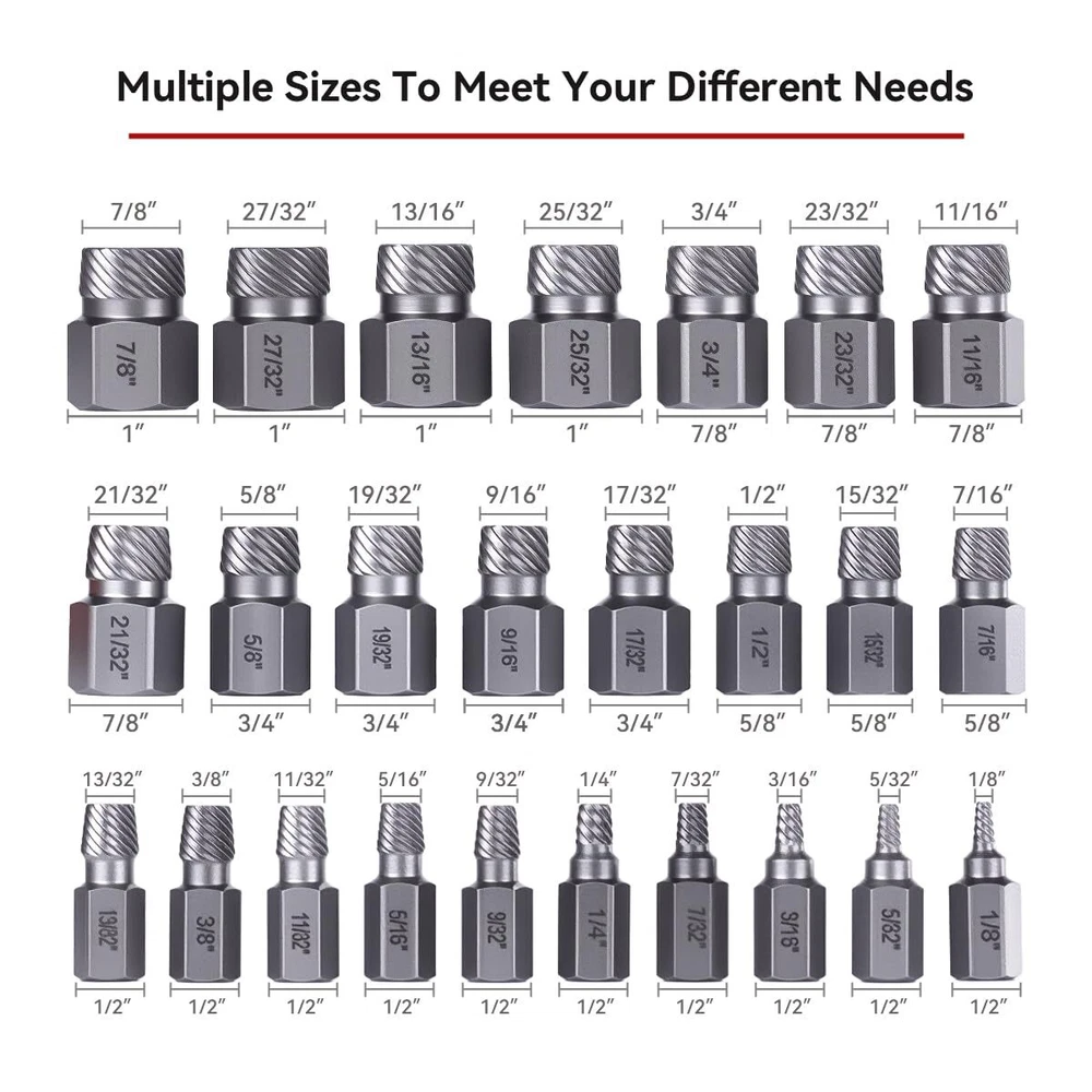 25 Piece Screw Extractor Set Heavy Duty Damaged Bolt Remover Tool Kit High-Quality CR-MO Steel for Durability:Crafted from heat-treated chromium molybdenum steel, this extractor set is designed to be durable and resistant to damage. Each tool in the set is built to withstand the rigors of removing damaged screws, bolts, and nuts, ensuring long-lasting performance. Easy to Use with High-Density Spiral Design:Suitable for both power tools and hand tools, this set features a high-density spiral design that helps in the fast and efficient removal of broken screws, bolts, nuts, studs, fittings, threaded pipes, and pins. The design ensures a smooth and easy extraction process. Comprehensive Set with Multiple Sizes:This 25-piece set includes a wide range of sizes to meet all your needs: 1"-7/8", 1"-27/32", 1"-13/16", 7/8"-25/32", 7/8"-3/4", 7/8"-23/32", 7/8"-11/16", 7/8"-21/32", 3/4"-5/8", 3/4"-19/32", 3/4"-9/16", 3/4"-17/32", 5/8"-1/2", 5/8"-15/32", 5/8"-7/16", 1/2"-13/32", 1/2"-3/8", 1/2"-11/32", 1/2"-5/16", 1/2"-9/32", 1/2"-1/4", 1/2"-7/32", 1/2"-3/16", 1/2"-5/32", 1/2"-1/8". This comprehensive set ensures you have the right tool for any job. Stamped Sizes for Easy Identification:Each tool in the set is engraved with its size for easy identification. The chamfered bit ensures a smooth fit onto fasteners, making it ideal for car maintenance or everyday use. This set provides great convenience and ensures you always have the right tool on hand. 24/7 Customer Support:DUMDUM offers 24/7 customer support. If you have any questions or need assistance, please feel free to contact us via Amazon. We are committed to providing you with a satisfactory answer and ensuring your complete peace of mind. Multiple size to meet all your need:25pcs including:1"-7/8" ,1"-27/32",1"-13/16",7/8"-25/32",7/8"-3/4",7/8"-23/32", 7/8'-11/16", 7/8"-21/32", 3/4"-5/8", 3/4"-19/32", 3/4"-9/16", 3/4"-17/32", 5/8"-1/2", 5/8"-15/32", 5/8"-7/16", 1/2"-13/32", 1/2"-3/8", 1/2"-11/32", 1/2"-5/16", 1/2"-9/32", 1/2"-1/4", 1/2"-7/32", 1/2"-3/16", 1/2"-5/32", 1/2"-1/8". Shipping We offer FREE shipping on all orders! We ship within Three business days of payment, usually sooner. We use a selection of shipping services such as UPS, FedEx, USPS etc. We only ship to the lower 48 states, no APO/FPO addresses or PO Boxes allowed. Local pickups and combined shipping options are not provided at this time. Return You can return a product for up to 30 days from the date you purchased it. Any product you return must be in the same condition you received it and in the original packaging. Please keep the receipt. Payment We accept payment by any of the following methods: PayPal Please pay as soon as possible after winning an auction, as that will allow us to post your item to you sooner! Feedback Customer satisfaction is very important to us. If you have any problem with your order, please contact us and we will do our best to make you satisfied. Contact Us If you have any queries, please contact us via ebay. We usually respond within 24 hours on weekdays. Please visit our eBay store to check out other items for sale! Thank you for shopping at our store.