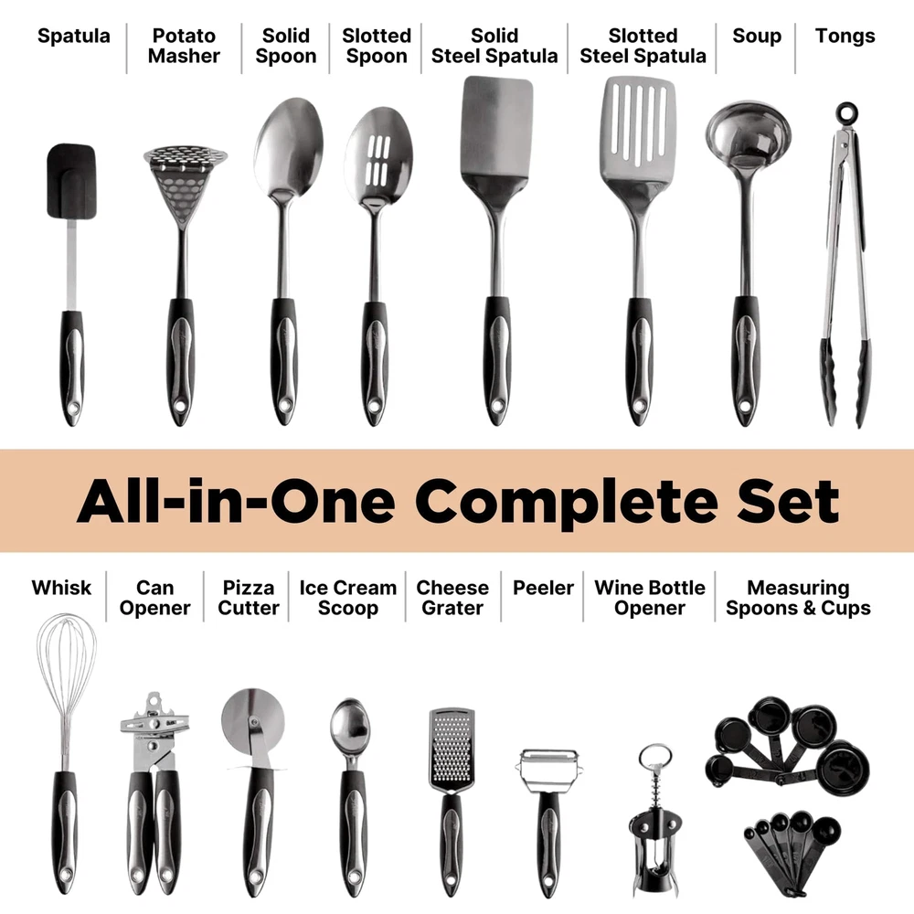 25-Piece Stainless Steel Kitchen Utensil Set | Non-Stick Cooking Gadgets and ...