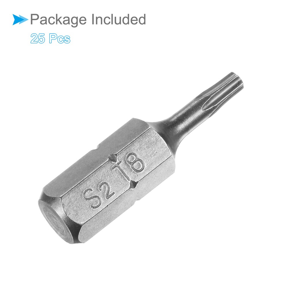 Document Attributes:* Shank Size: 1/4"* Total Length: 25mm / 1"* Bit Type: T8 * Material: S2 SteelWhat Is Included:* 25 Piece x Torx Screwdriver BitApplications & Features:--- Those bits fit for electric screwdrivers, hand screwdrivers, electric drills, air drills, air batches and 1/4" screwdriver sets.--- The torx screwdriver bits are made of S2 steel, which ensures high hardness, durability and wear resistance.--- These screwdriver bits are magnetic, which can firmly absorb the screw to prevent it from falling off.--- The star head bits are easy to install on the screwdriver handle with double ear on the sides of the bit shank.Useful Tips:--- Please apply appropriate force. Excessive force may cause the bit to slip, while insufficient force may not effectively tighten or remove the screw. 25pcs Torx Screwdriver Bits 1/4" Hex Shank 25mm T8 Magnetic Screwdrivers Bit Attributes: * Shank Size: 1/4" * Total Length: 25mm / 1" * Bit Type: T8 * Material: S2 Steel What Is Included: * 25 Piece x Torx Screwdriver Bit Applications & Features: --- Those bits fit for electric screwdrivers, hand screwdrivers, electric drills, air drills, air batches and 1/4" screwdriver sets. --- The torx screwdriver bits are made of S2 steel, which ensures high hardness, durability and wear resistance. --- These screwdriver bits are magnetic, which can firmly absorb the screw to prevent it from falling off. --- The star head bits are easy to install on the screwdriver handle with double ear on the sides of the bit shank. Useful Tips: --- Please apply appropriate force. Excessive force may cause the bit to slip, while insufficient force may not effectively tighten or remove the screw. Hot Item Payment 1.We accept eBay payment . 2.Payment must be received within 7 business days of auction closing. Shipping 1.We ship to your eBay or Paypal address. Please make sure your eBay and Paypal address is correct before you pay. 2.Items will be shipped within 1-3 business day when we received payment. 3.Delivery time depends on destination and other factors. Description Policy 25pcs Torx Screwdriver Bits 1/4" Hex Shank 25mm T8 Magnetic Screwdrivers Bit Attributes: * Shank Size: 1/4" * Total Length: 25mm / 1" * Bit Type: T8 * Material: S2 Steel What Is Included: * 25 Piece x Torx Screwdriver Bit Applications & Features: --- Those bits fit for electric screwdrivers, hand screwdrivers, electric drills, air drills, air batches and 1/4" screwdriver sets. --- The torx screwdriver bits are made of S2 steel, which ensures high hardness, durability and wear resistance. --- These screwdriver bits are magnetic, which can firmly absorb the screw to prevent it from falling off. --- The star head bits are easy to install on the screwdriver handle with double ear on the sides of the bit shank. Useful Tips: --- Please apply appropriate force. Excessive force may cause the bit to slip, while insufficient force may not effectively tighten or remove the screw. Hot Item Payment 1.We accept eBay payment . 2.Payment must be received within 7 business days of auction closing. Shipping 1.We ship to your eBay or Paypal address. Please make sure your eBay and Paypal address is correct before you pay. 2.Items will be shipped within 1-3 business day when we received payment. 3.Delivery time depends on destination and other factors.