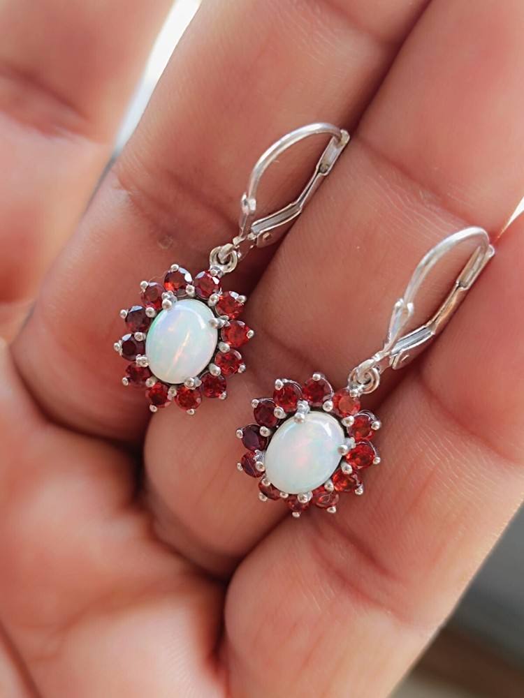 Natural Oval Cut Garnet And Opal Dangle Earring For women's in Sterling silver, June birthstone Earring, Party wear Earring, Finance gift Earring, Gemstone Earring, Dangle Earring. ==================================== PRODUCT DETAILS Product Type - Earring Earring type - Dangle Earring Gemstone setting - Garnet And Opal Garnet & Opal shape - Oval & Round Garnet & Opal size - 3mm x 6mm Garnet & Opal color - Red, Rainbow Setting type - Prong ==================================== Benefits of Garnet stone: 1. Energy and Vitality Garnet is believed to boost energy levels and vitality. It is often referred to as the "stone of health" because it is said to promote physical stamina and vigor. 2. Emotional Balance Garnet is thought to help balance emotions, relieve stress, and improve overall emotional well-being. It can promote feelings of stability and calmness, helping to reduce anxiety and depression. 3. Enhancement of Creativity and Passion Garnet is considered a stone of passion, creativity, and inspiration. It may enhance one's creativity and stimulate the root chakra, promoting personal growth and allowing for the manifestation of goals and desires. 4. Attracting Love and Strengthening Relationships Garnet is traditionally associated with love and relationships. It is believed to strengthen bonds between partners, bring deep emotional healing, and even enhance sensuality. 5. Protection Garnet is also considered a protective stone. It is thought to shield the wearer from negative energy and promote a sense of safety and security. 6. Detoxification and Healing In holistic healing, garnet is sometimes used to assist in detoxifying the body. It is thought to support circulation and stimulate the immune system, aiding the body in self-healing processes. ===================================================================== Benefits of Opal stone: his transcendental gemstone changes its colors in accordance with the health of its wearer. With the slight illness of its wearer, this gemstone turns to a dull gray shade. The sick yellow color of an Opal indicates severe ailment or an accident of the wearer. This gemstone provides Nero- stability to its wearer as it creates a balance in between the left and right hemispheres of the brain. Wearer of an Opal gets benefits from it as it cures several problems related to eye, throat, spleen, bone marrow, pancreas and reproductive organs. A pink opal is exceptionally helpful in curing headaches. As the people with Opal as their Birthstones are calm and gentle, this gemstone provide satisfaction and serenity to its wearer. It relieves the pain linked through the past. =========================== Shipping Policy :---- • Shipping Thru FedEx, DHL Express, USPS & Other Courier Services. • We ship item(s) from India to Worldwide . • We also use USP Which take 4-5 days for delivery with 100 % insured and online tracking . • We provide you each item with individually packed secured with quality products to help ensure safety and undamaged delivery =================================== Regards by RG jewels