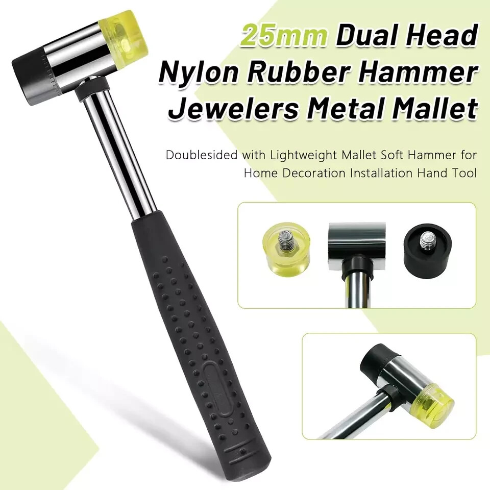 25mm Dual Head Nylon Rubber Hammer Jewelers Metal Mallet,Multipurpose, Doublesided & Lightweight Mallet Soft Hammer for Home Decoration Installation Hand Tool Fitment:Suitable for DIY enthusiasts, and can be used to punch and ling to cut or some flat head rivets can be installed directly with a rubber hammer to knock. Package Include:1 x Amphibious Rubber Hammer Please compare it with your original parts before ordering it to make sure this part will fit. Total length 25.2cm/9.9",the width of head 6.5cm/2.5" and diameter 25mm/0.98". Easy to install and stable performance. Fitment:Suitable for DIY enthusiasts, and can be used to punch and ling to cut or some flat head rivets can be installed directly with a rubber hammer to knock. Package Include:1 x Amphibious Rubber Hammer Please compare it with your original parts before ordering it to make sure this part will fit. Total length 25.2cm/9.9",the width of head 6.5cm/2.5" and diameter 25mm/0.98". Easy to install and stable performance. Shipping We offer FREE shipping on all orders! We ship within Three business days of payment, usually sooner. We use a selection of shipping services such as UPS, FedEx, USPS etc. We only ship to the lower 48 states, no APO/FPO addresses or PO Boxes allowed. Local pickups and combined shipping options are not provided at this time. Return You can return a product for up to 30 days from the date you purchased it. Any product you return must be in the same condition you received it and in the original packaging. Please keep the receipt. Payment We accept payment by any of the following methods: PayPal Please pay as soon as possible after winning an auction, as that will allow us to post your item to you sooner! Feedback Customer satisfaction is very important to us. If you have any problem with your order, please contact us and we will do our best to make you satisfied. Contact Us If you have any queries, please contact us via ebay. We usually respond within 24 hours on weekdays. Please visit our eBay store to check out other items for sale! Thank you for shopping at our store.