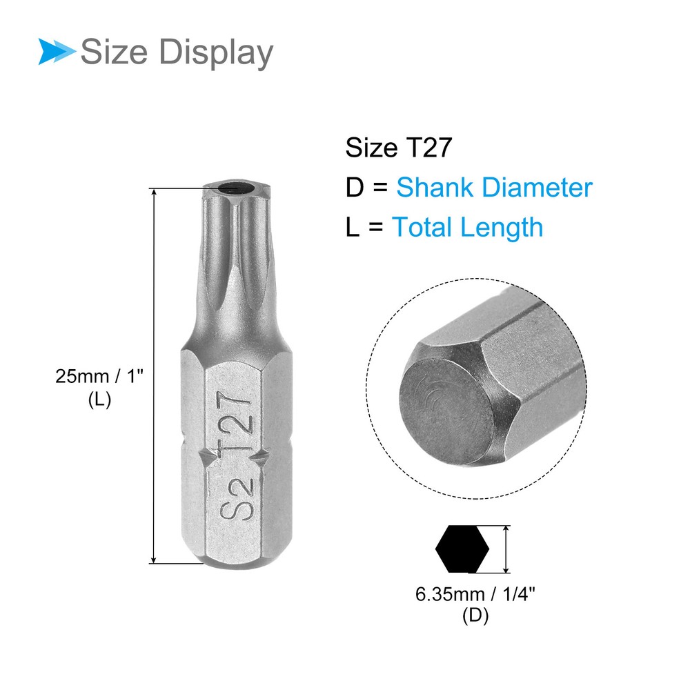 Document Attributes:* Shank Size: 1/4"* Total Length: 25mm / 1"* Bit Type: T27 * Material: S2 SteelWhat Is Included:* 25 Piece x Torx Screwdriver BitApplications & Features:--- Those bits fit for electric screwdrivers, hand screwdrivers, electric drills, air drills, air batches and 1/4" screwdriver sets.--- The torx screwdriver bits are made of S2 steel, which ensures high hardness, durability and wear resistance.--- These screwdriver bits are magnetic, which can firmly absorb the screw to prevent it from falling off.--- The star head bits are easy to install on the screwdriver handle with double ear on the sides of the bit shank.Useful Tips:--- Please apply appropriate force. Excessive force may cause the bit to slip, while insufficient force may not effectively tighten or remove the screw. 25pcs Torx Screwdriver Bits 1/4" Hex Shank 25mm T27 Magnetic Screwdrivers Bit Attributes: * Shank Size: 1/4" * Total Length: 25mm / 1" * Bit Type: T27 * Material: S2 Steel What Is Included: * 25 Piece x Torx Screwdriver Bit Applications & Features: --- Those bits fit for electric screwdrivers, hand screwdrivers, electric drills, air drills, air batches and 1/4" screwdriver sets. --- The torx screwdriver bits are made of S2 steel, which ensures high hardness, durability and wear resistance. --- These screwdriver bits are magnetic, which can firmly absorb the screw to prevent it from falling off. --- The star head bits are easy to install on the screwdriver handle with double ear on the sides of the bit shank. Useful Tips: --- Please apply appropriate force. Excessive force may cause the bit to slip, while insufficient force may not effectively tighten or remove the screw. Hot Item Payment 1.We accept eBay payment . 2.Payment must be received within 7 business days of auction closing. Shipping 1.We ship to your eBay or Paypal address. Please make sure your eBay and Paypal address is correct before you pay. 2.Items will be shipped within 1-3 business day when we received payment. 3.Delivery time depends on destination and other factors. Description Policy 25pcs Torx Screwdriver Bits 1/4" Hex Shank 25mm T27 Magnetic Screwdrivers Bit Attributes: * Shank Size: 1/4" * Total Length: 25mm / 1" * Bit Type: T27 * Material: S2 Steel What Is Included: * 25 Piece x Torx Screwdriver Bit Applications & Features: --- Those bits fit for electric screwdrivers, hand screwdrivers, electric drills, air drills, air batches and 1/4" screwdriver sets. --- The torx screwdriver bits are made of S2 steel, which ensures high hardness, durability and wear resistance. --- These screwdriver bits are magnetic, which can firmly absorb the screw to prevent it from falling off. --- The star head bits are easy to install on the screwdriver handle with double ear on the sides of the bit shank. Useful Tips: --- Please apply appropriate force. Excessive force may cause the bit to slip, while insufficient force may not effectively tighten or remove the screw. Hot Item Payment 1.We accept eBay payment . 2.Payment must be received within 7 business days of auction closing. Shipping 1.We ship to your eBay or Paypal address. Please make sure your eBay and Paypal address is correct before you pay. 2.Items will be shipped within 1-3 business day when we received payment. 3.Delivery time depends on destination and other factors.