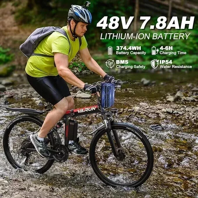 VARUN 26" Folding Mountain Electric Bike Peak 750W 48V Adults Ebike Up to 20MPH ใ๐๐ง๐ฅ๐๐๐ฌ๐ก ๐๐จ๐ฐ๐๐ซ, ๐๐ง๐ฅ๐๐๐ฌ๐ก ๐๐จ๐ฒใ:Propel yourself forward with VARUNโs electric mountain bike, boasting a robust 500W motor (Peak 750W) that whisks you to speeds of up to 20MPH. Whether itโs cruising city streets or conquering steep hills, feel the exhilaration of wind sprinting with effortless power. ๐ต๐ปใ๐ ๐จ๐ฅ๐, ๐๐ญ๐จ๐ซ๐, ๐๐ง๐ ๐๐ฑ๐ฉ๐ฅ๐จ๐ซ๐ใ: Crafted from high carbon steel for durability yet designed for portability, our foldable mountain ebike is your ultimate travel companion. Compact and space-efficient, itโs perfect for weekday commutes and weekend adventures alike. Experience the freedom to ride, anytime, anywhere. ๐ต๐ปใ๐๐จ๐ฎ๐ง๐๐ฅ๐๐ฌ๐ฌ ๐๐๐ฏ๐๐ง๐ญ๐ฎ๐ซ๐, ๐๐๐ซ๐จ ๐๐ง๐ฑ๐ข๐๐ญ๐ฒใ: Equipped with a 48V 374.4WH removable battery, journey up to 50 miles on a single charge in assist mode. With fast charging (4-5 hours) and BMS protection in an IPX4 waterproof casing, mileage anxiety is a thing of the past. Embrace every journey with confidence. ๐ต๐ปใ๐๐-๐๐ฉ๐๐๐๐ฌ ๐๐๐๐ซ ๐ ๐ฅ๐๐ฑ๐ข๐๐ข๐ฅ๐ข๐ญ๐ฒใ:Elevate every journey into a thrilling adventure with 3 dynamic riding modes (pure electric, pedal-assisted, and sport) complemented by advanced 21-speed gears. Seamlessly adapt to any terrain, from the bustling city streets to the rugged mountain trails. Embrace the freedom to explore and unleash your inner thrill-seeker. ๐ต๐ปใ๐๐ข๐๐ ๐ข๐ง ๐๐จ๐ฆ๐๐จ๐ซ๐ญ, ๐๐ซ๐ซ๐ข๐ฏ๐ ๐ข๐ง ๐๐ญ๐ฒ๐ฅ๐ใ: Featuring efficient dual front fork hydraulic suspension and a top-tier dual disc brake system, ride with unparalleled comfort and safety. Enhanced with bright LED lights and a clear LCD display, this ebike merges functionality with flair, ensuring you stand out in any setting. ๐ต๐ปใ๐๐๐ฌ๐ฌ๐ฅ๐-๐ ๐ซ๐๐ ๐๐๐ญ๐ฎ๐ฉ & ๐๐ญ๐๐ฅ๐ฅ๐๐ซ ๐๐ฎ๐ฉ๐ฉ๐จ๐ซ๐ญใ: Jumpstart your biking adventure with VARUN's 90% pre-assembled e-bike. We stand by our commitment to quality and your satisfaction with a one-year warranty and dedicated 24-hour customer service. Any questions or needs? Reach out, and we'll ensure your VARUN experience is nothing short of exceptional.